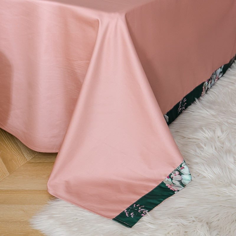 (总)优然居家纺 2025新款50支全棉纯棉印花法式双头木耳边四件套,觅棠,莫妮卡艾绿,莫妮卡罗兰,慕斯粉,薇薇安