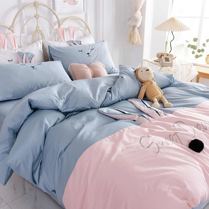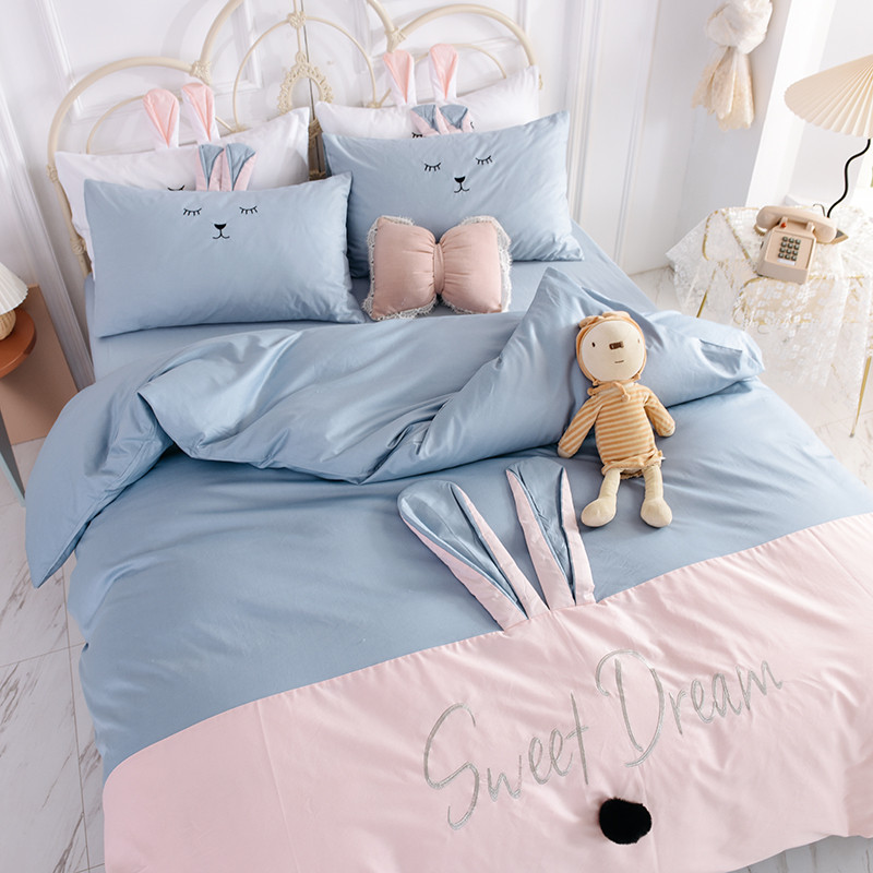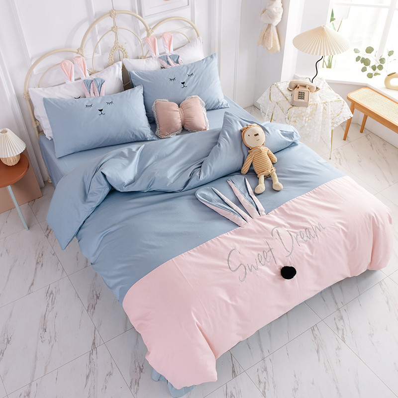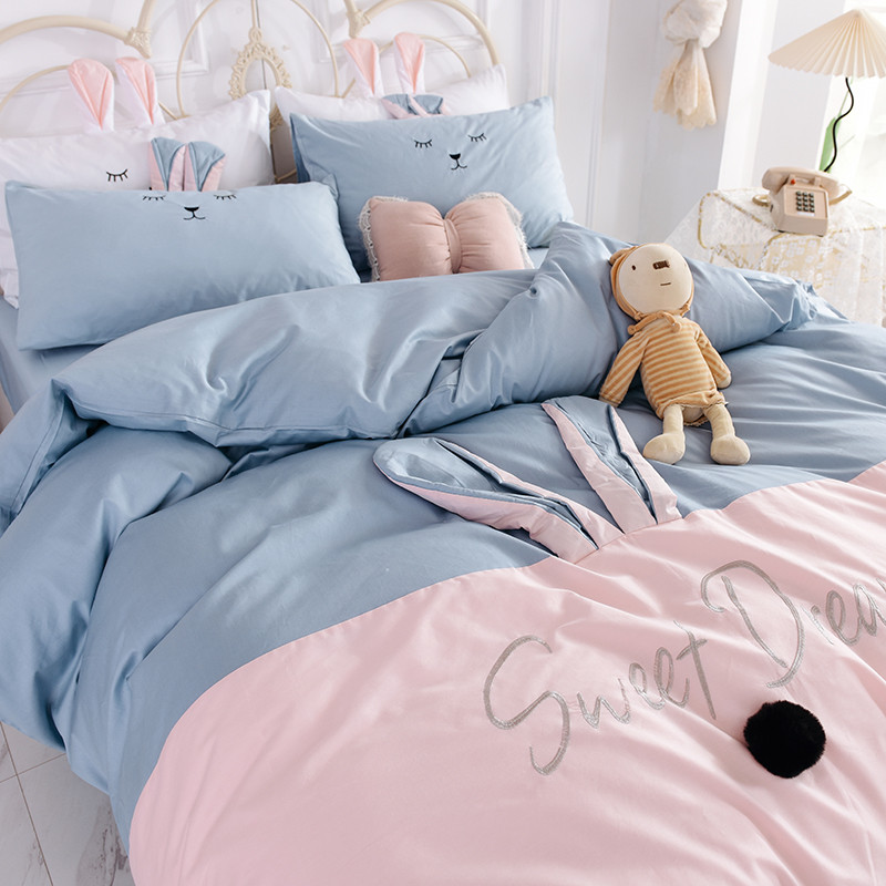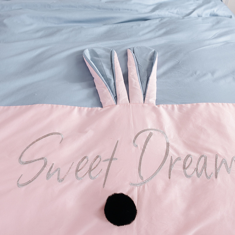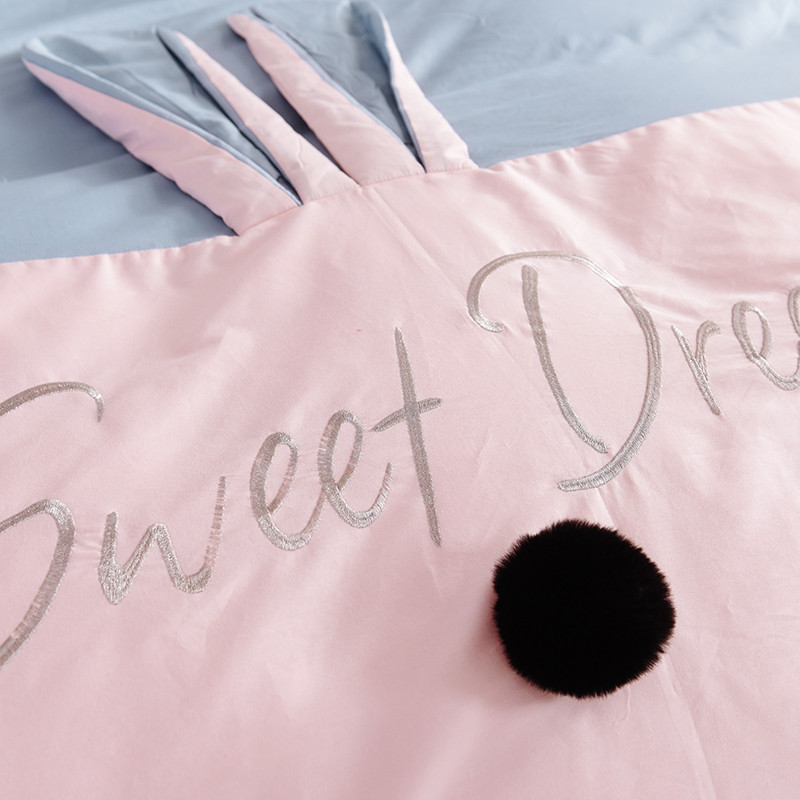 漫调家纺 2019新款ins爆款全棉兔耳朵四件套 莫兰粉