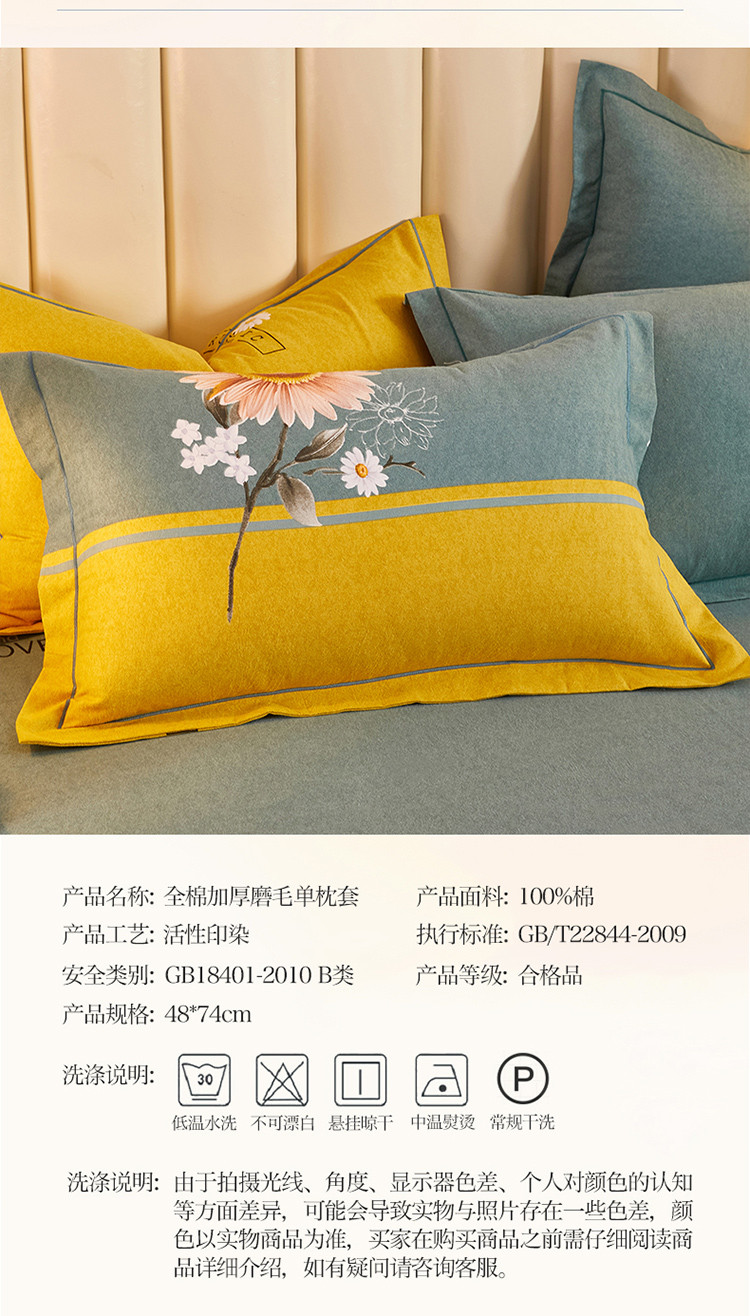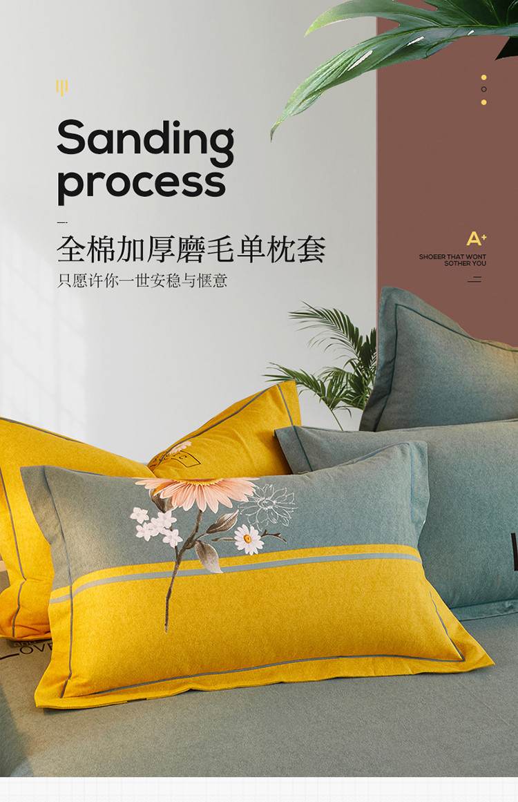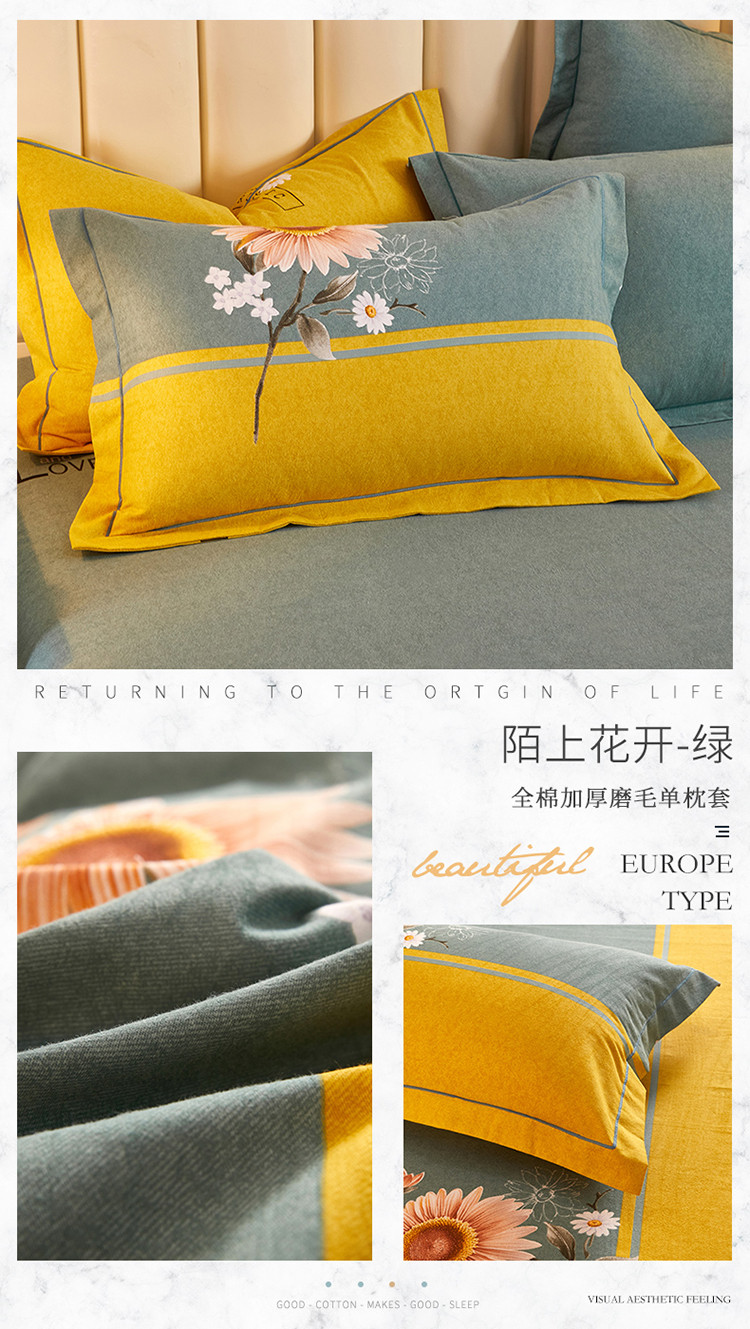 • 91家纺网 家纺一手货源 找家纺 雲归梦 2020新款多规格全棉加厚磨毛单枕套一对陌上花开-绿