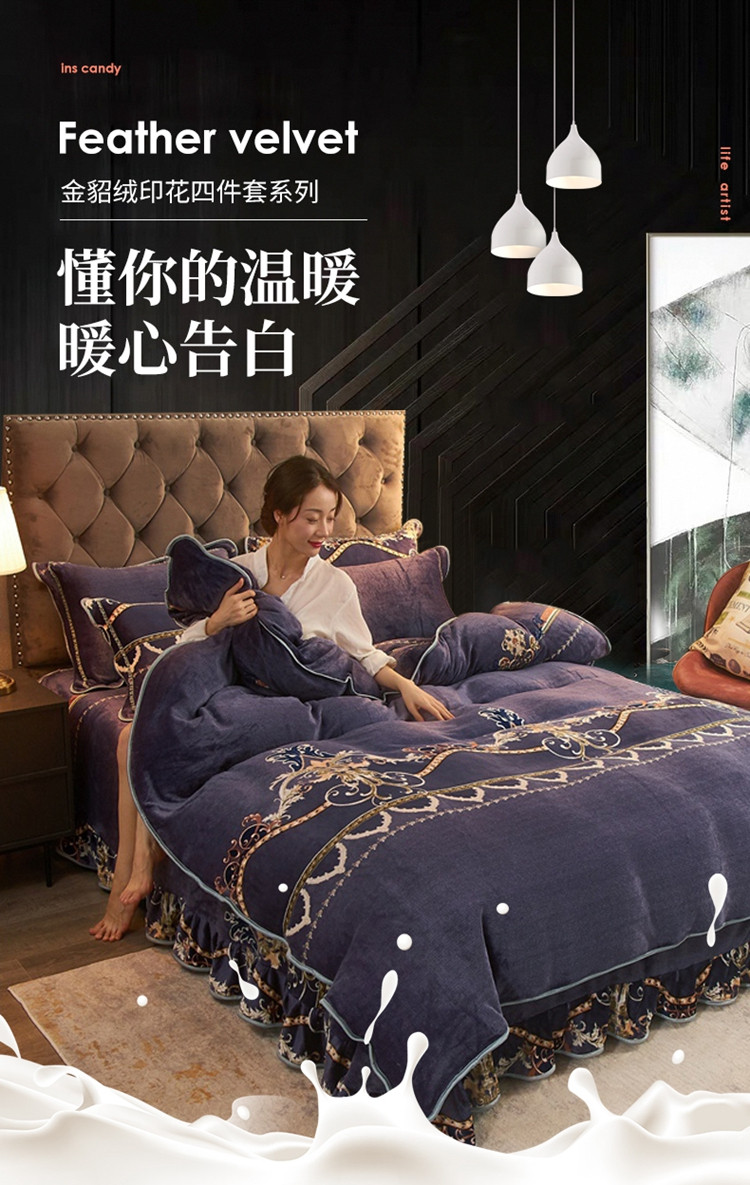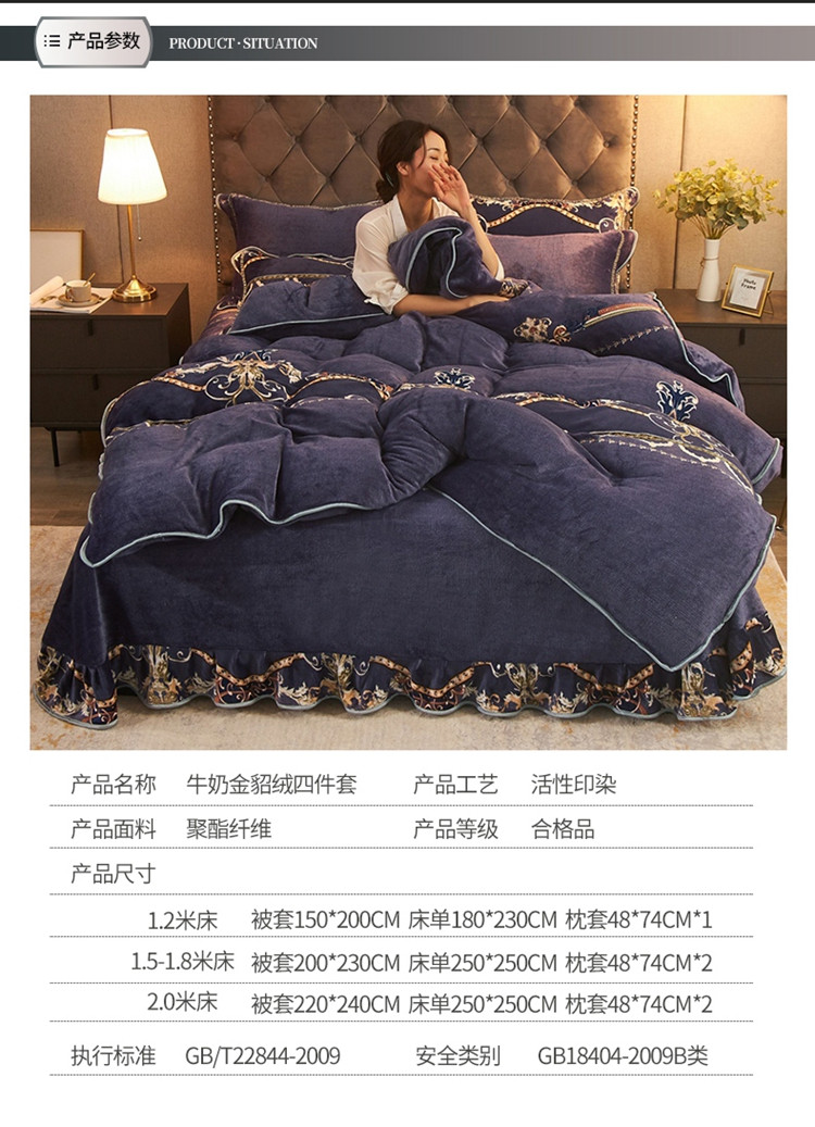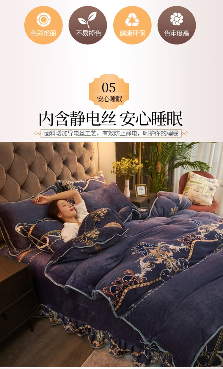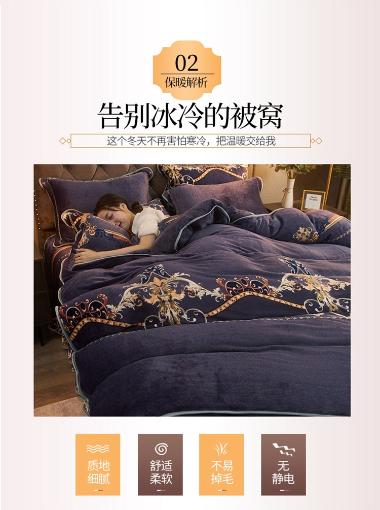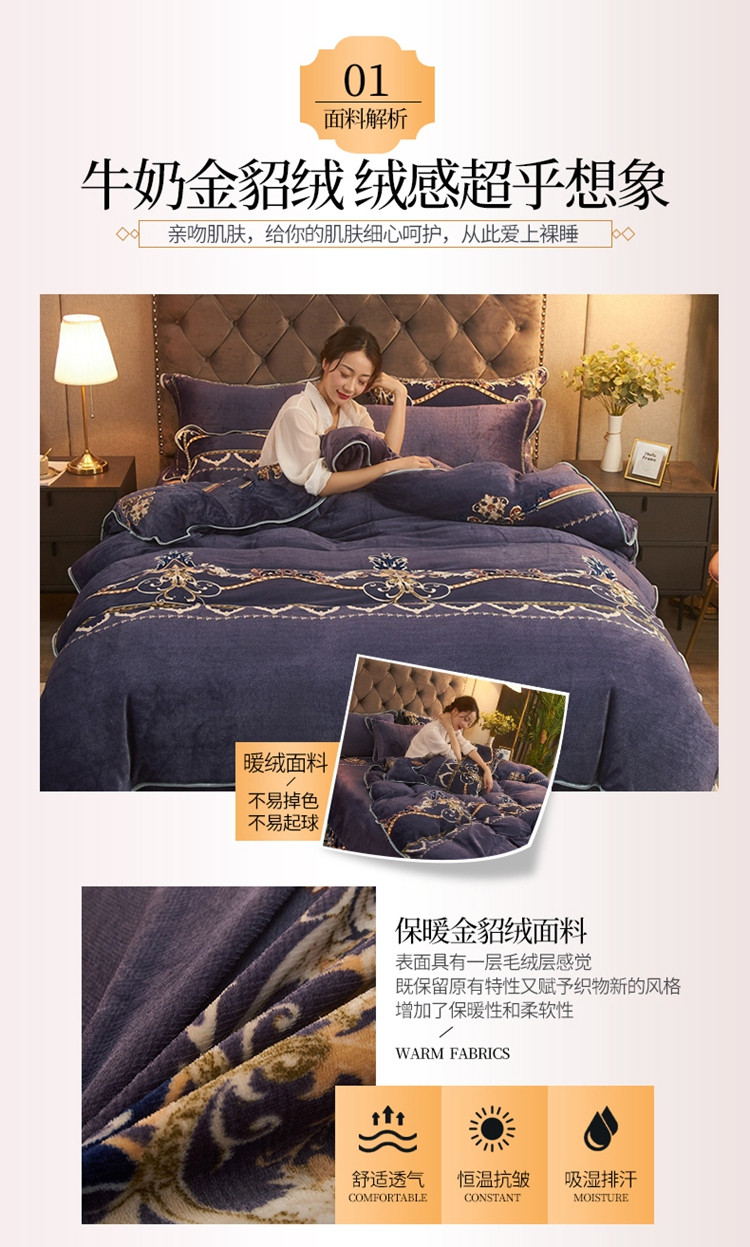 商品名称:爱洛牛奶绒宝宝绒水晶绒法莱绒金貂绒四件套 锦绣年华