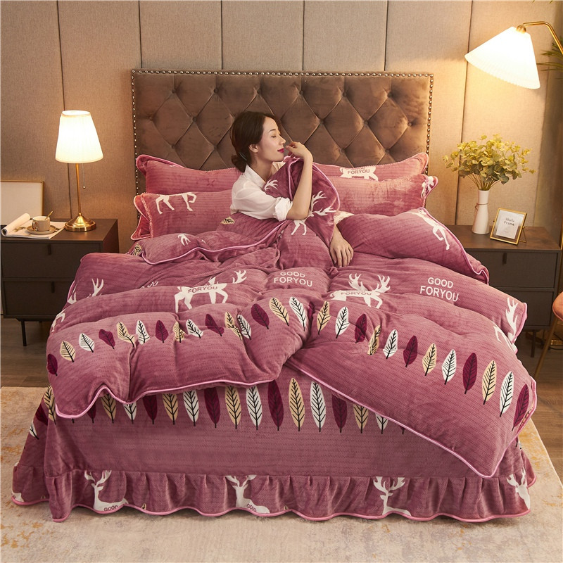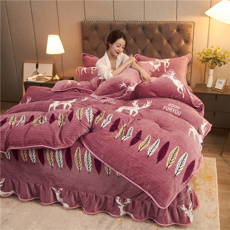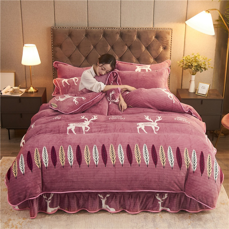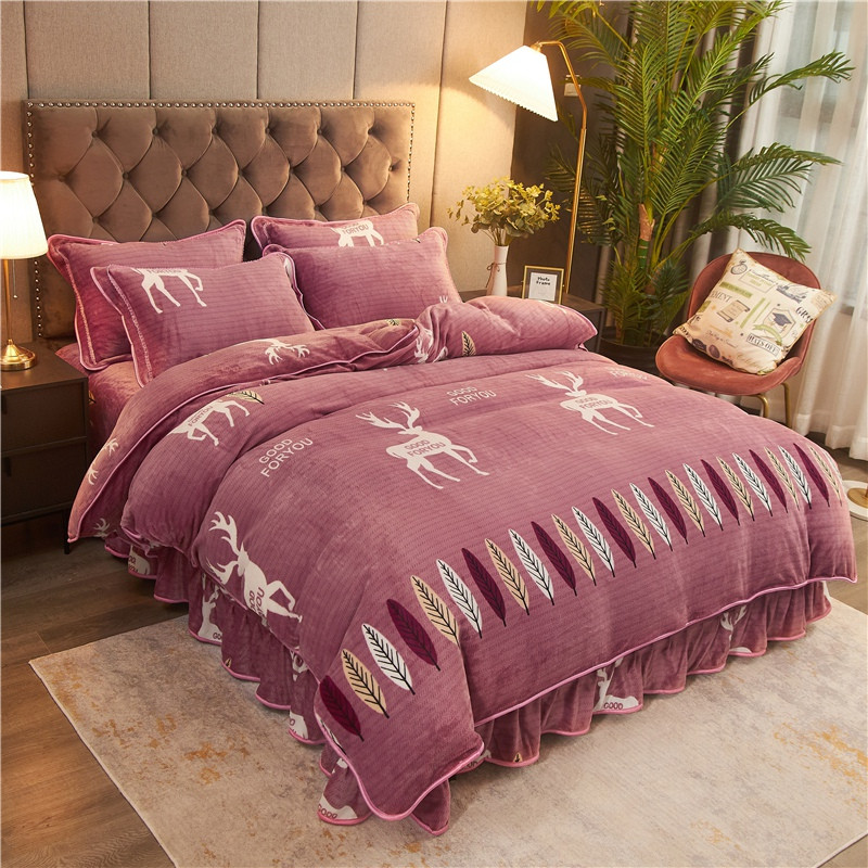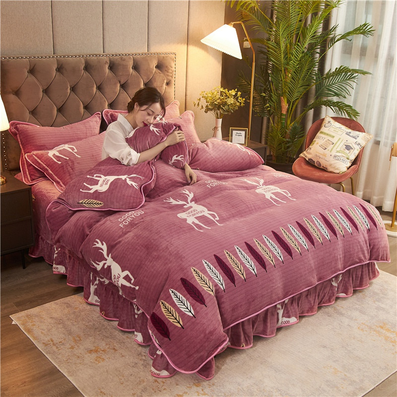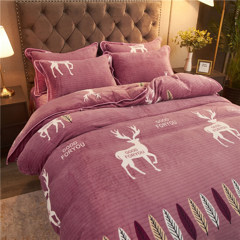 爱洛牛奶绒宝宝绒水晶绒法莱绒金貂绒四件套 一鹿有你豆沙