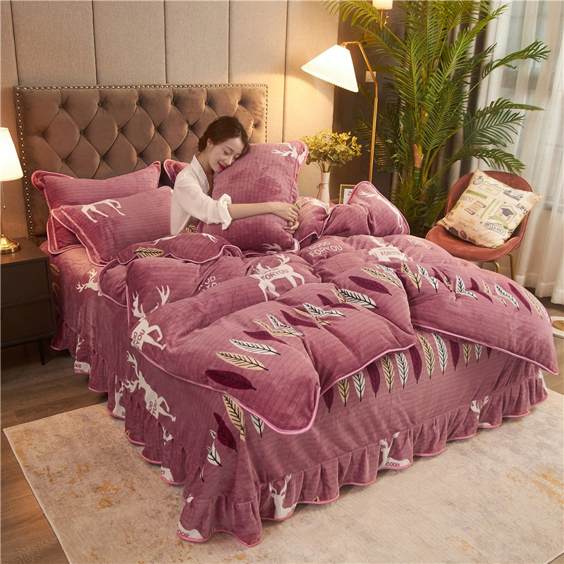 商品名称:爱洛牛奶绒宝宝绒水晶绒法莱绒金貂绒四件套 一鹿有你豆沙