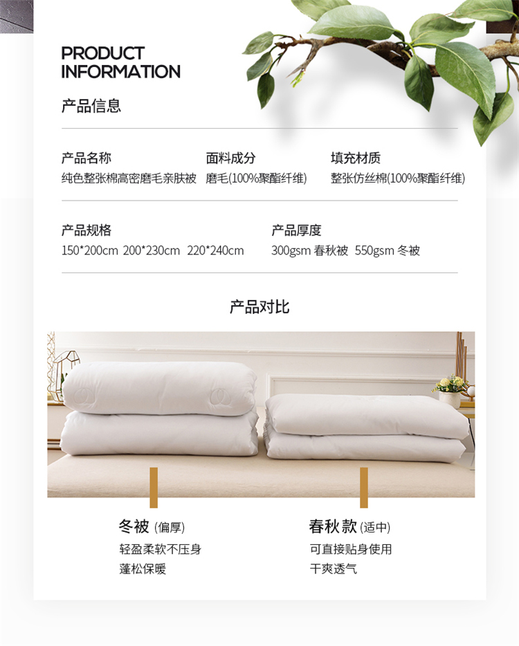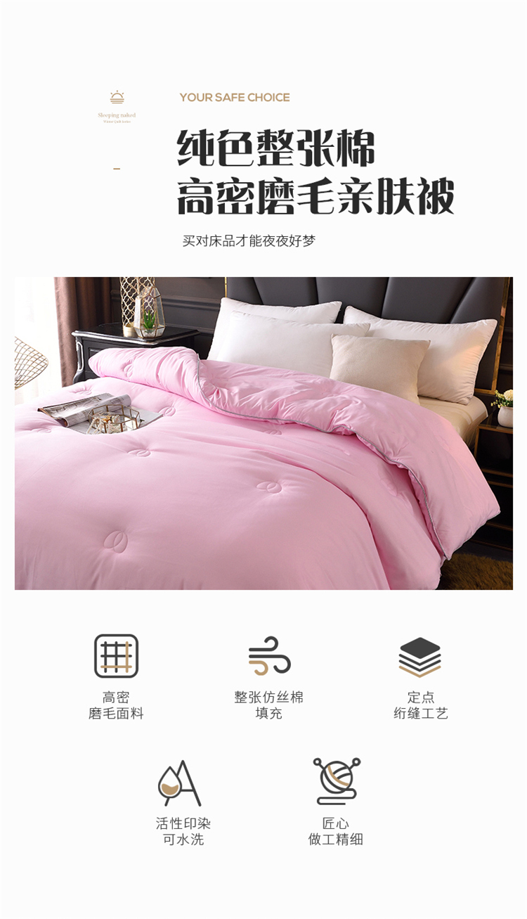 商品名称:德芙2020新款纯色整张棉高密磨毛亲肤被 少女粉