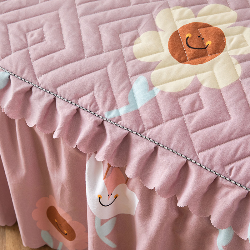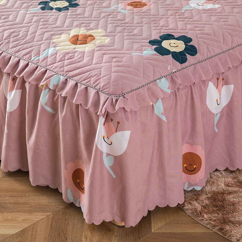 纽缦 2020新款加厚磨毛单件夹棉床裙 楚楚花颜豆沙