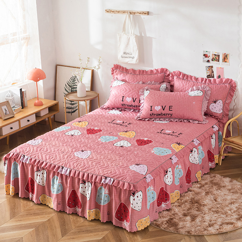 商品名称:纽缦 2020新款加厚磨毛单件夹棉床裙 迷情草莓