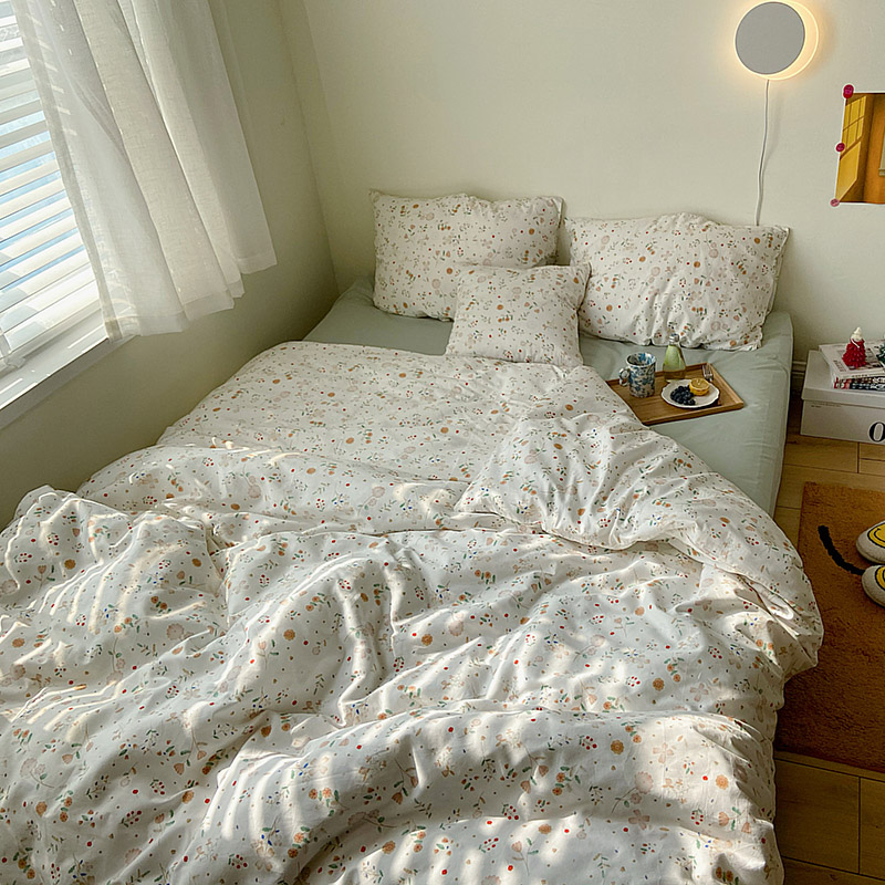 (总)尺素 2025新款田园小清新纯棉四件套出口韩国ins博主风全棉被套纯色加大床单1.8床笠印花枕套学生宿舍三件套,春不晚 桃粉,花似锦 奶白,紫鸢千夏紫