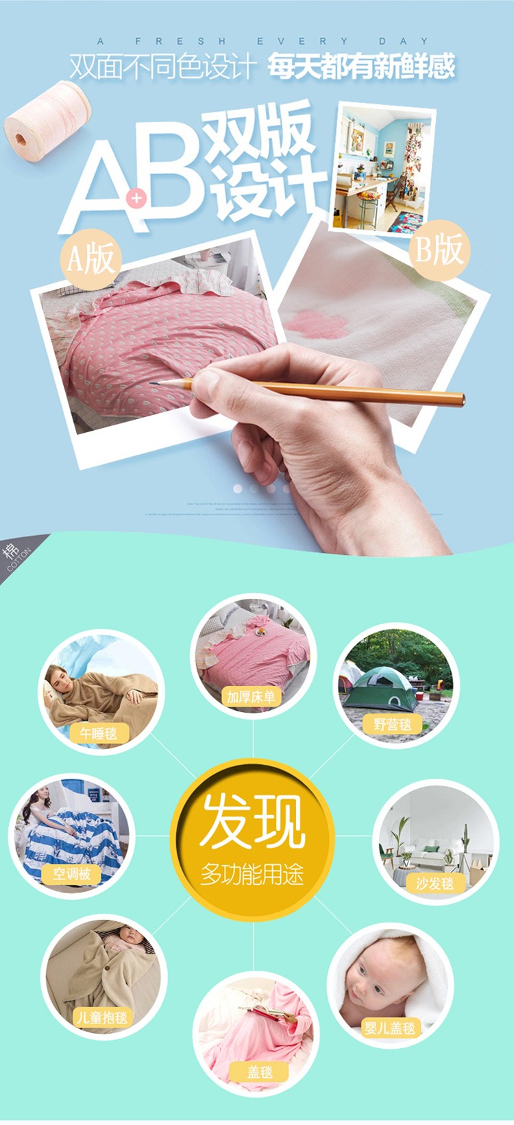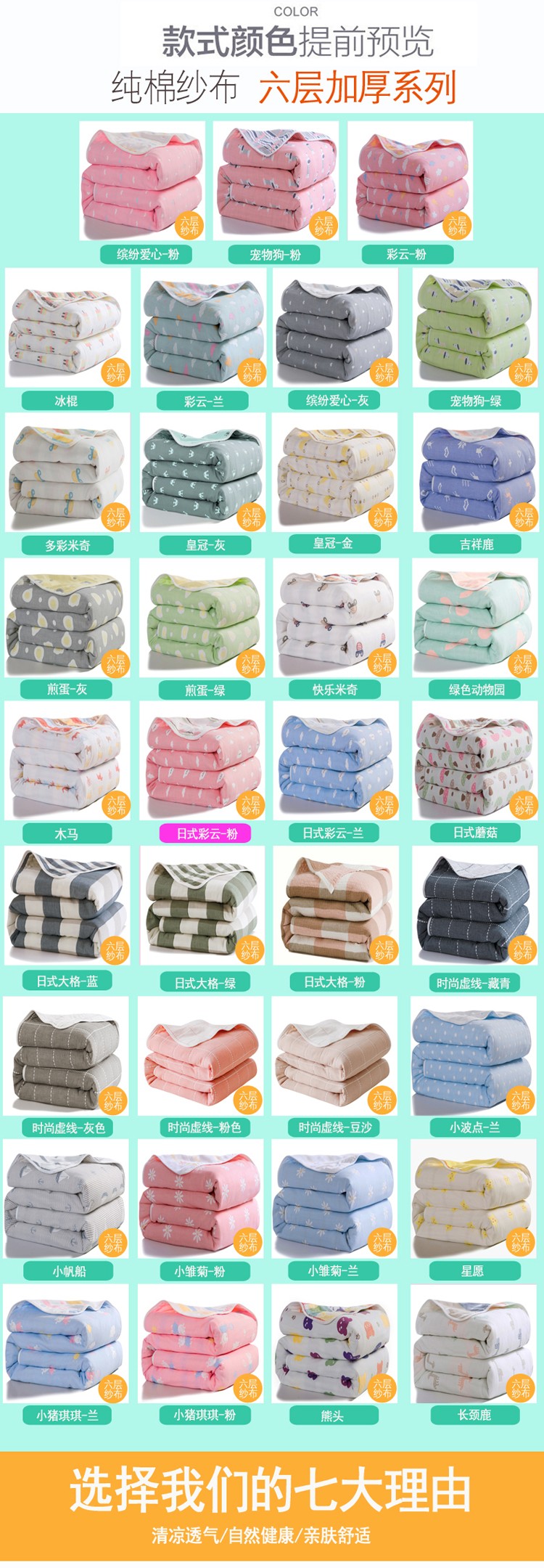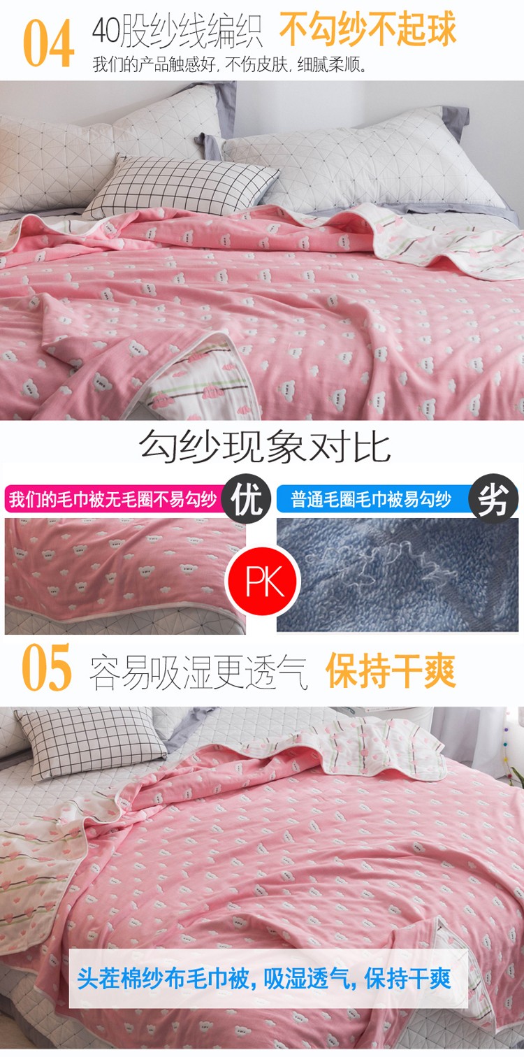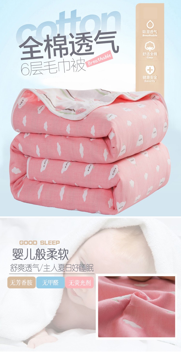 商品名称:朴尔 2021新款经典六层纱布全棉毛巾被系列 日式彩云-粉