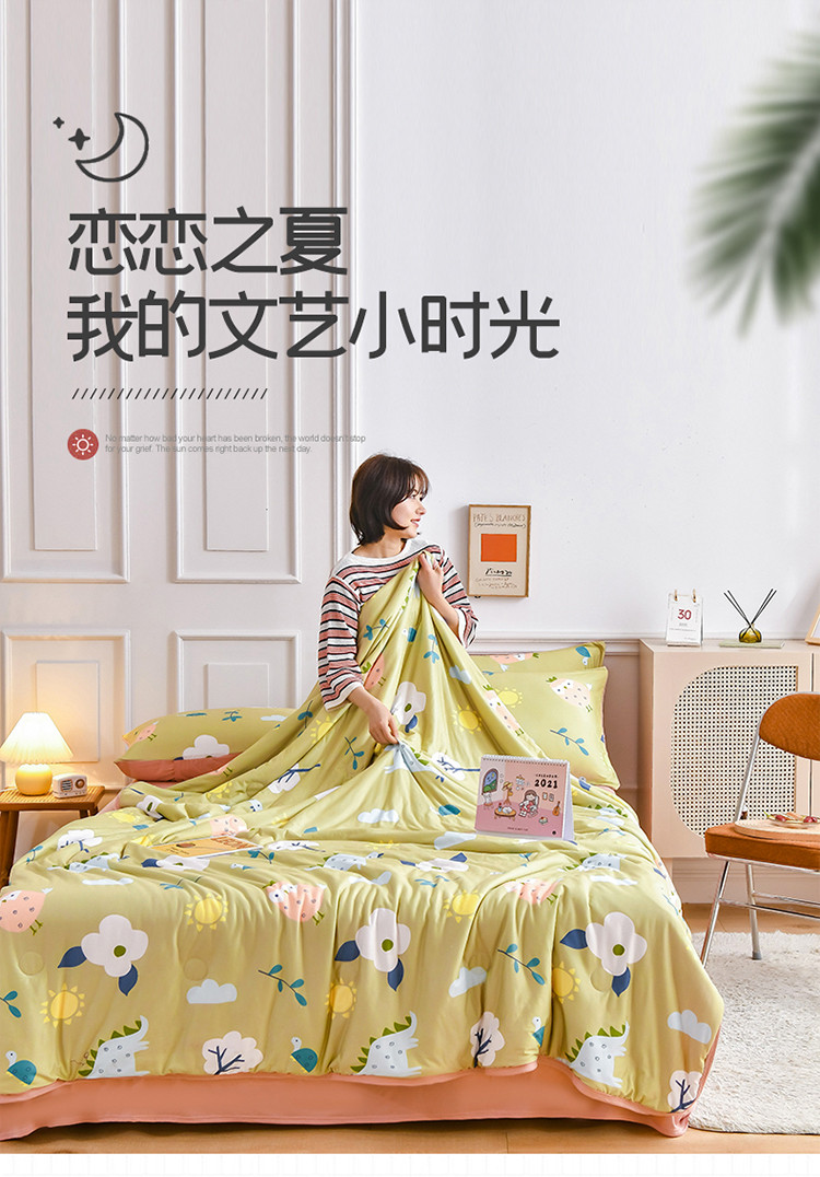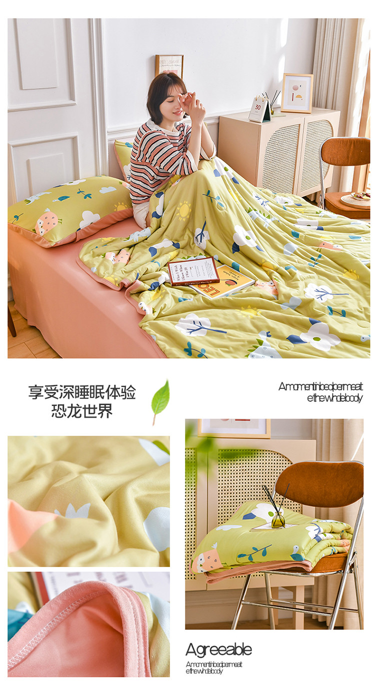 • 91家纺网 家纺一手货源 找家纺 澳洲羽2024新款凉感丝针织棉夏被四件套空调被 恐龙世界