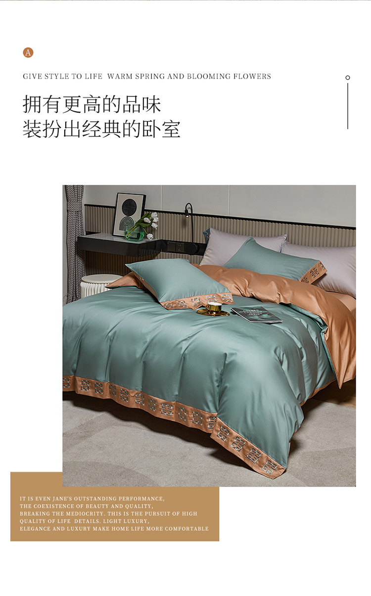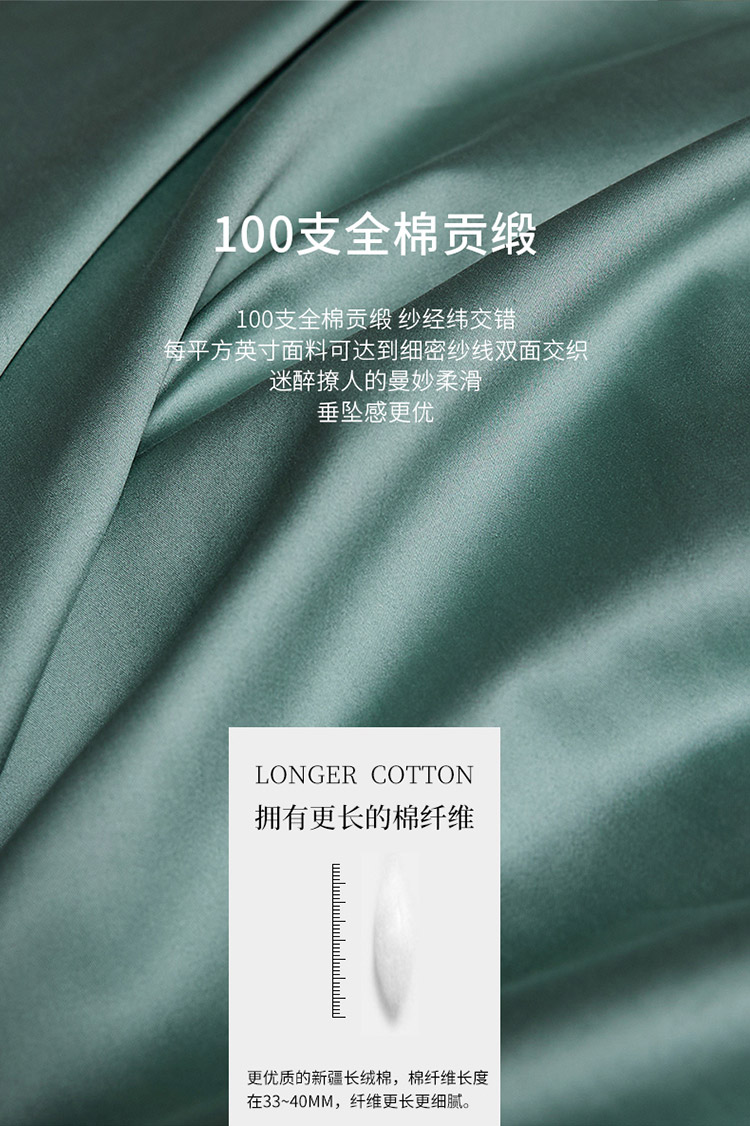 商品名称:爱缦2021宫系列100S长绒棉澳棉刺绣四件套青瓷绿-杏仁色