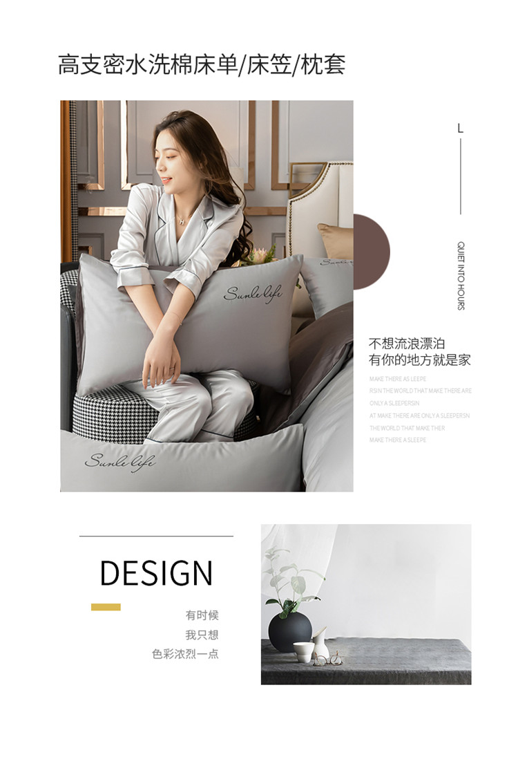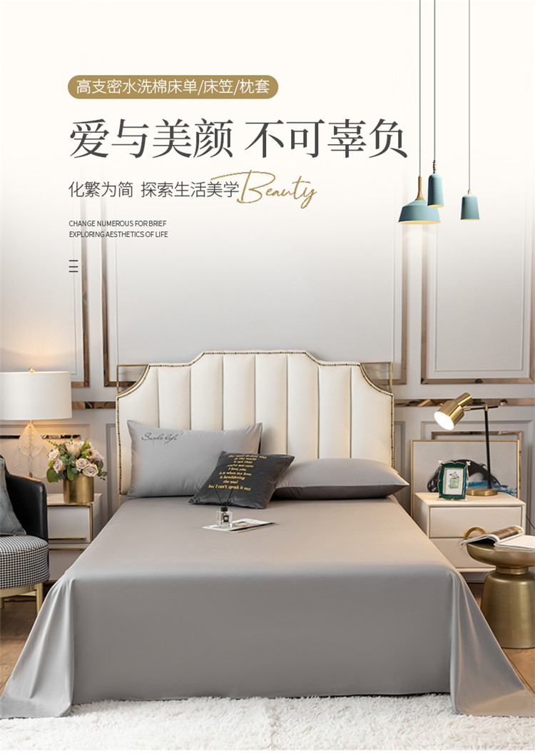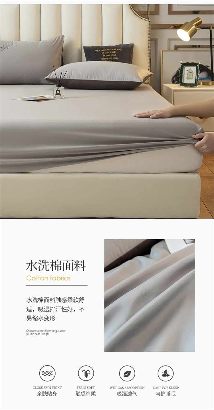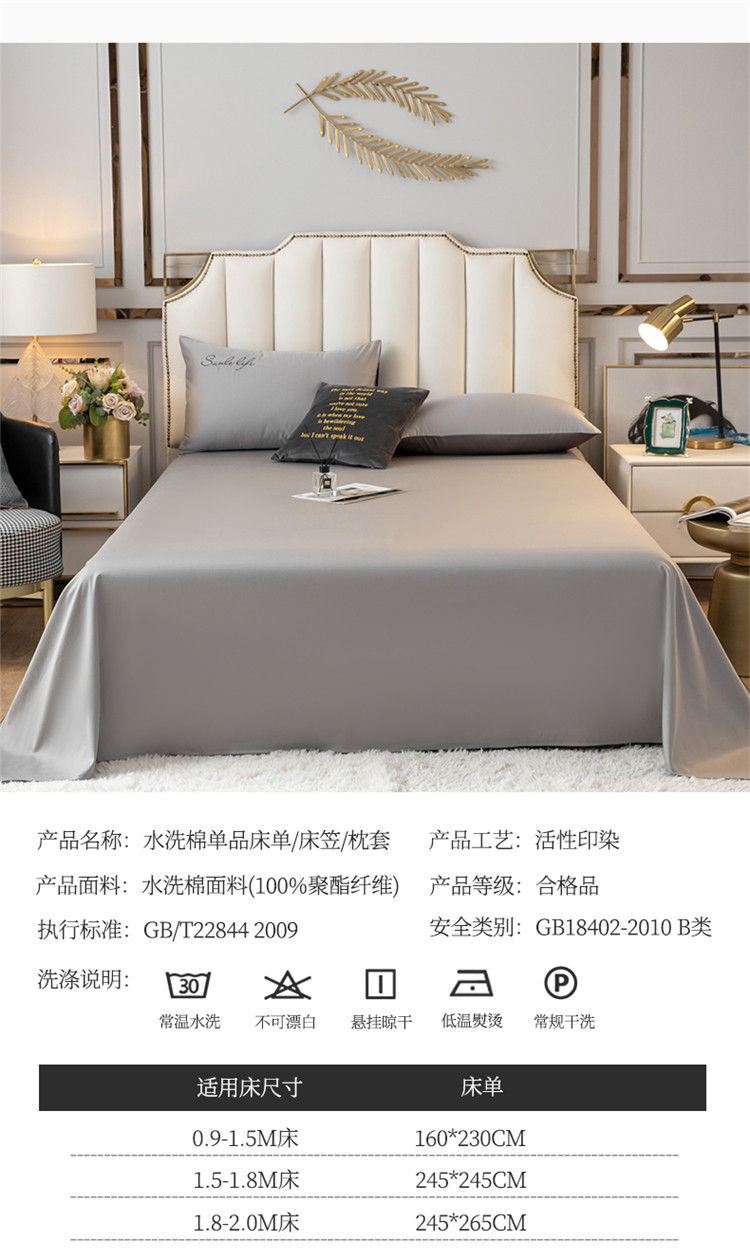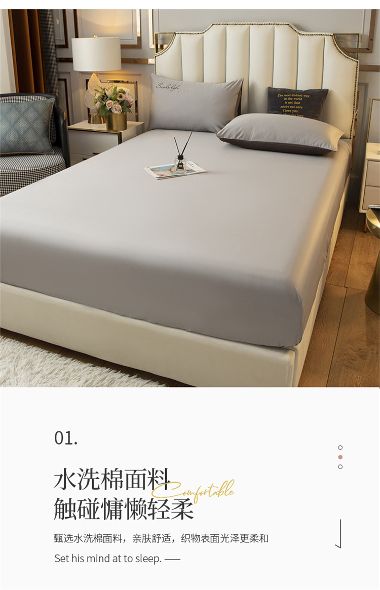 商品名称:古吉梦 2024新款水洗棉-S双拼单品床单床笠枕套 浅灰