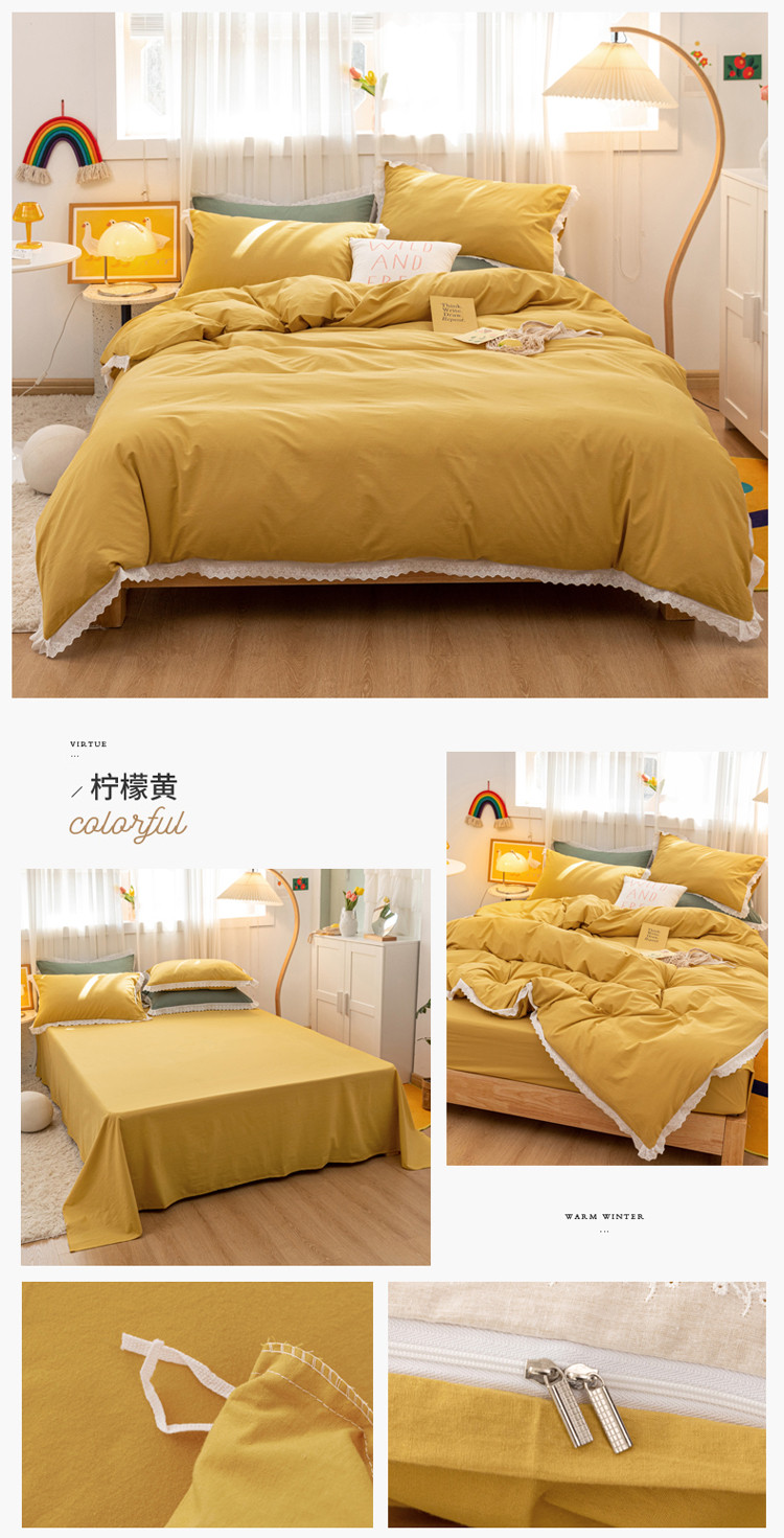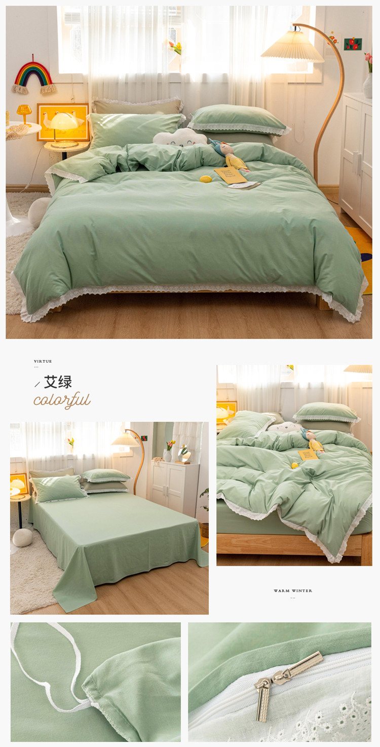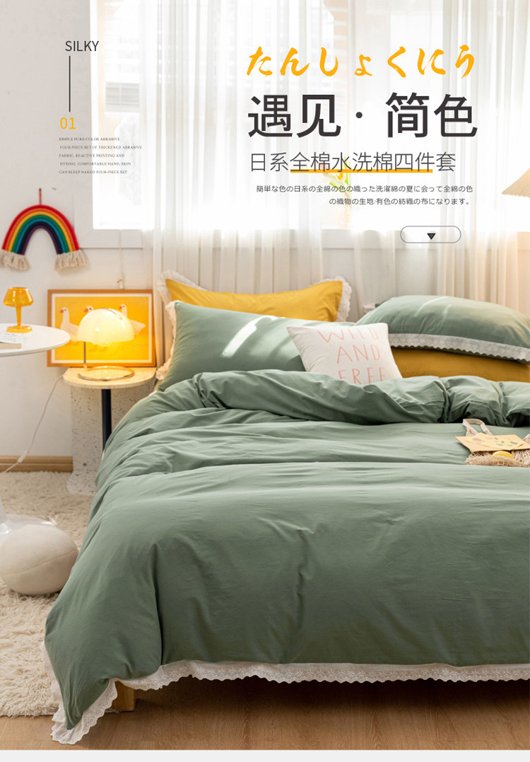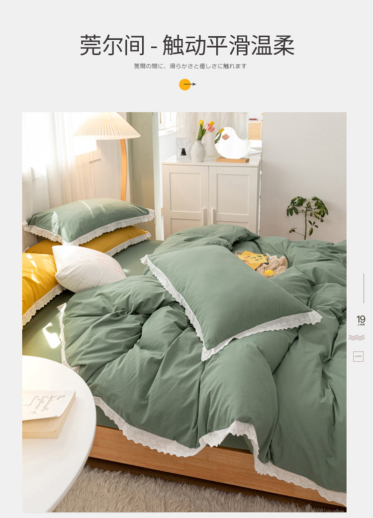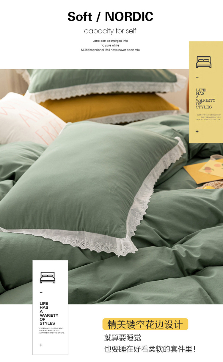(总)怡家居 2021新款全棉水洗刺绣花边四件套