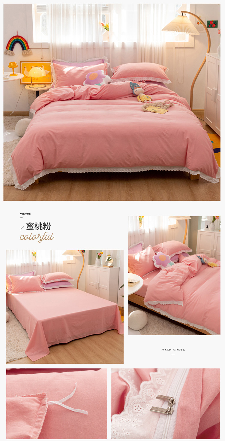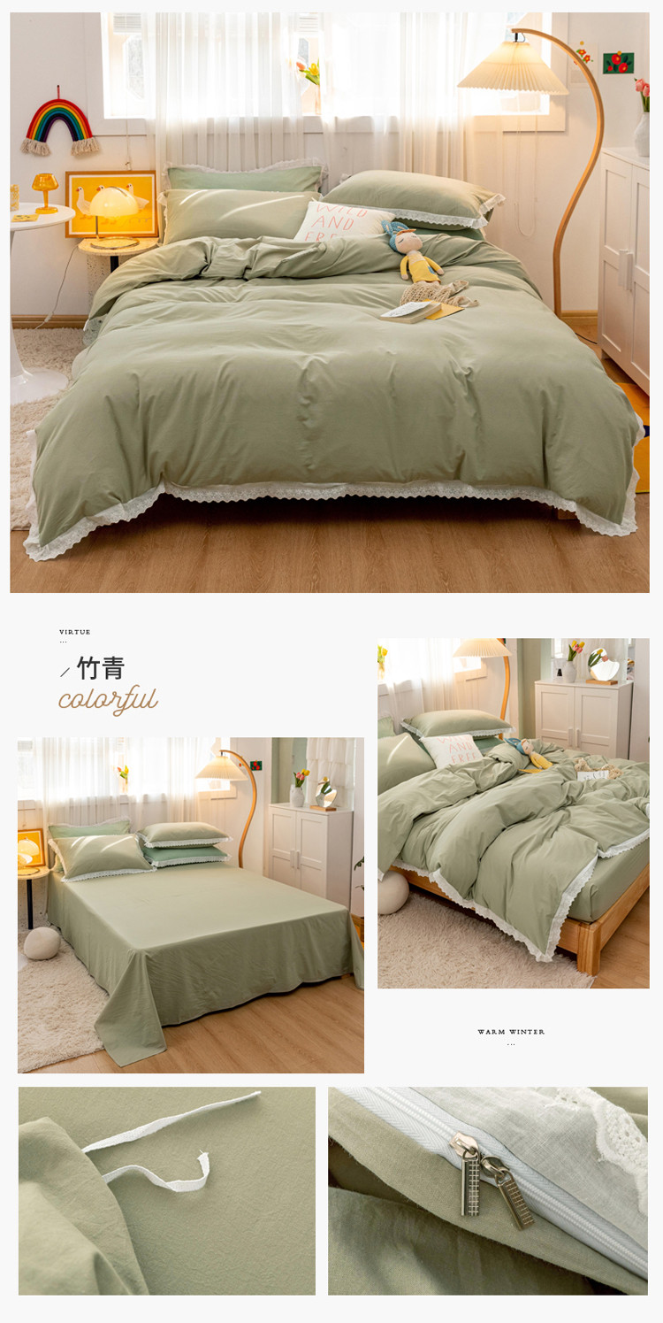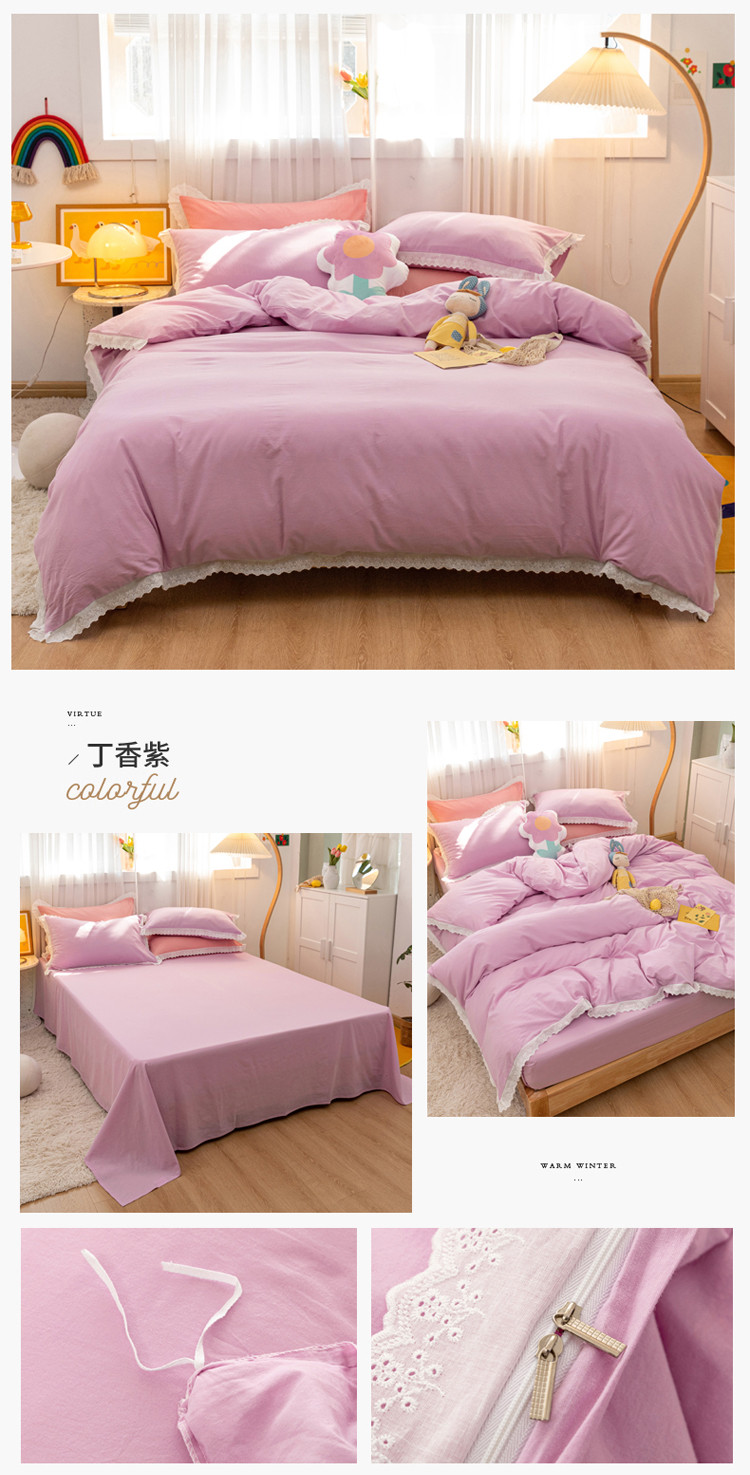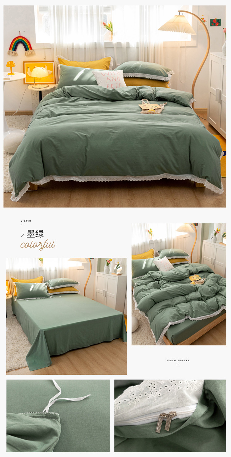 (总)怡家居 2021新款全棉水洗刺绣花边四件套