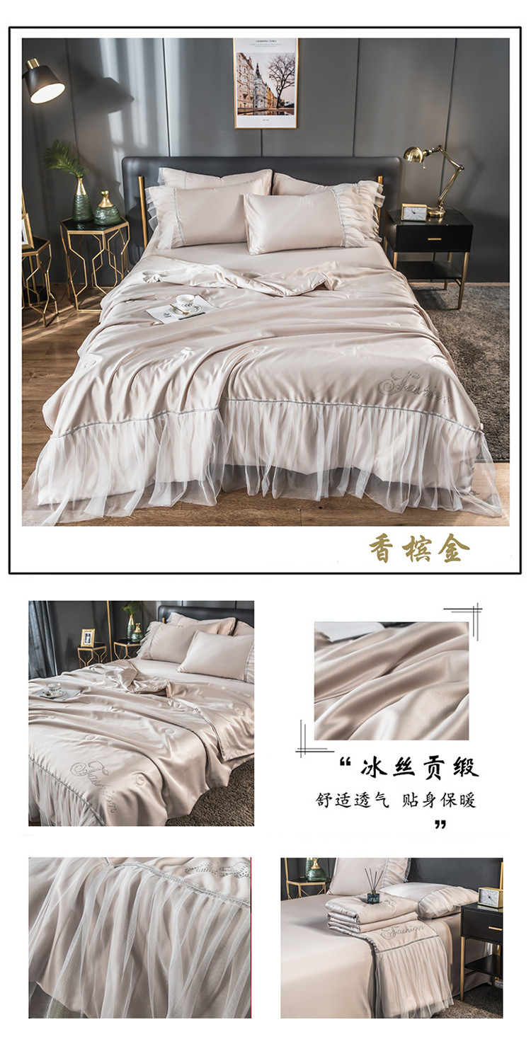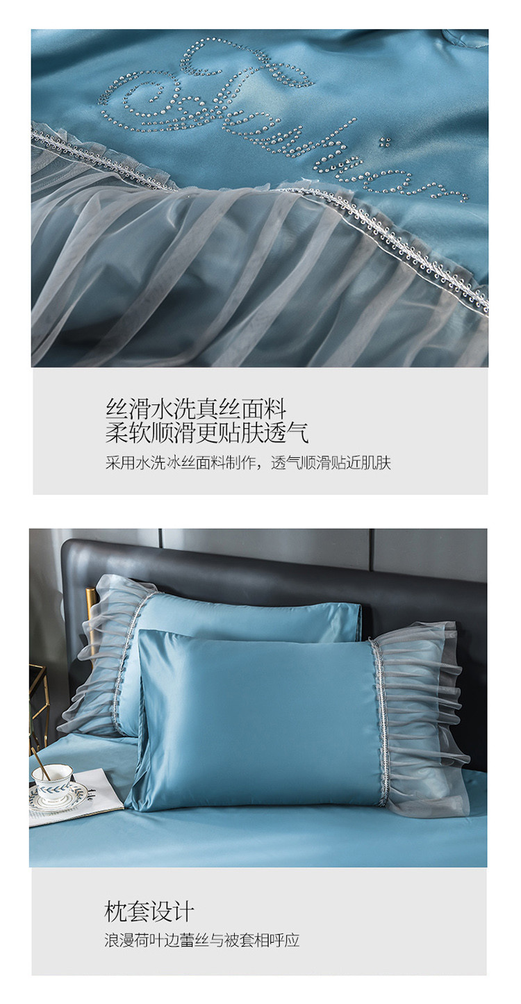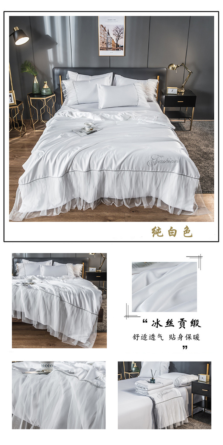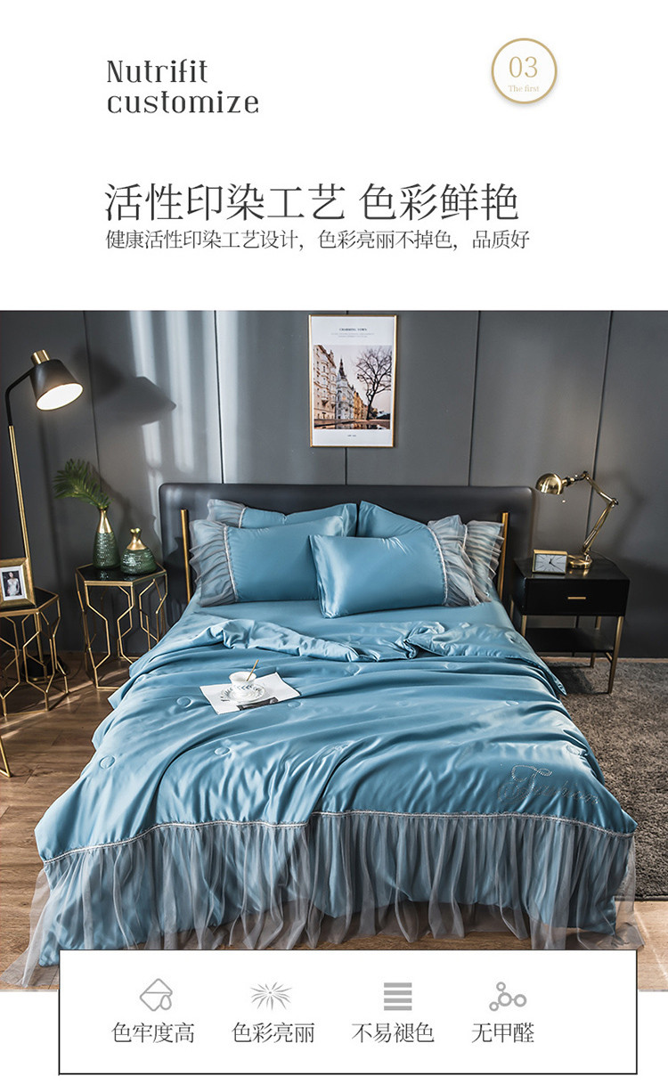 (总)丽莱美家纺 2025新款水洗冰丝蕾丝夏被 夏被三件套 夏被四件套,宾利蓝,纯白,豆沙粉,灰色,酒红,天蓝,香槟金,玉色