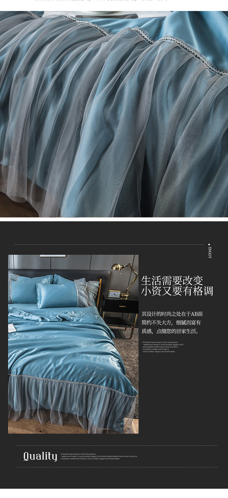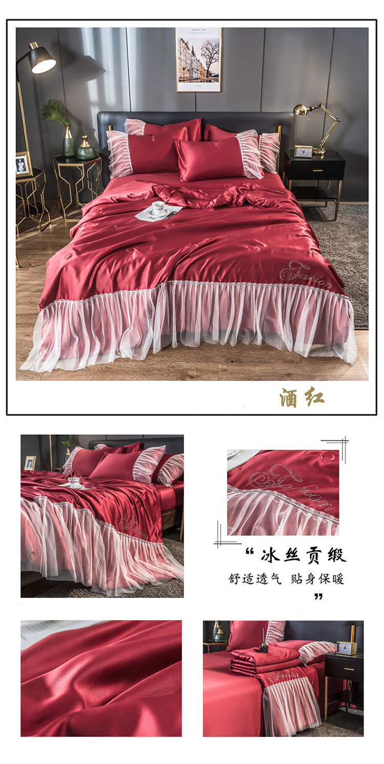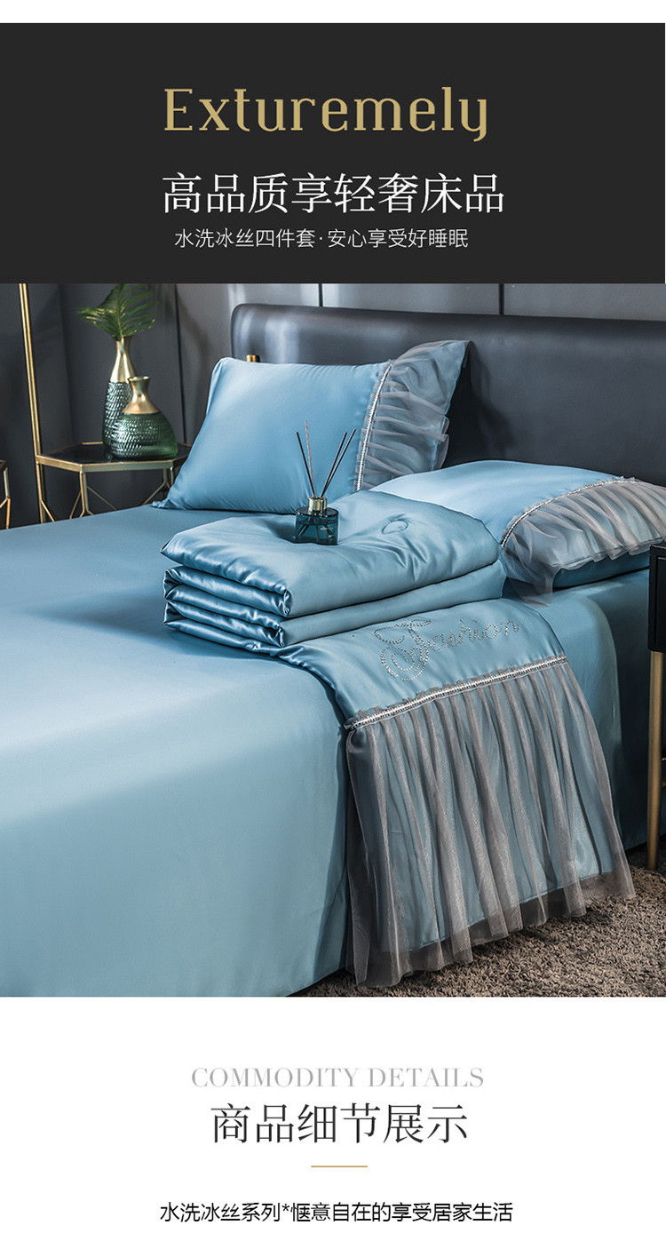 (总)丽莱美家纺 2025新款水洗冰丝蕾丝夏被 夏被三件套 夏被四件套,宾利蓝,纯白,豆沙粉,灰色,酒红,天蓝,香槟金,玉色