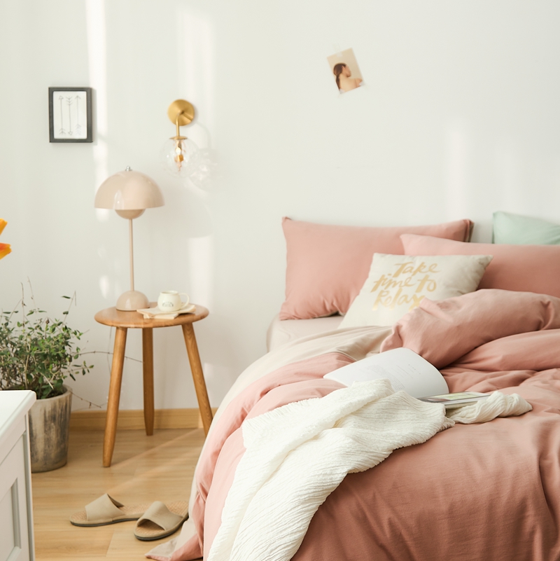 当前位置: 91家纺网 > 商品网购 > 床品套件 > 四件套 > 针织棉四件套 > 原研家居 2021新款全棉针织棉纯色系列四件套 浅豆沙米咖