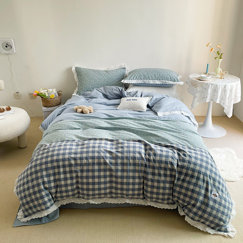 (总)洋铭区 2023新款色织水洗棉格子四件套,牛油果格,青桃格,山竹格,香橙格