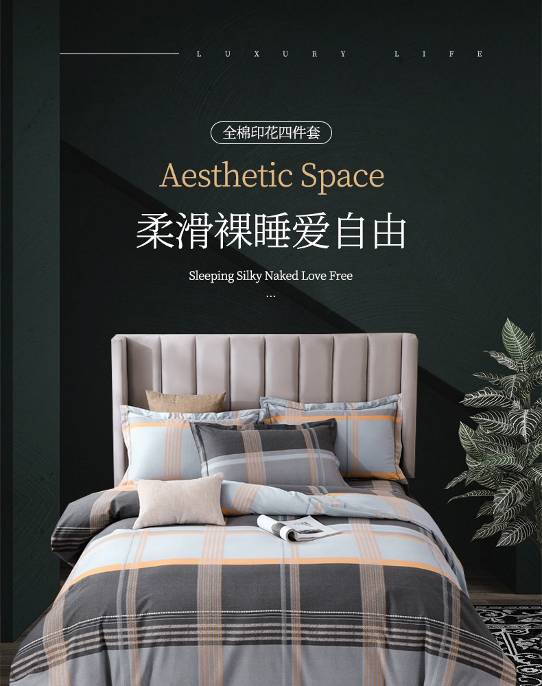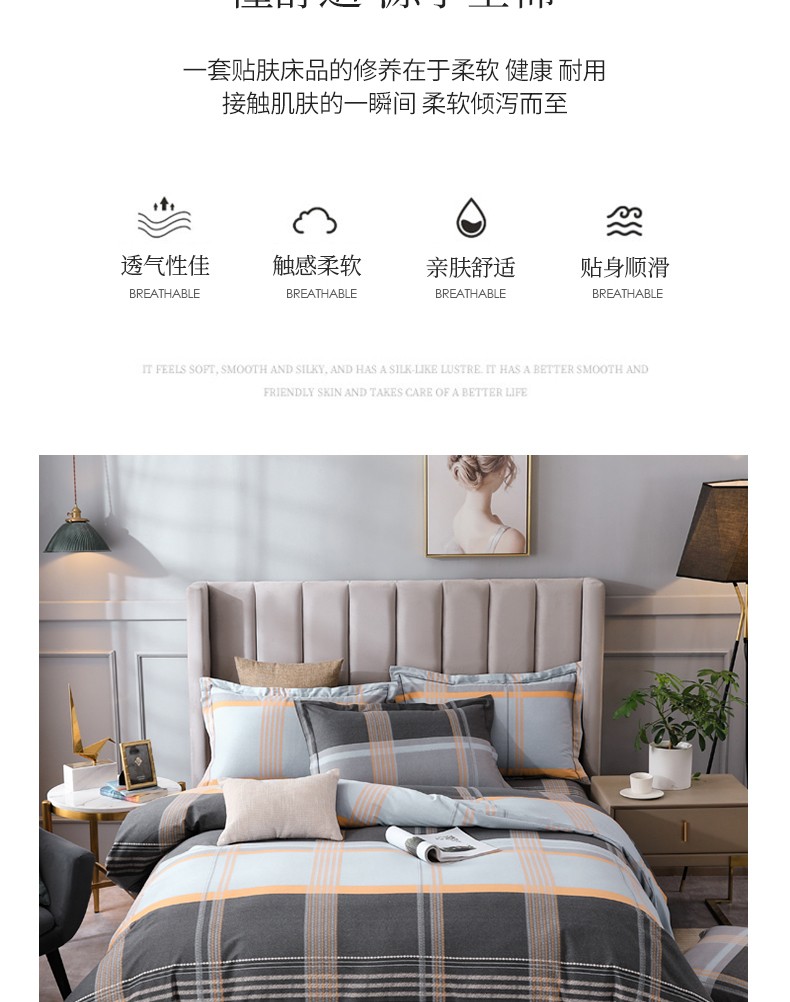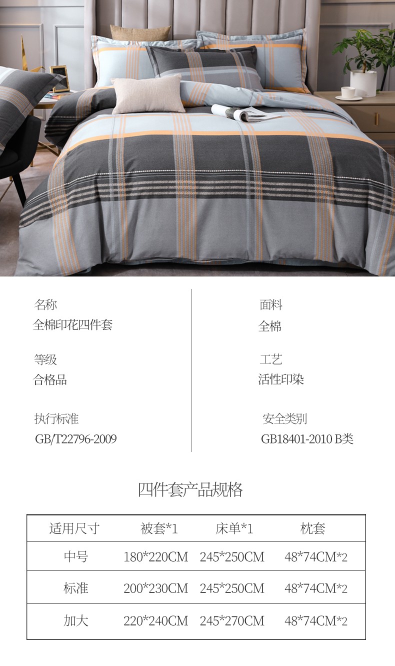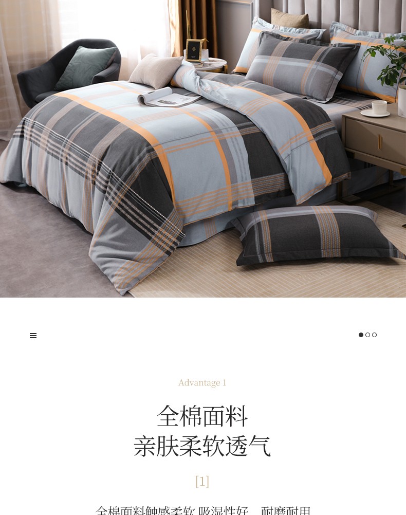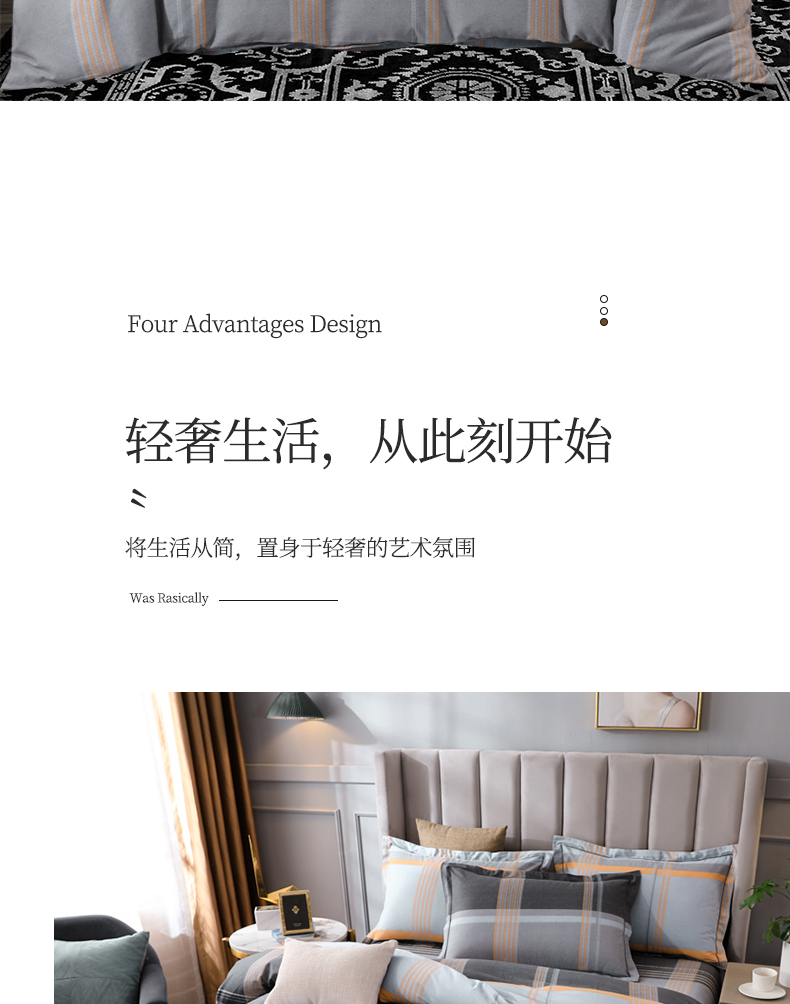 商品名称:金纱玉纺 2022新款全棉磨毛四件套 安慕希-灰