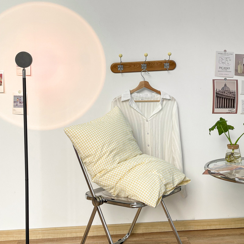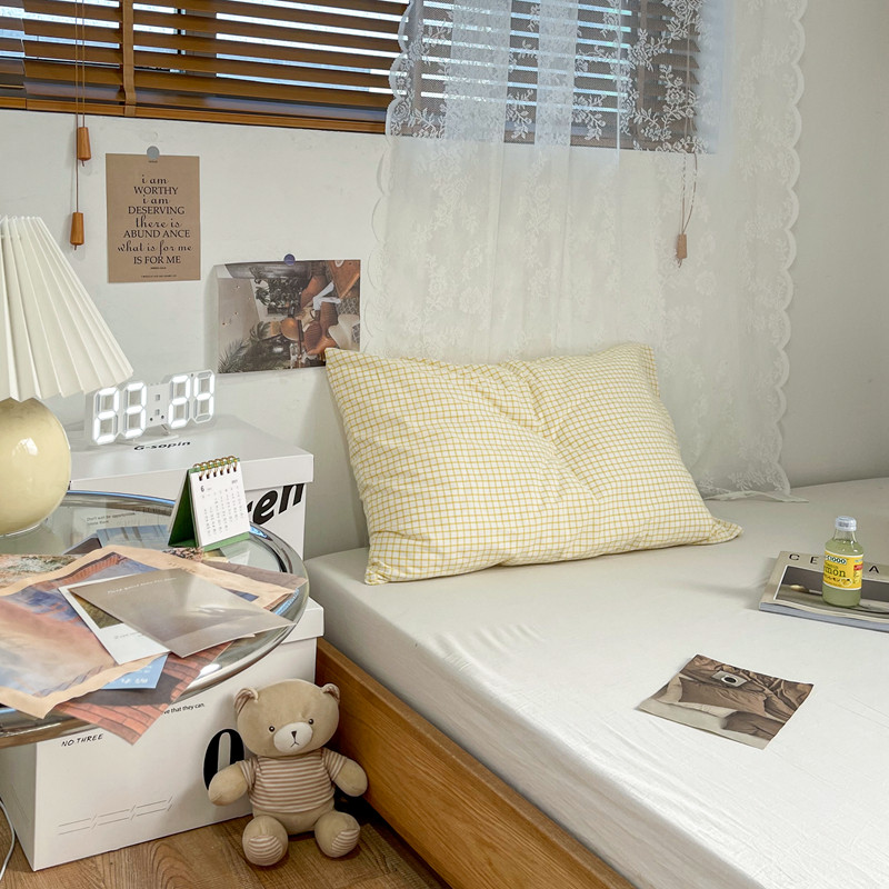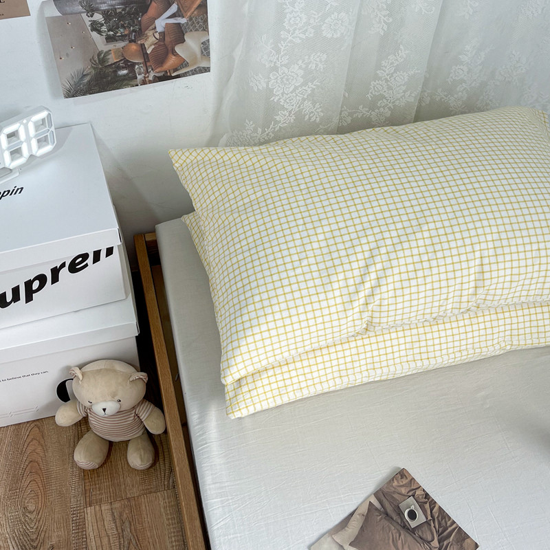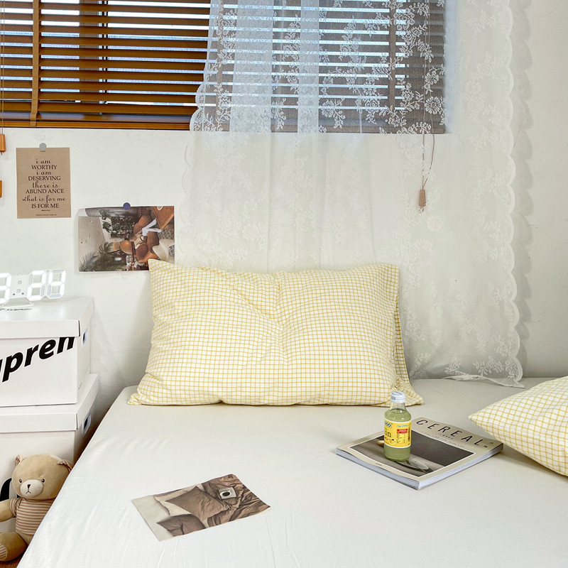 安莱生活 2021新款水洗棉全棉单枕套 清新姜黄格