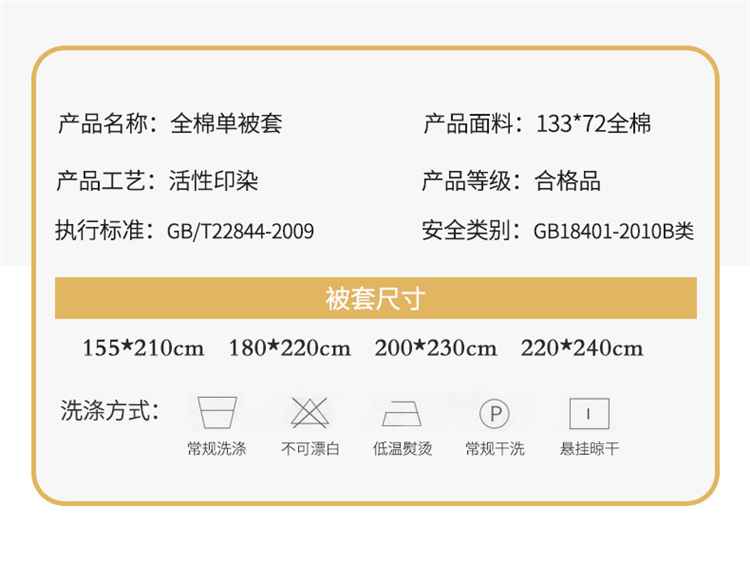 商品名称:芊寻家居 2024新款全棉印花13372单被套 优雅生活-米