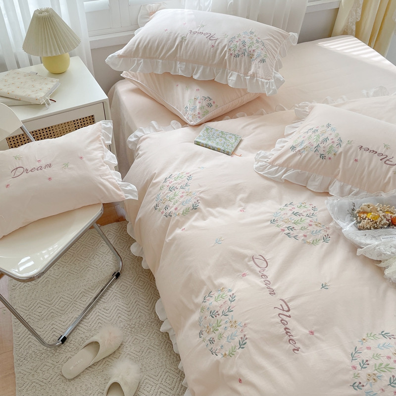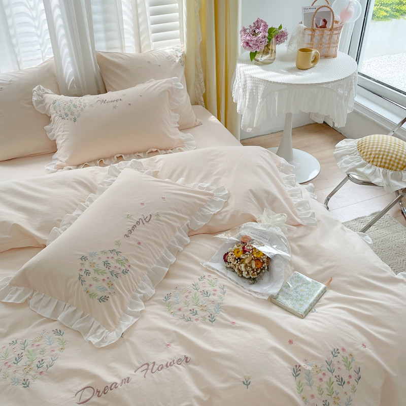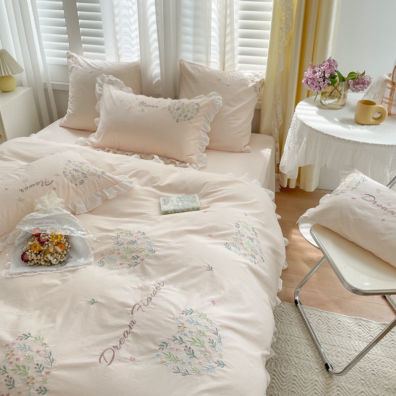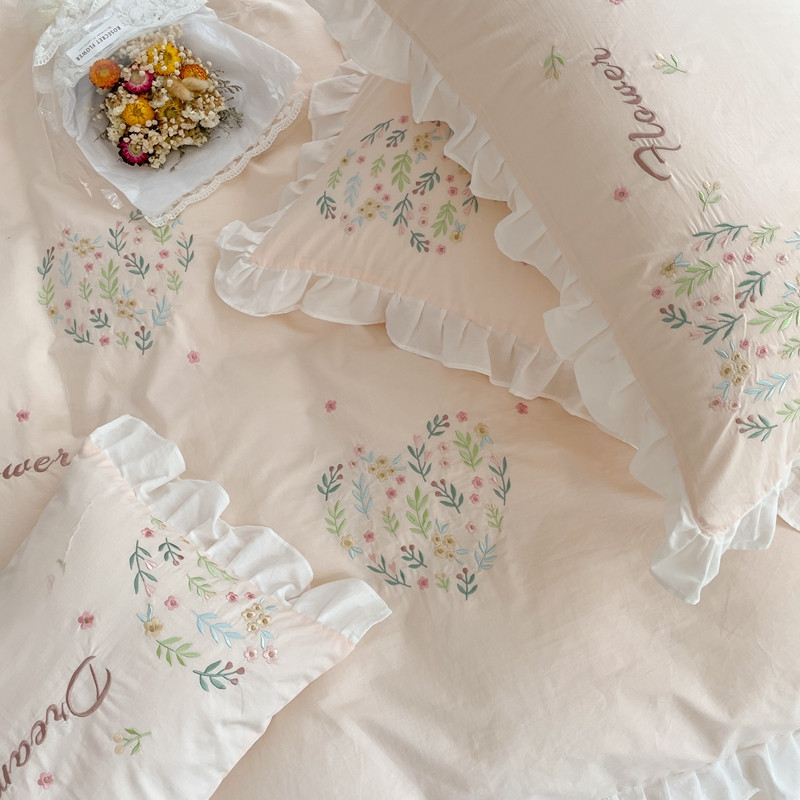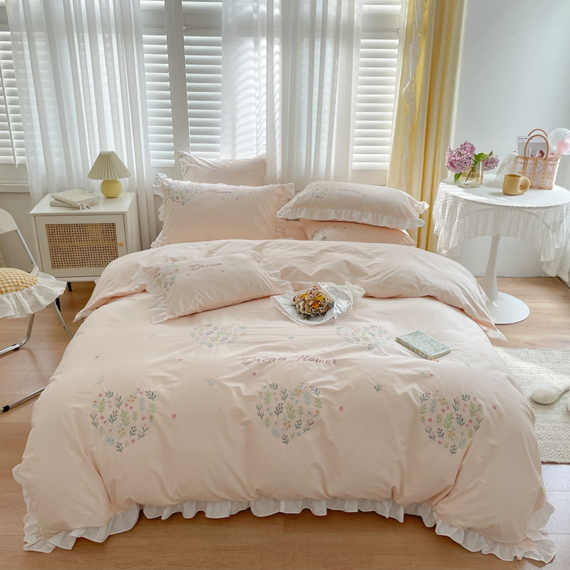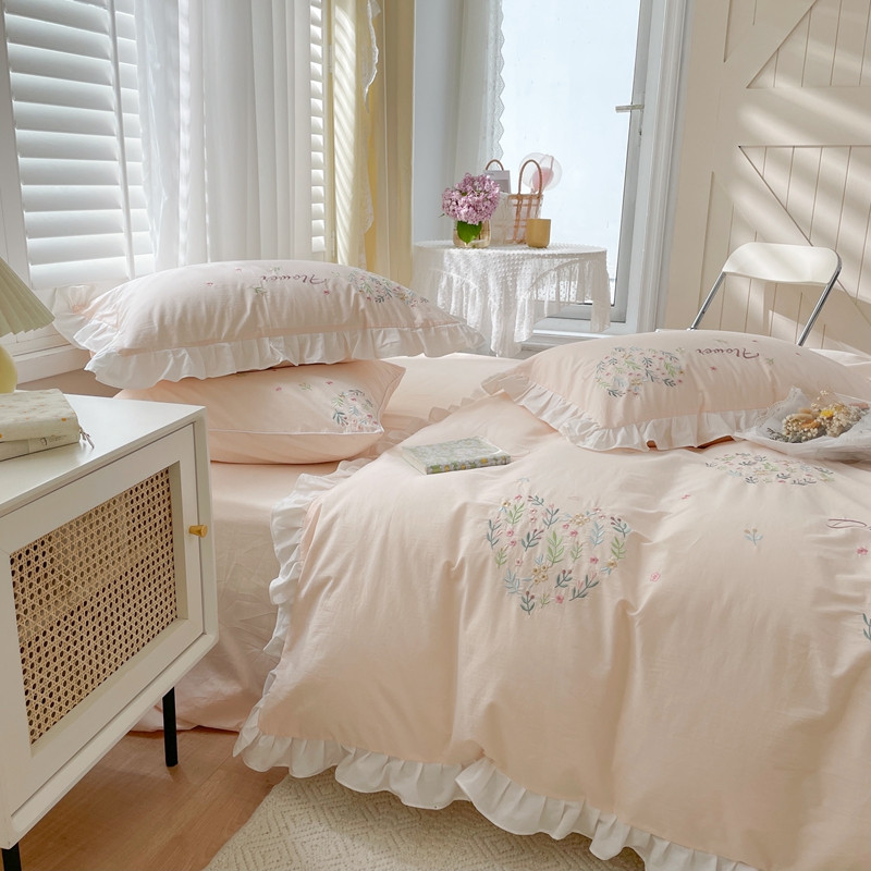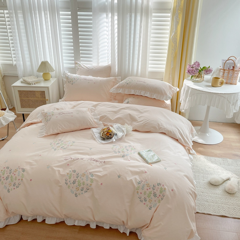 商品名称:馨蕊2021秋冬新款全棉水洗棉高定系列四件套 花间舞-果粉