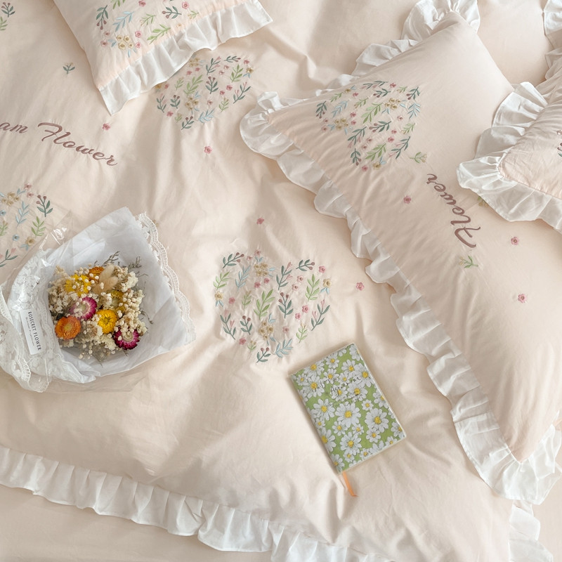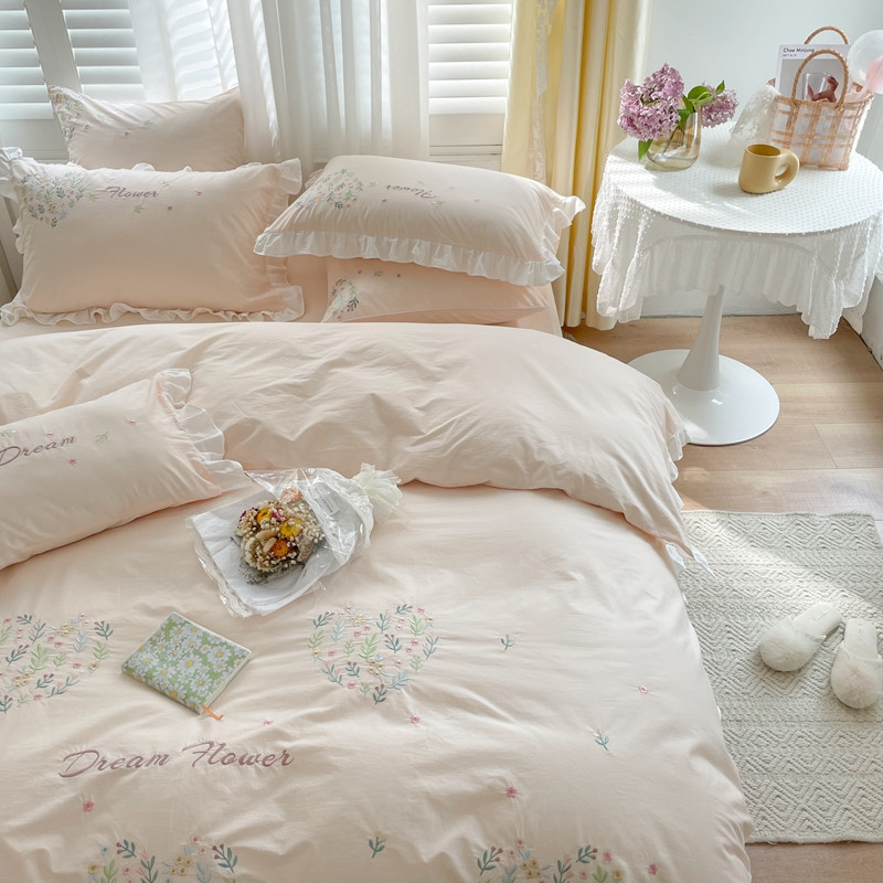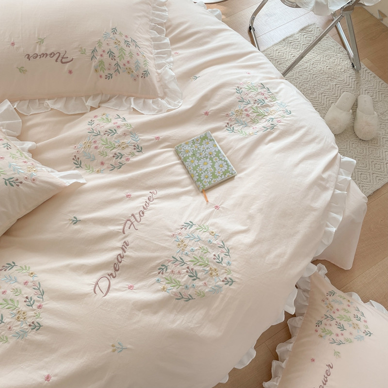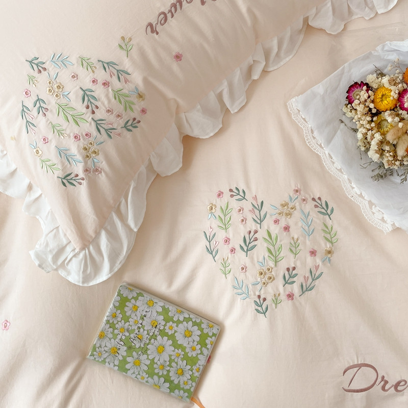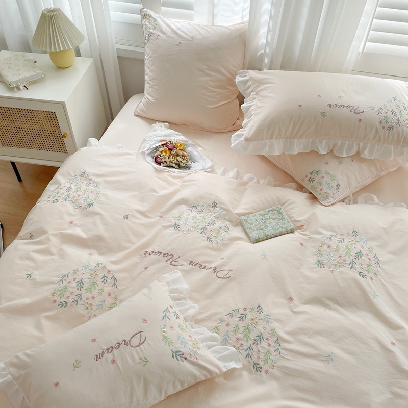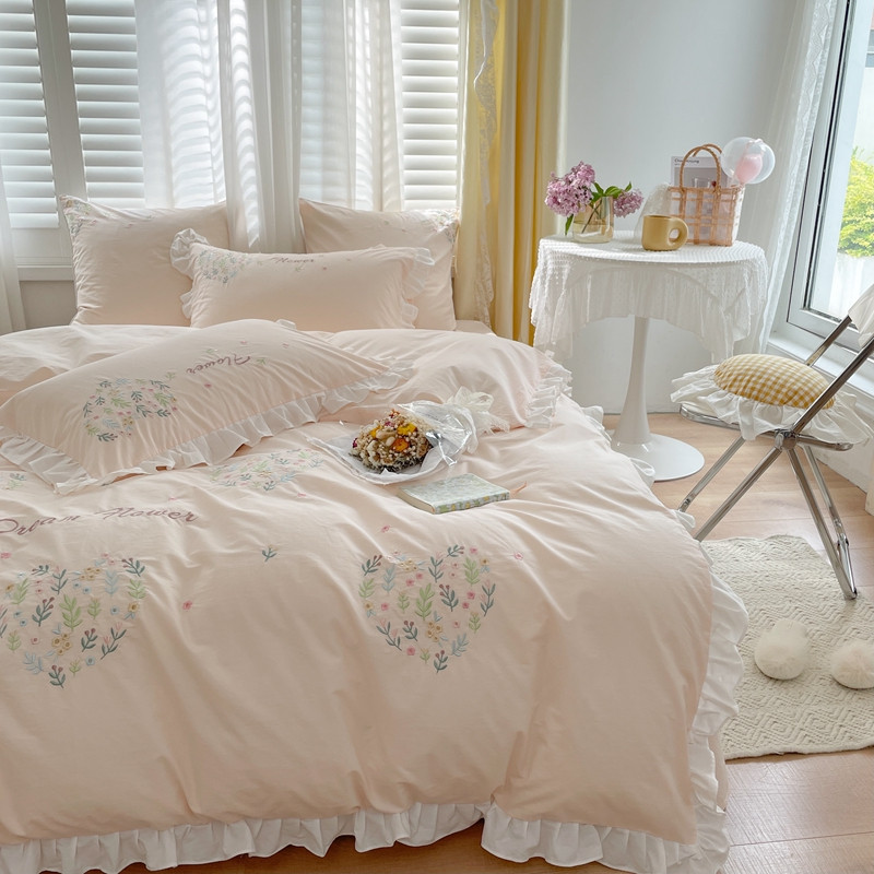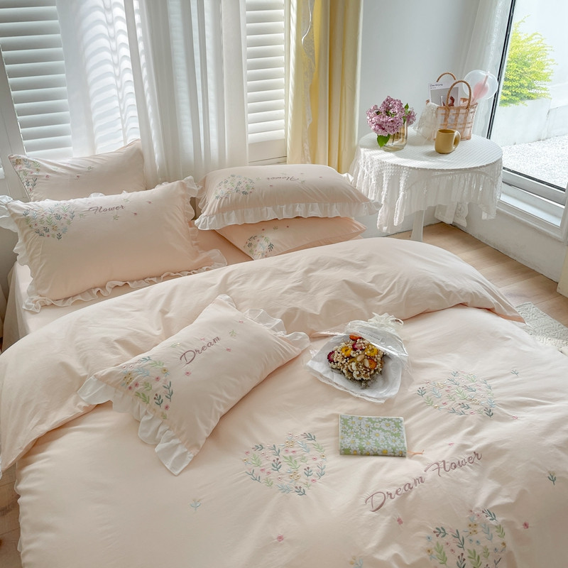 商品名称:馨蕊2021秋冬新款全棉水洗棉高定系列四件套 花间舞-果粉