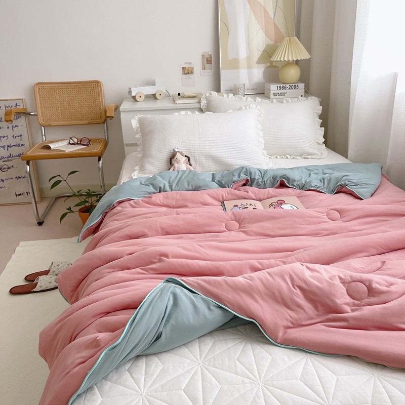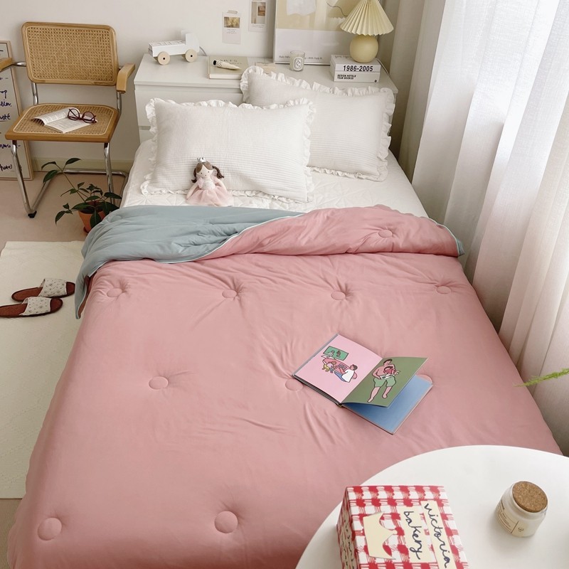 商品名称:星期八 2021新款马卡龙大豆针织春秋被冬被 藕粉豆绿