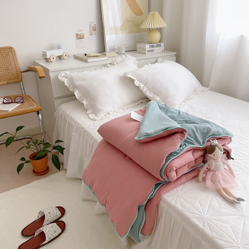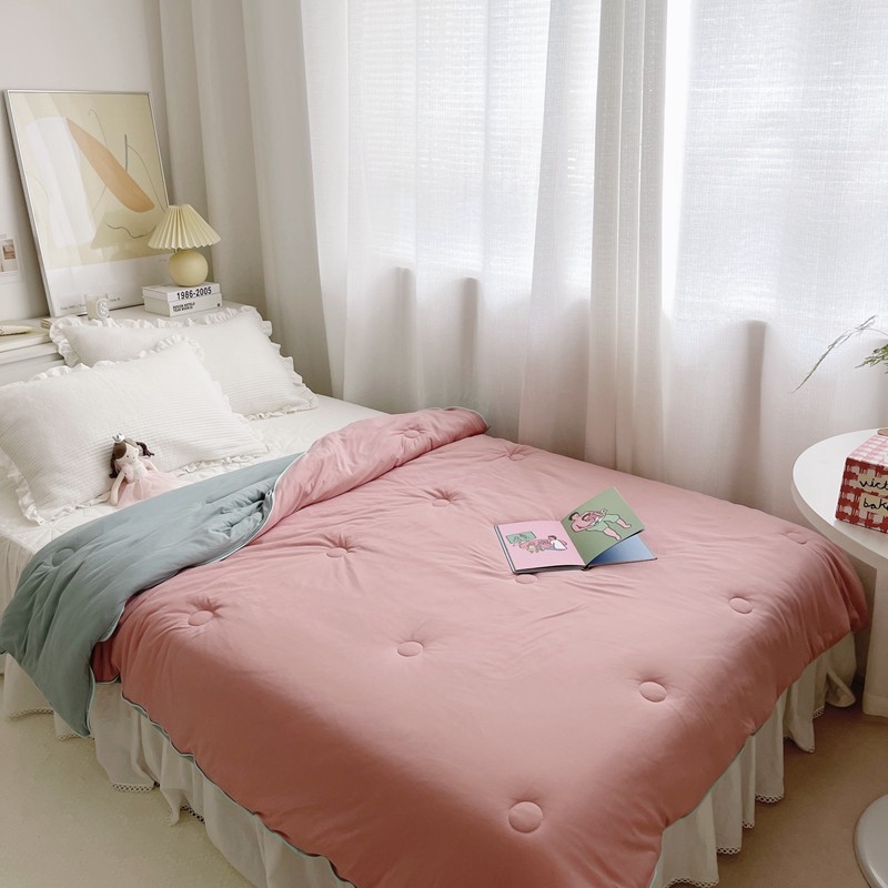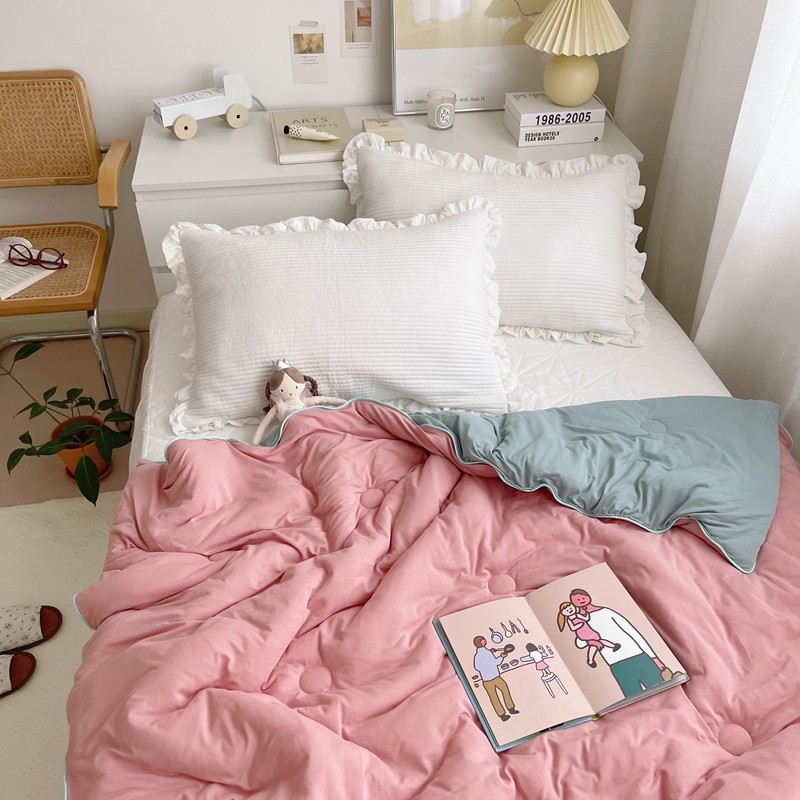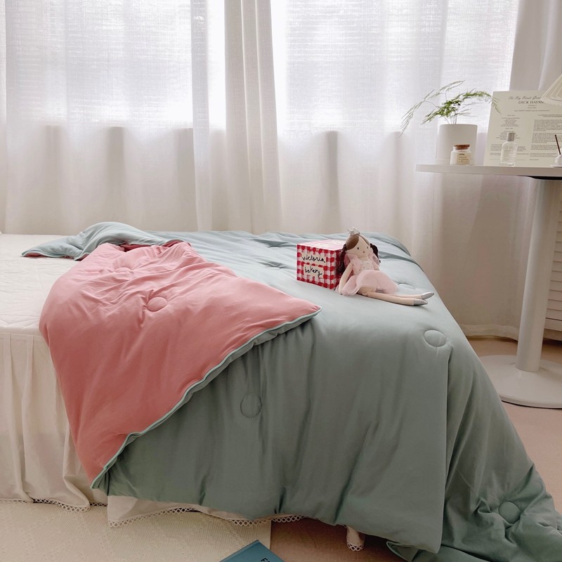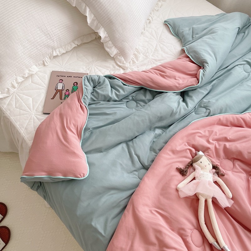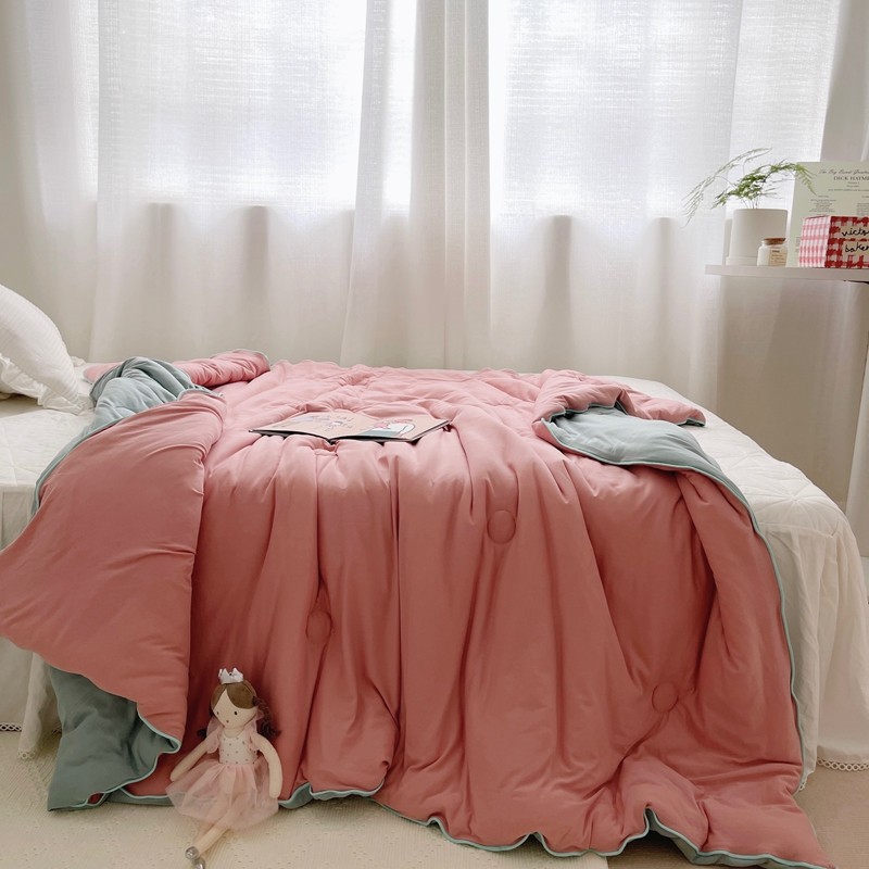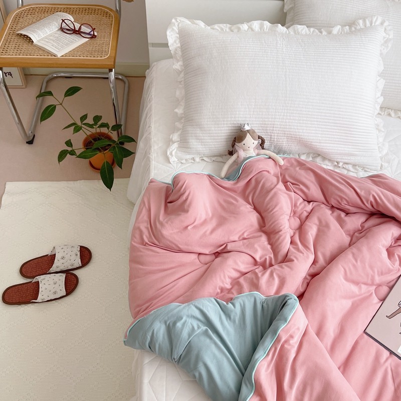 星期八 2021新款马卡龙大豆针织春秋被冬被 藕粉豆绿