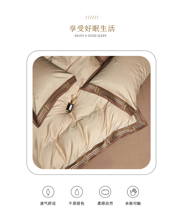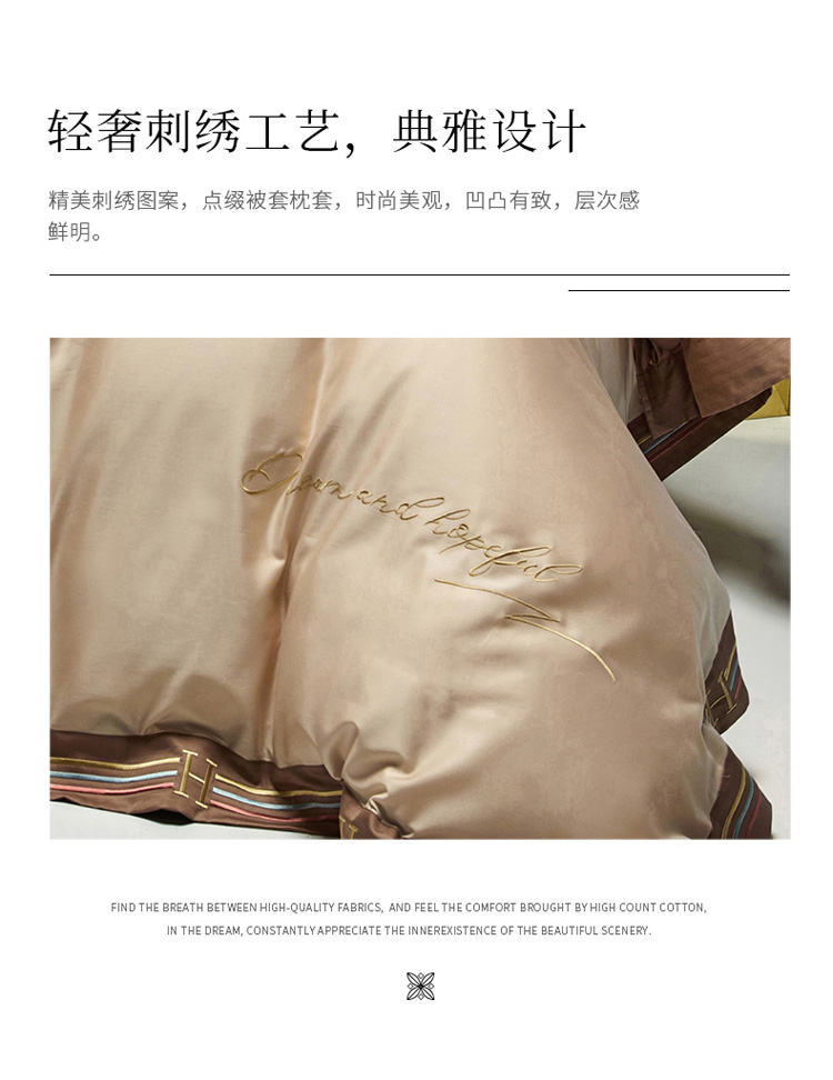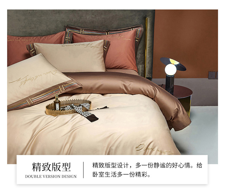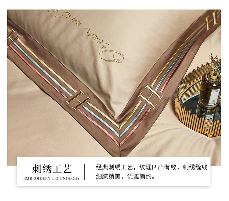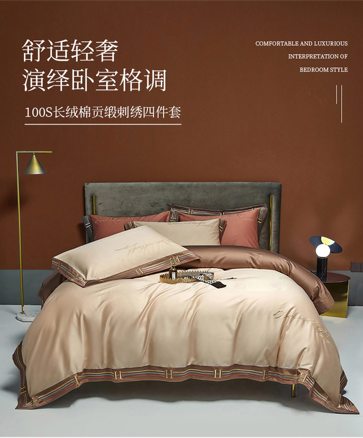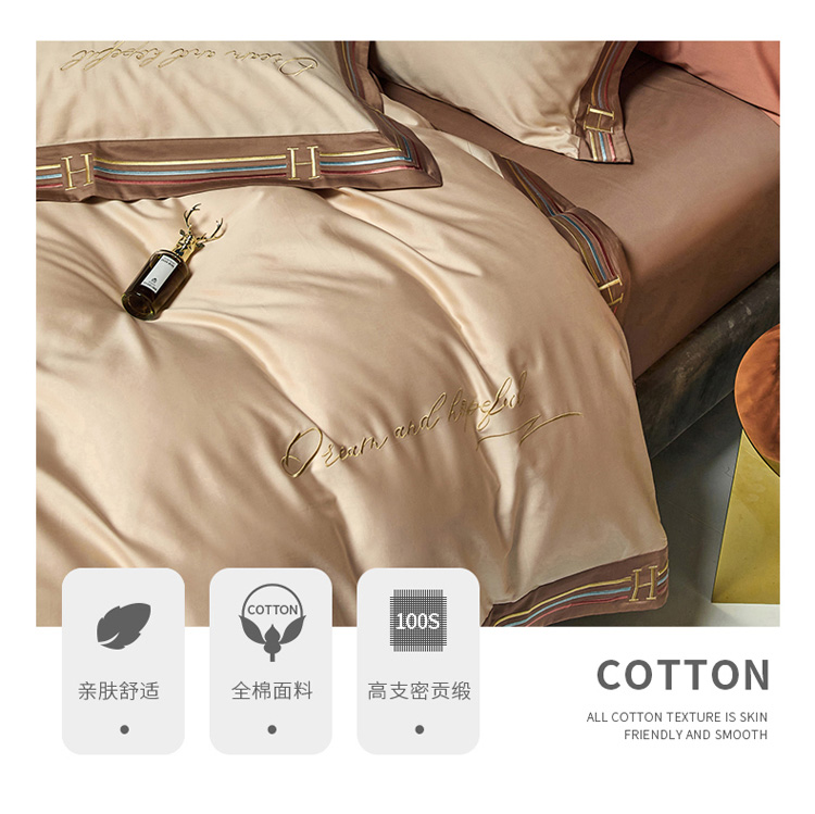 爱缦 2021新款100S长绒棉贡缎刺绣四件套罗曼尼 奶茶杏