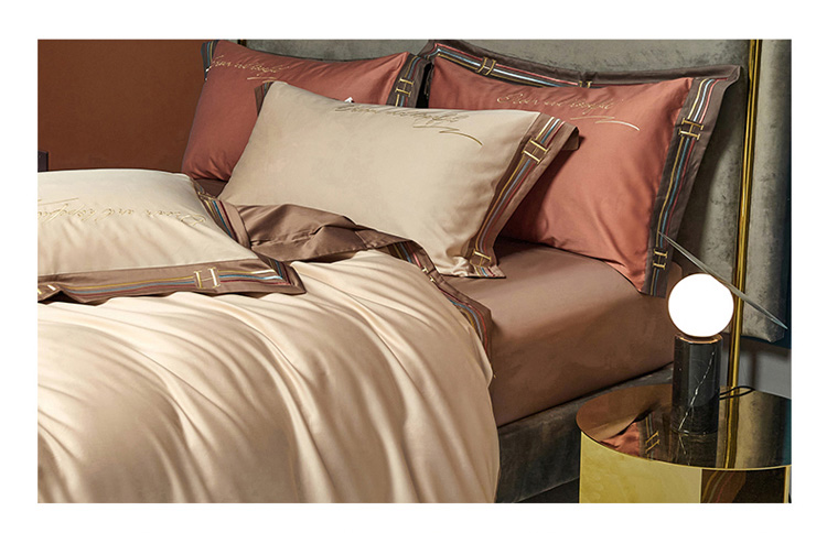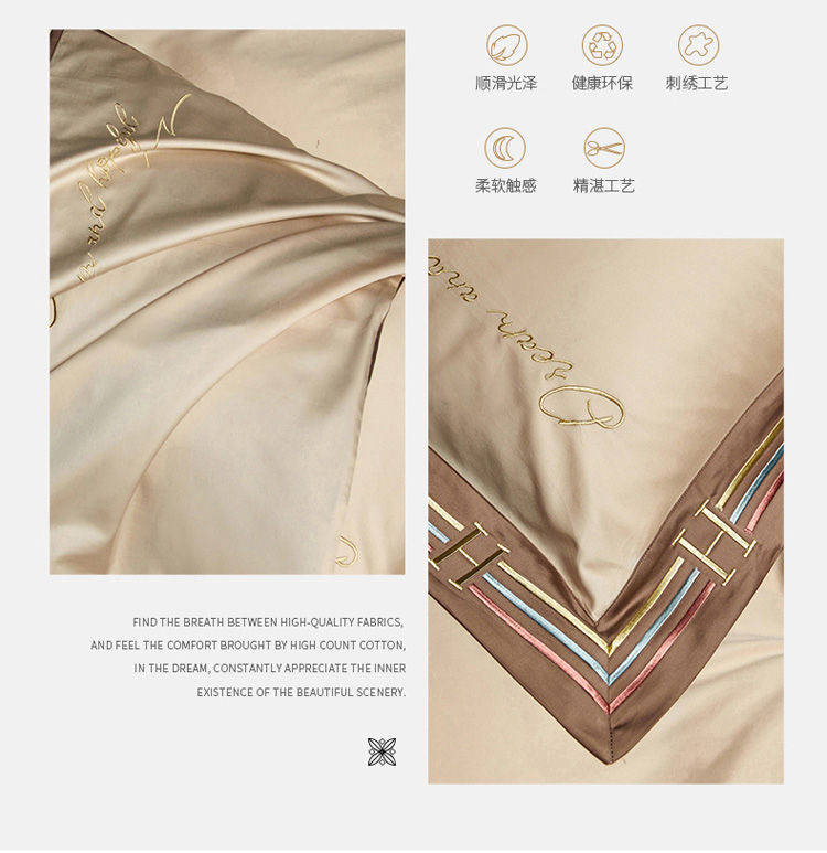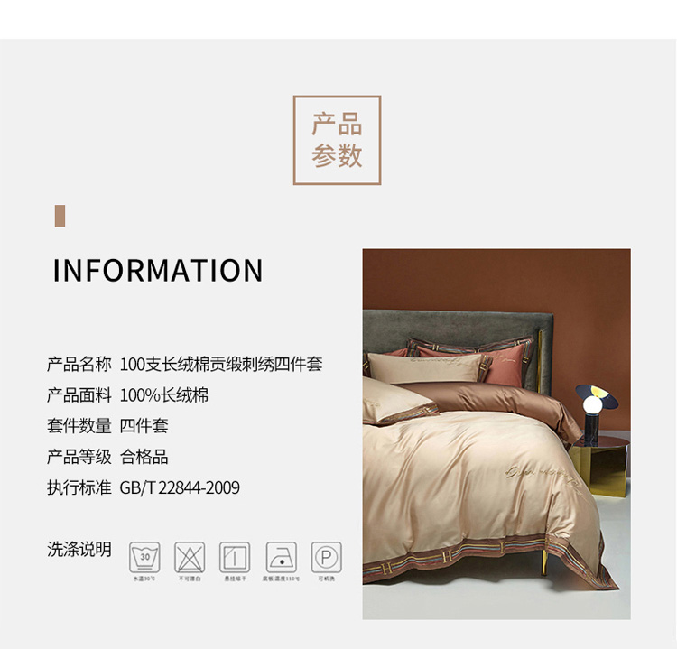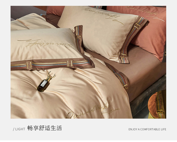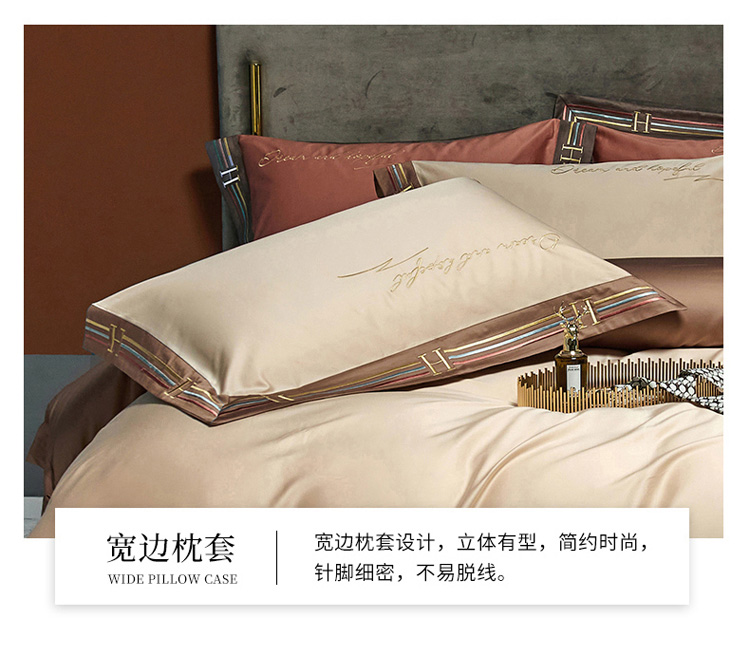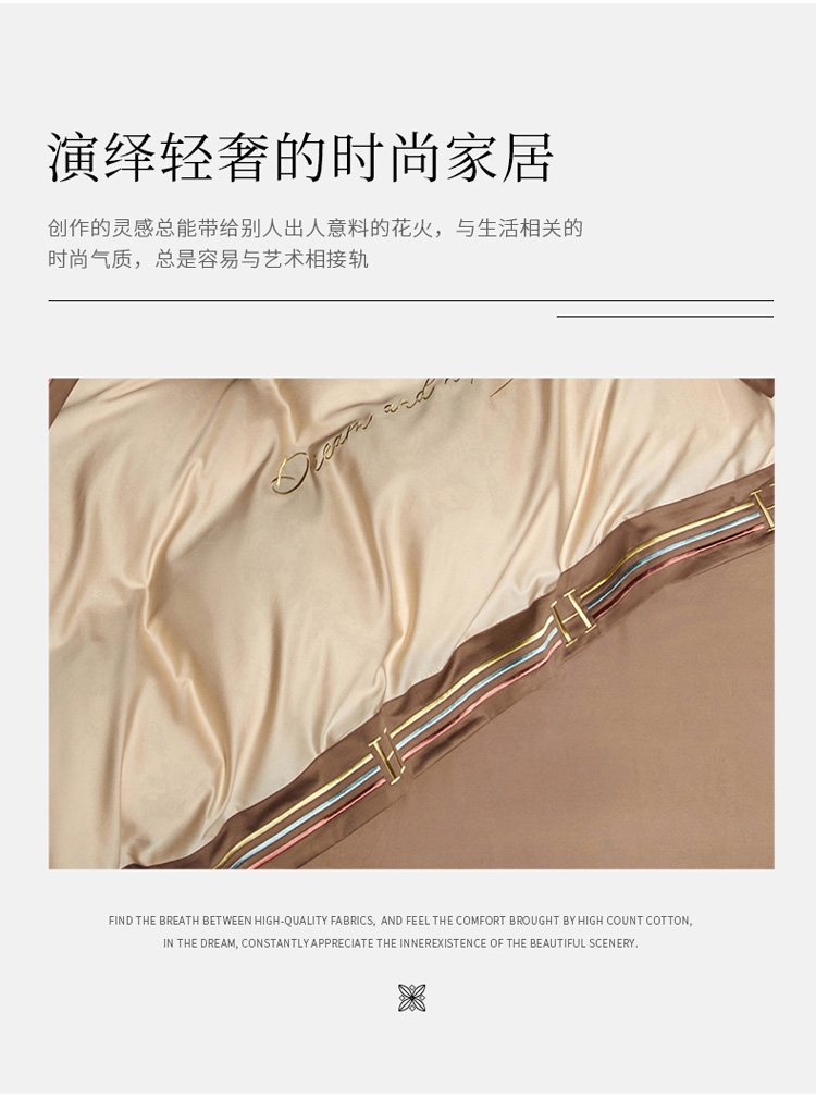 爱缦 2021新款100S长绒棉贡缎刺绣四件套罗曼尼 奶茶杏