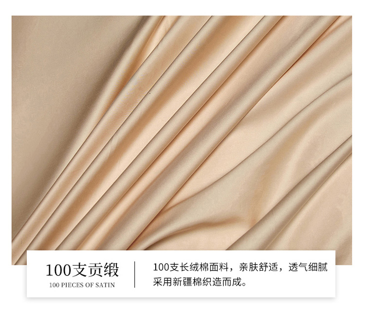 商品名称:爱缦 2021新款100S长绒棉贡缎刺绣四件套罗曼尼 奶茶杏