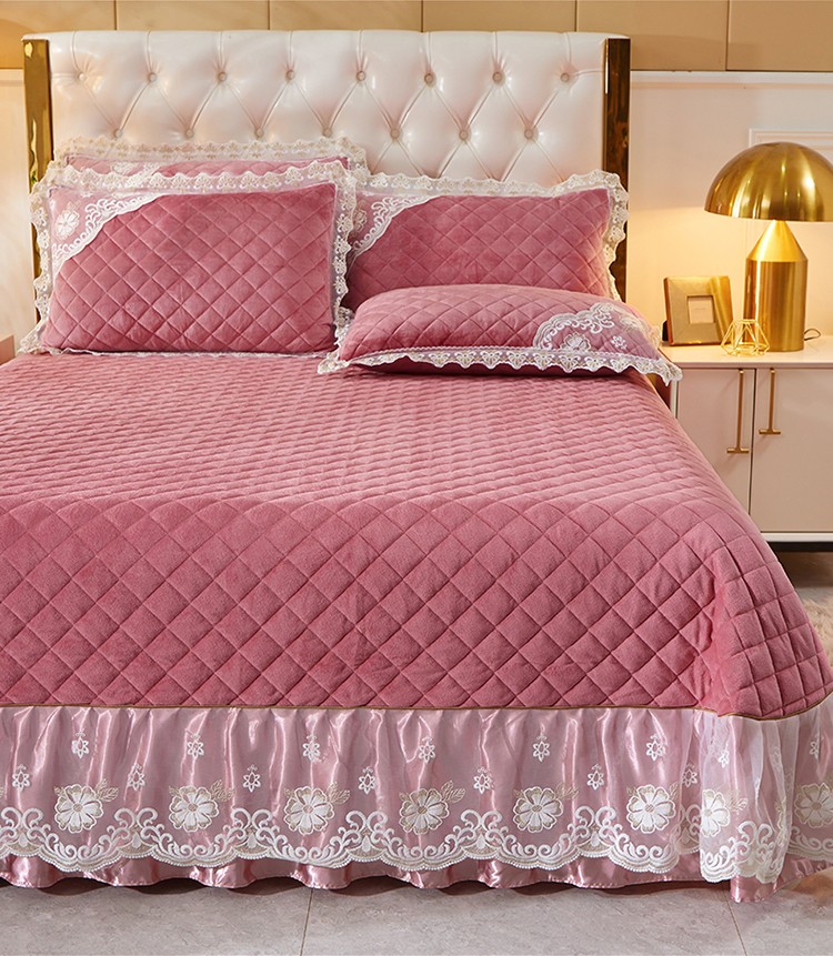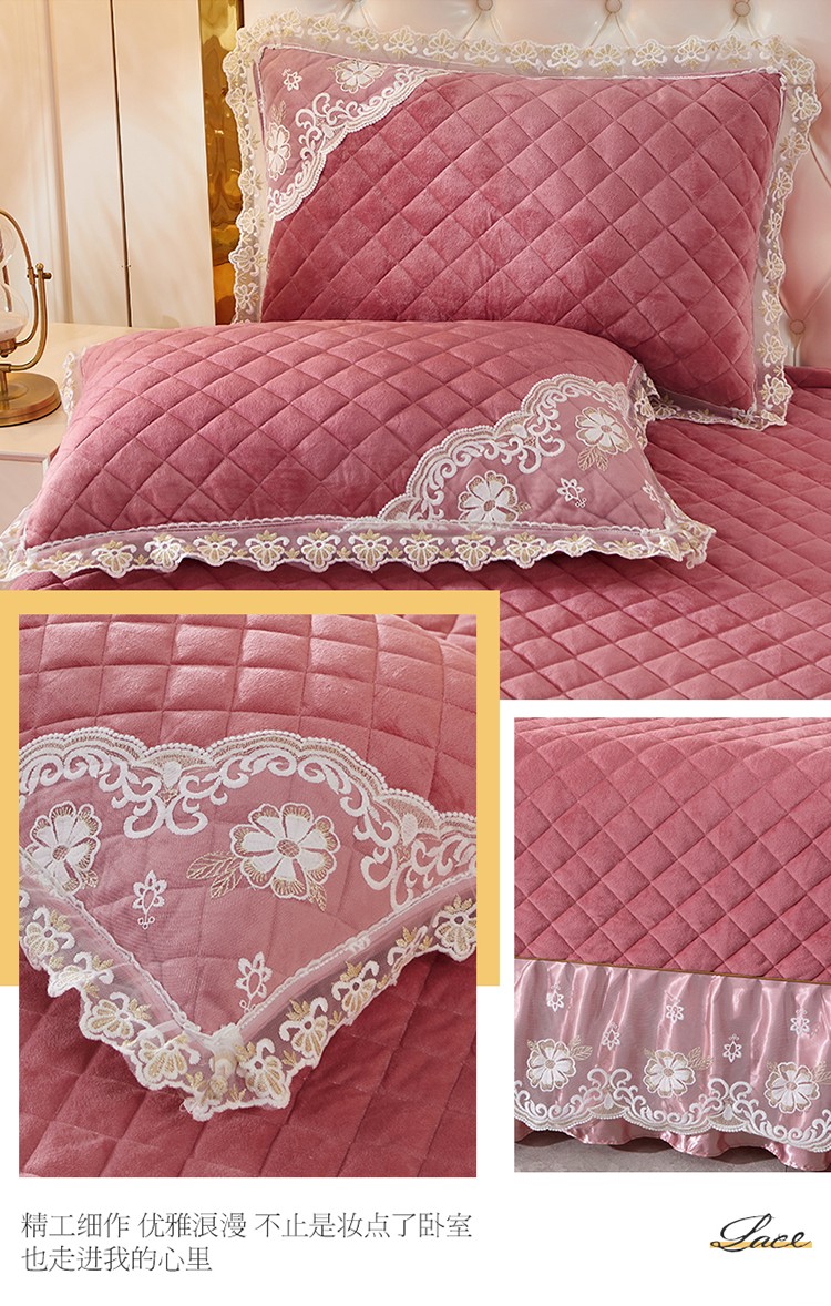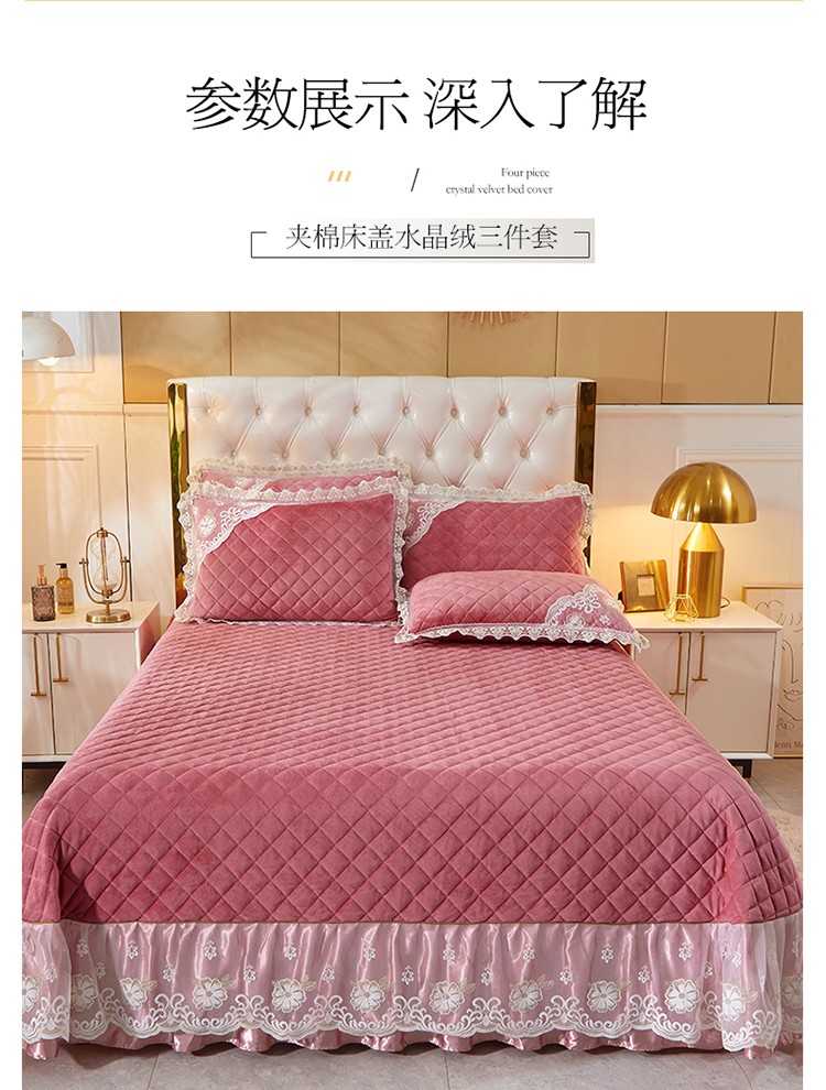 商品名称:网红馆 2025新款曼妮夹棉水晶绒单品床盖被套枕套 豆沙