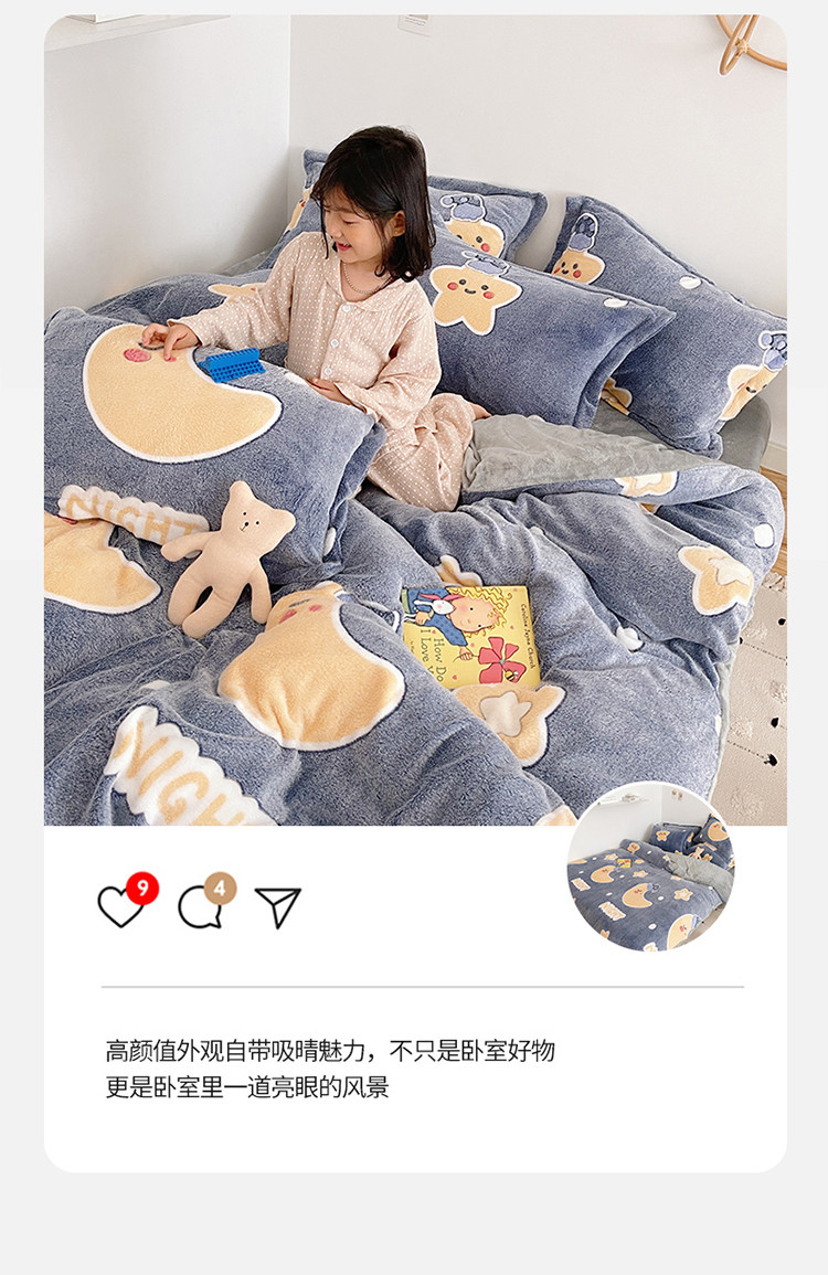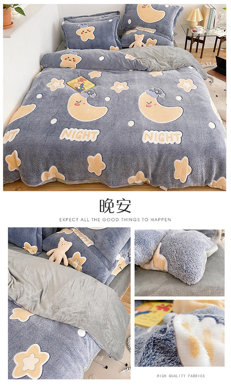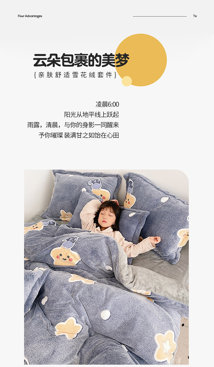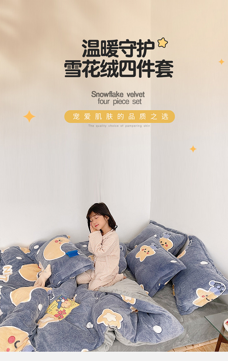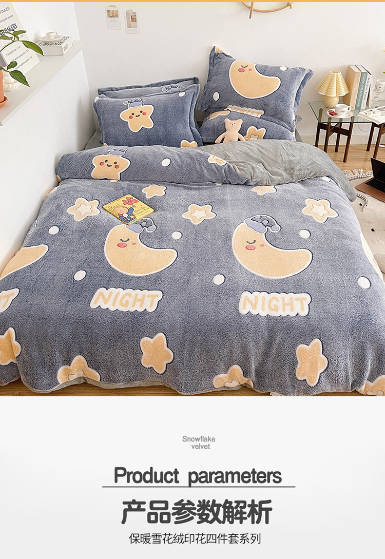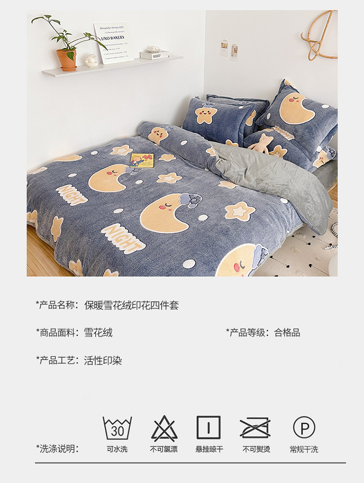 当前位置: 91家纺网 > 商品网购 > 床品套件 > 四件套 > 磨绒四件套 > 兄弟坊 2021新款保暖雪花绒印花四件套 晚安-1