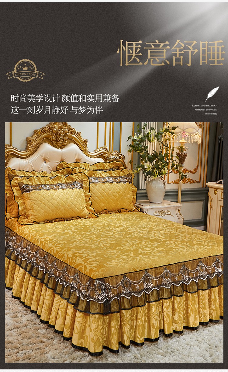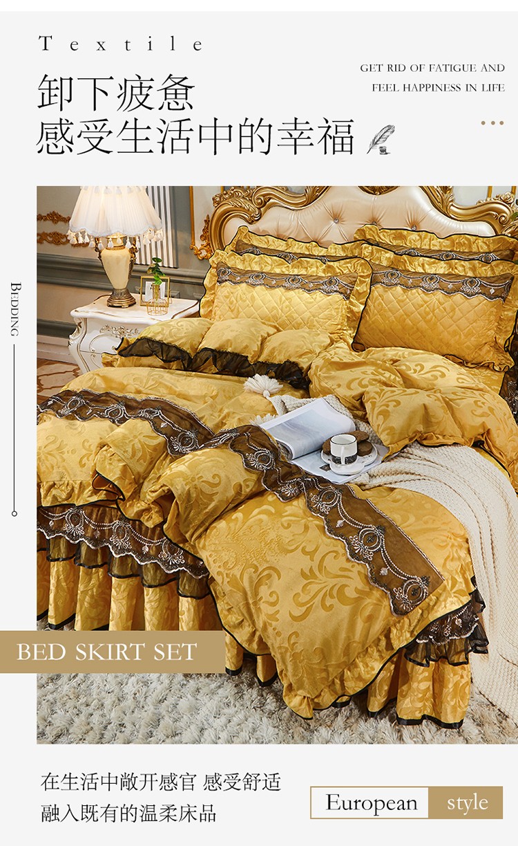 网红馆 2025新款梦庭花开天鹅绒床裙四件套 姜黄