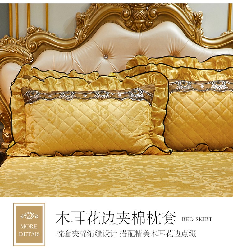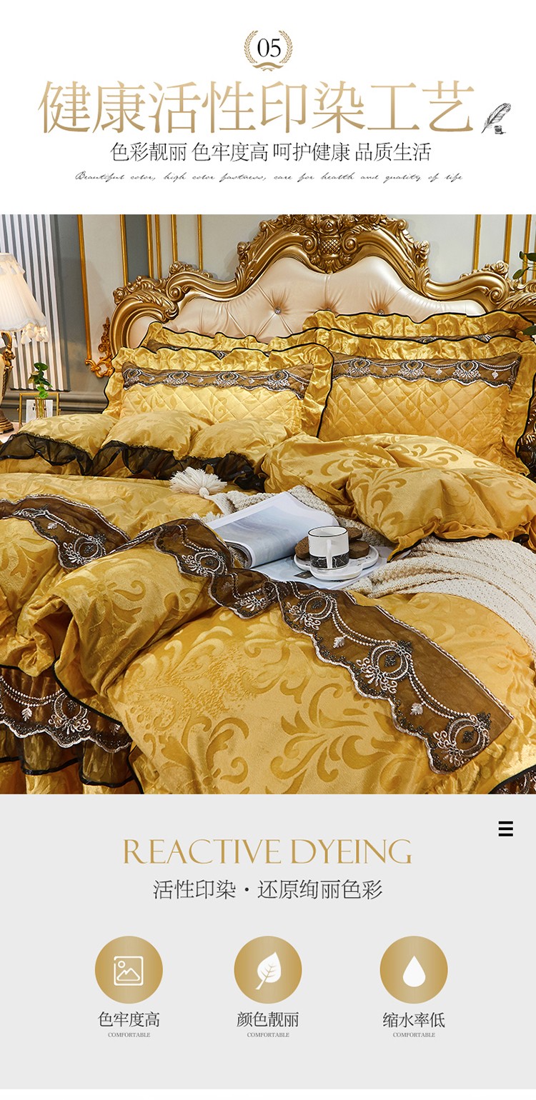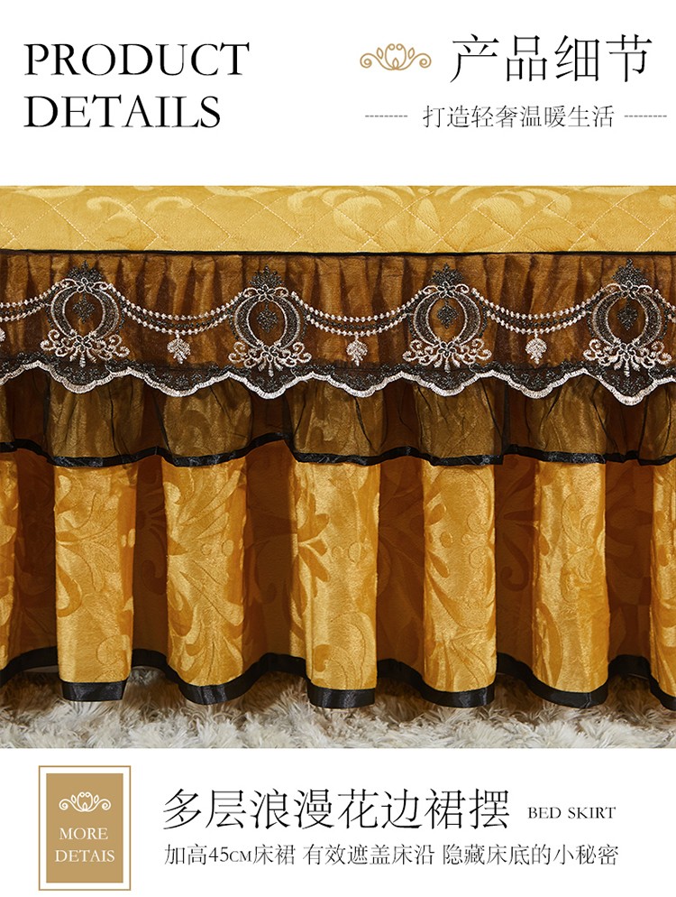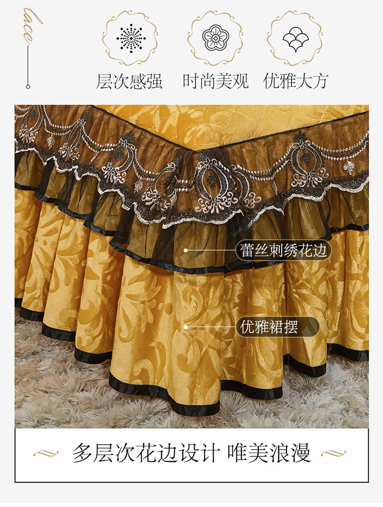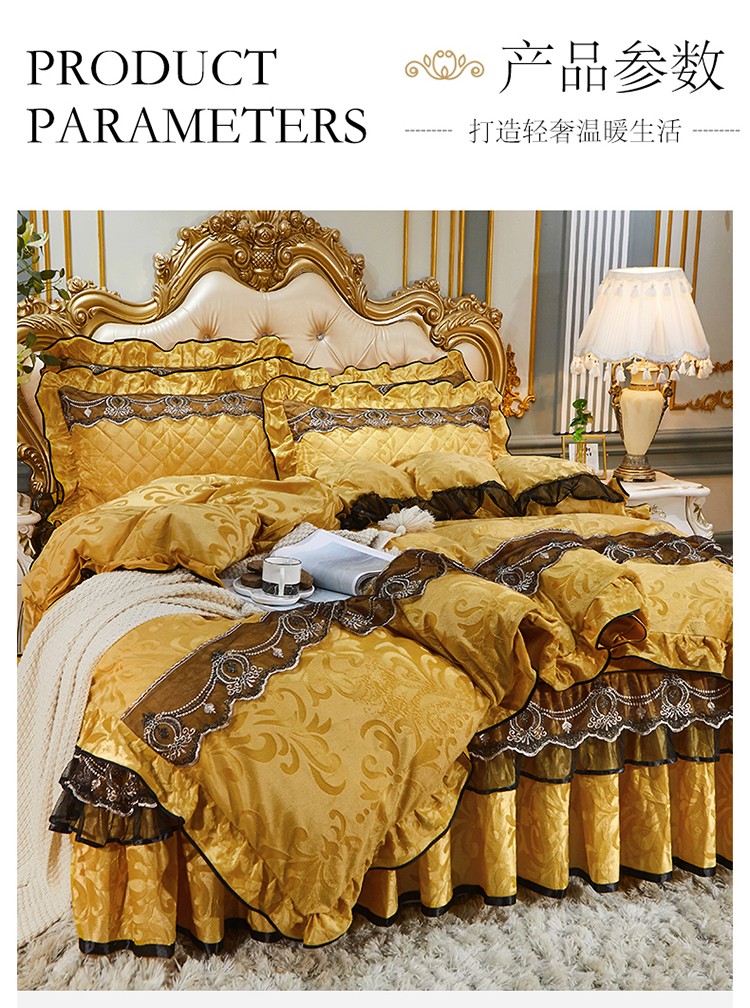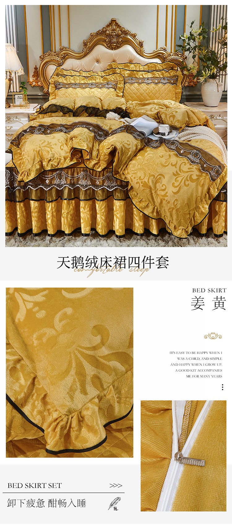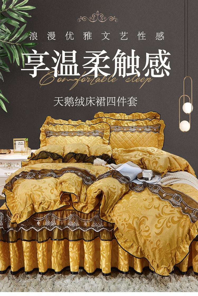 商品名称:网红馆 2025新款梦庭花开天鹅绒床裙四件套 姜黄