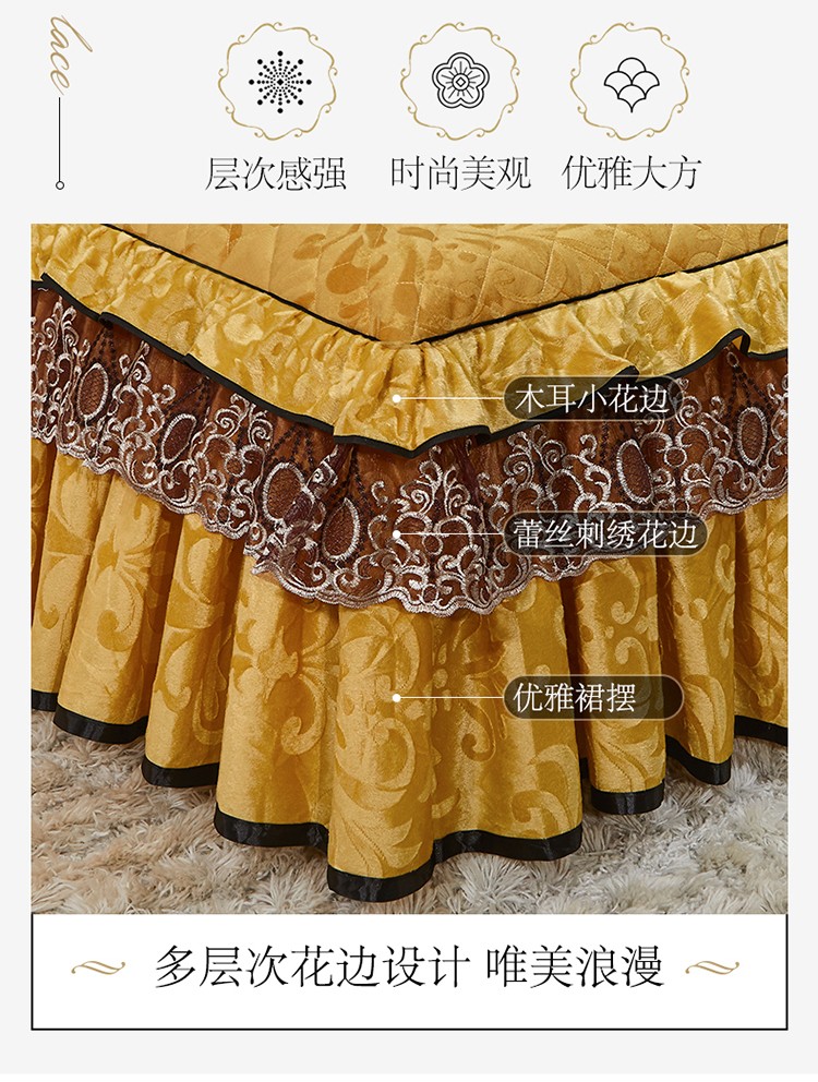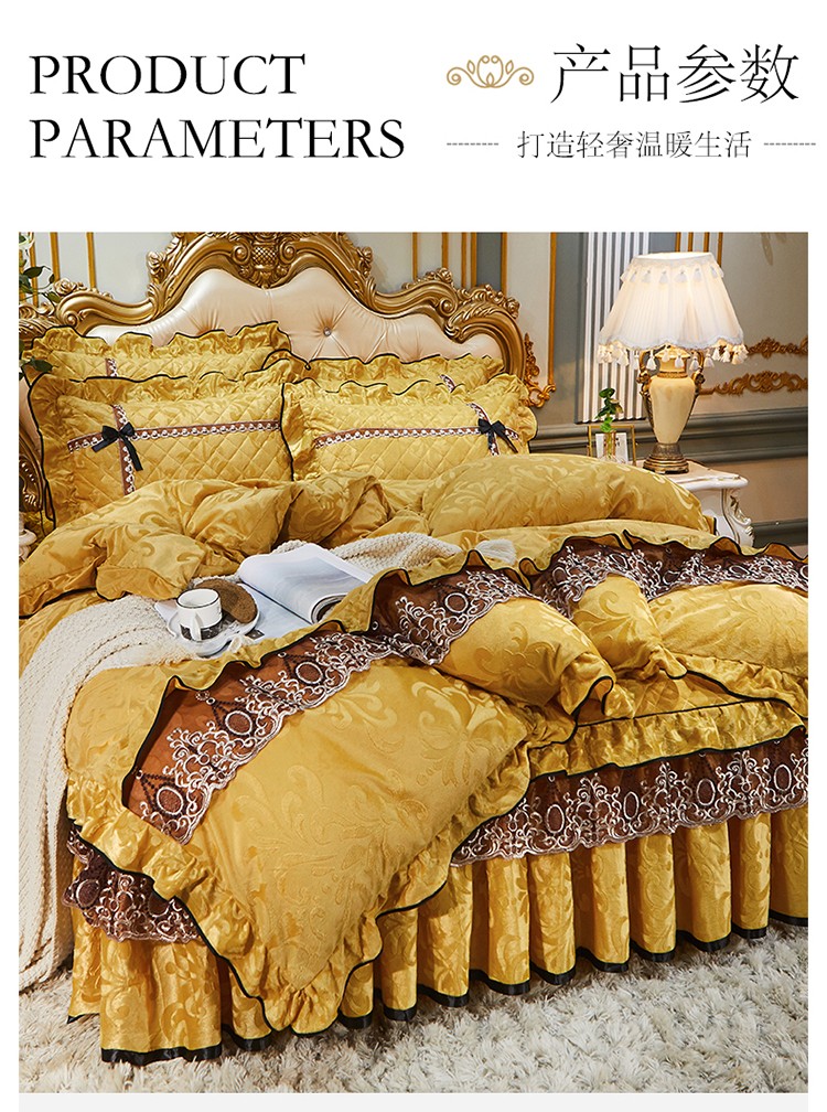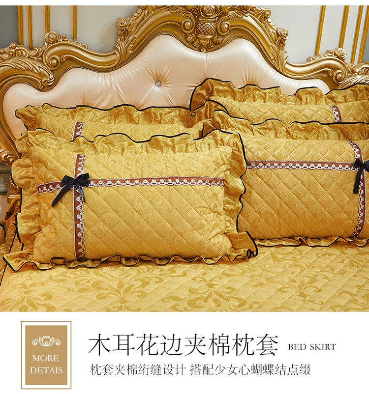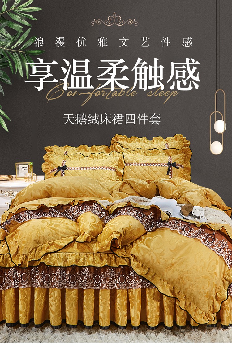 商品名称:网红馆 2025新款梦醉奢华天鹅绒床裙四件套 蝴蝶结款-姜黄
