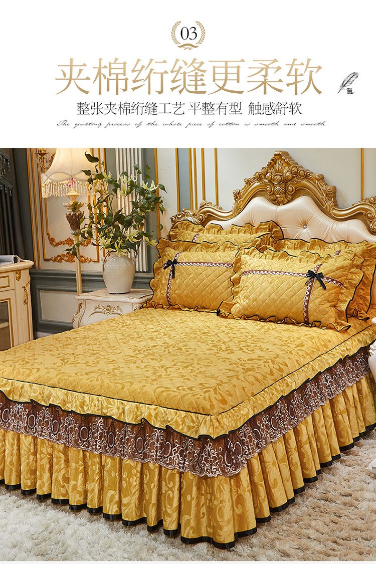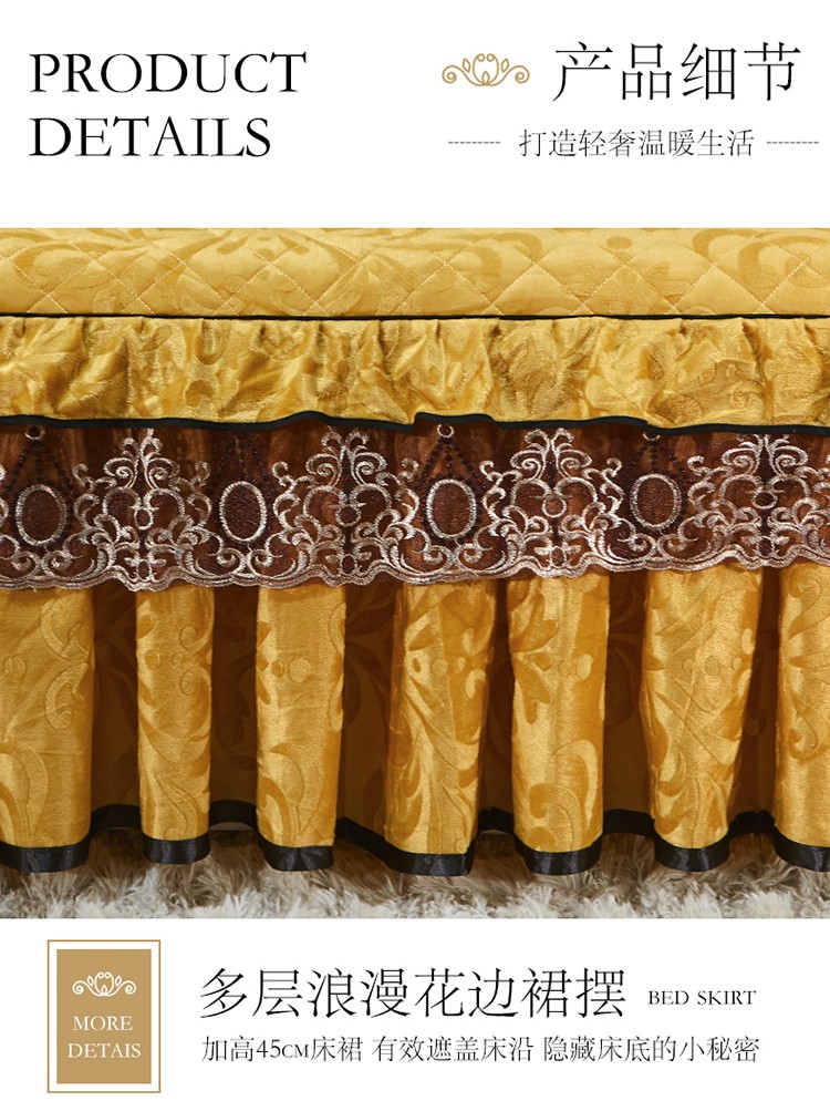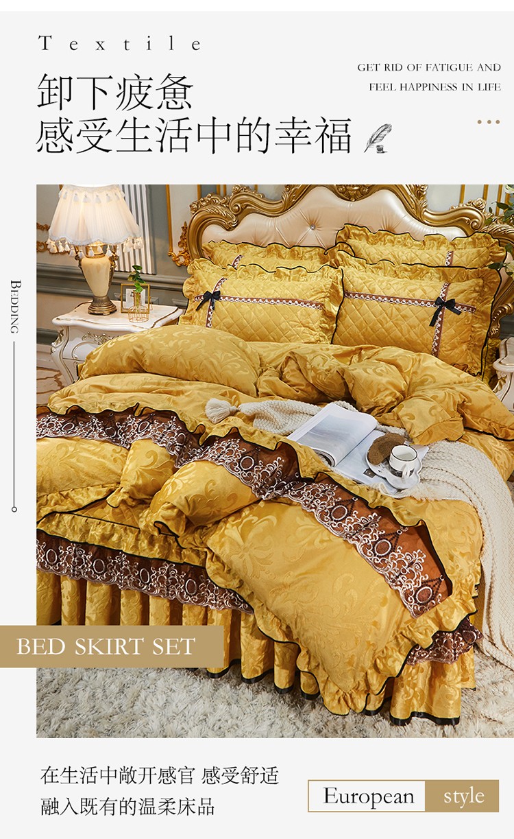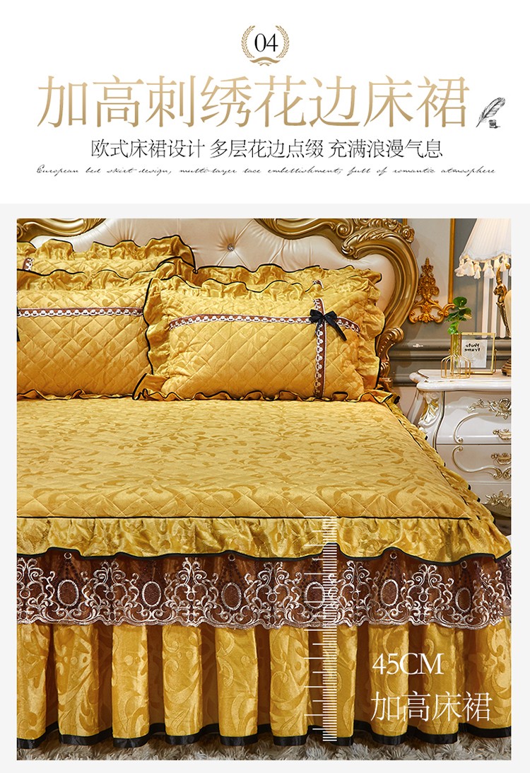商品名称:网红馆 2025新款梦醉奢华天鹅绒床裙四件套 蝴蝶结款-姜黄