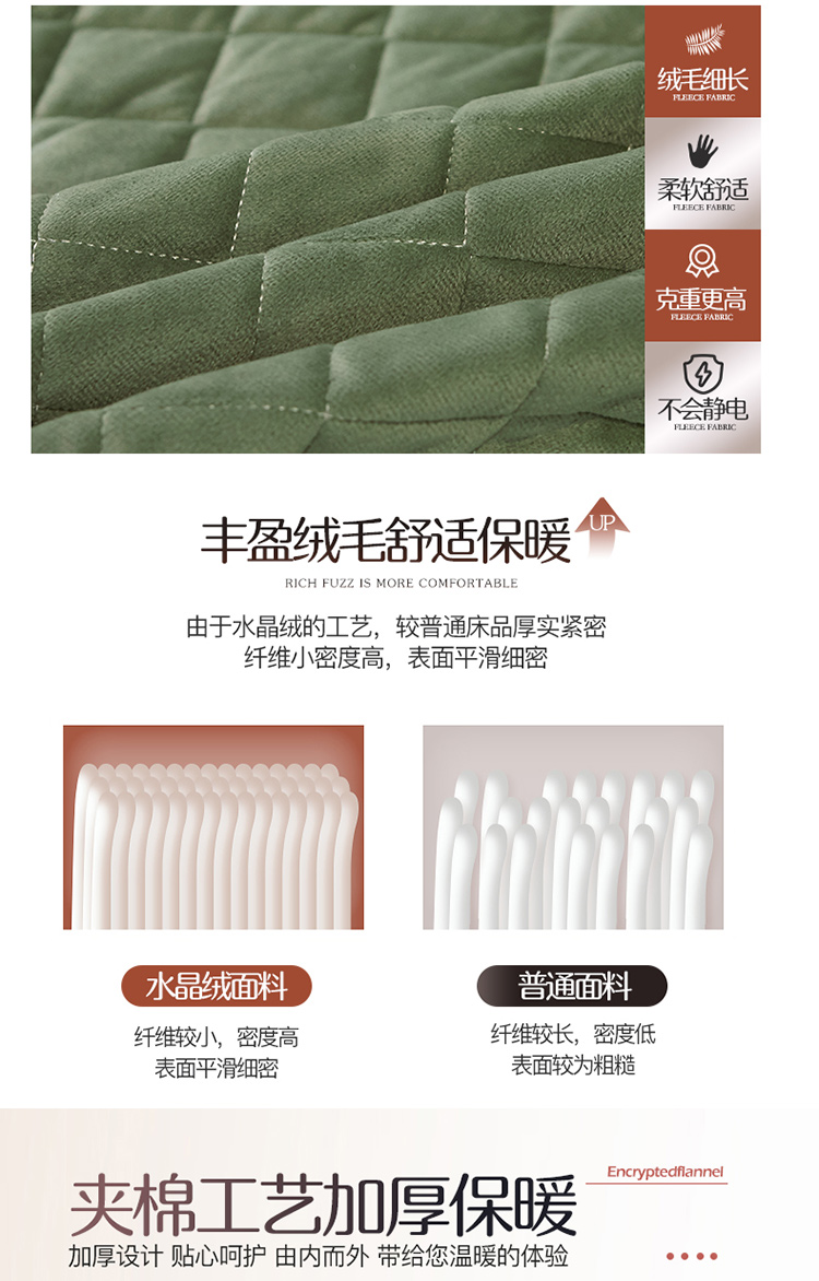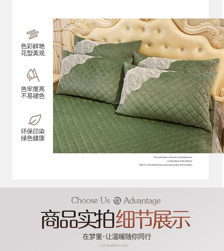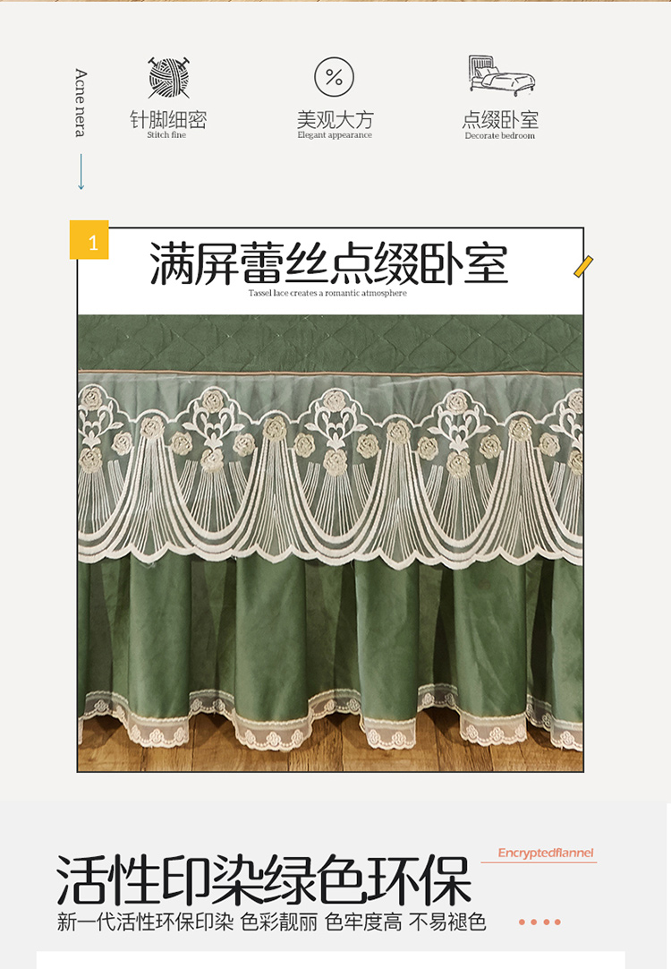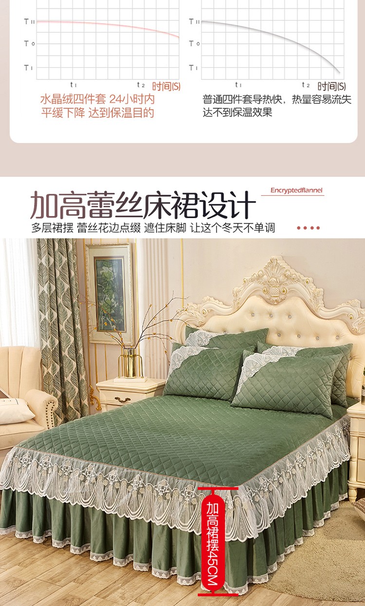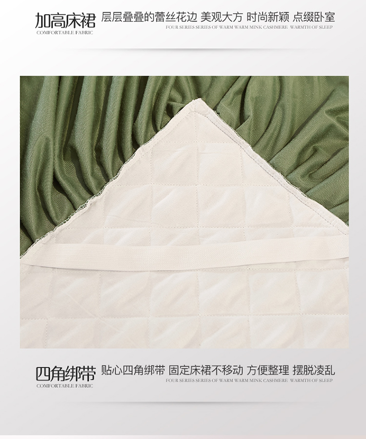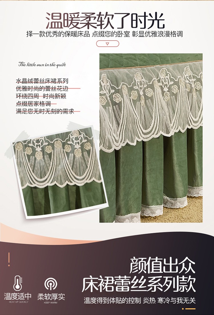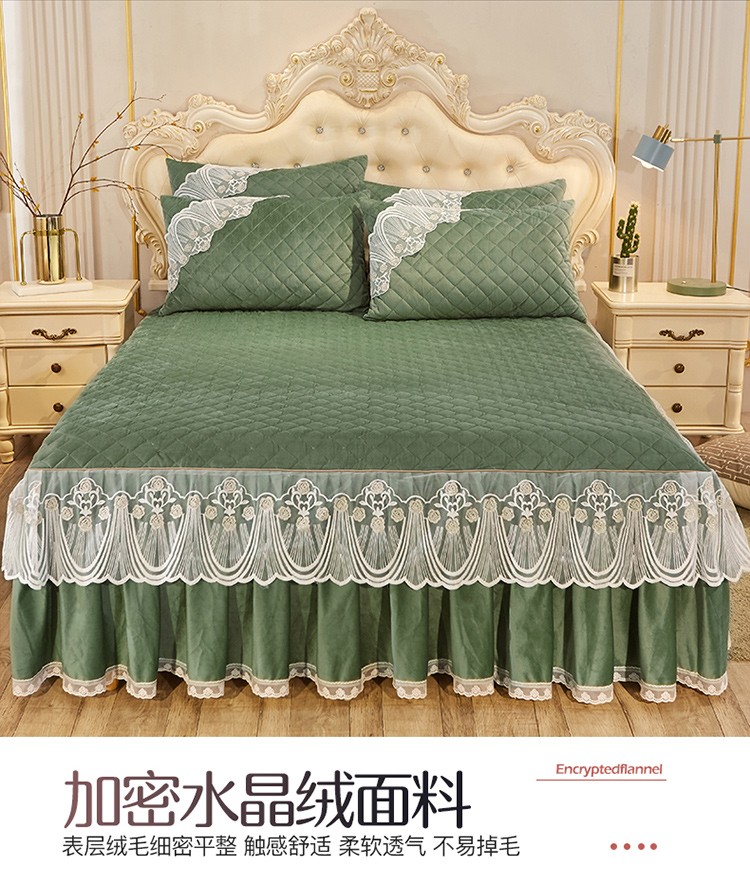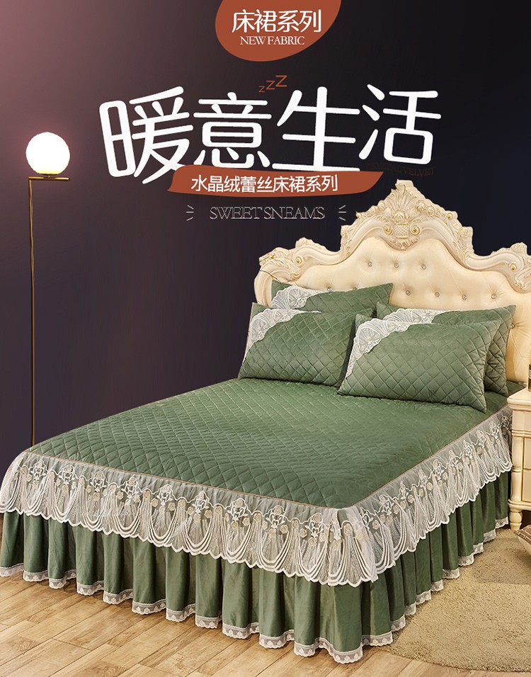 • 91家纺网 家纺一手货源 找家纺 网红馆2025新款幸福花开水晶绒蕾丝单品床裙被套枕套 橄榄绿