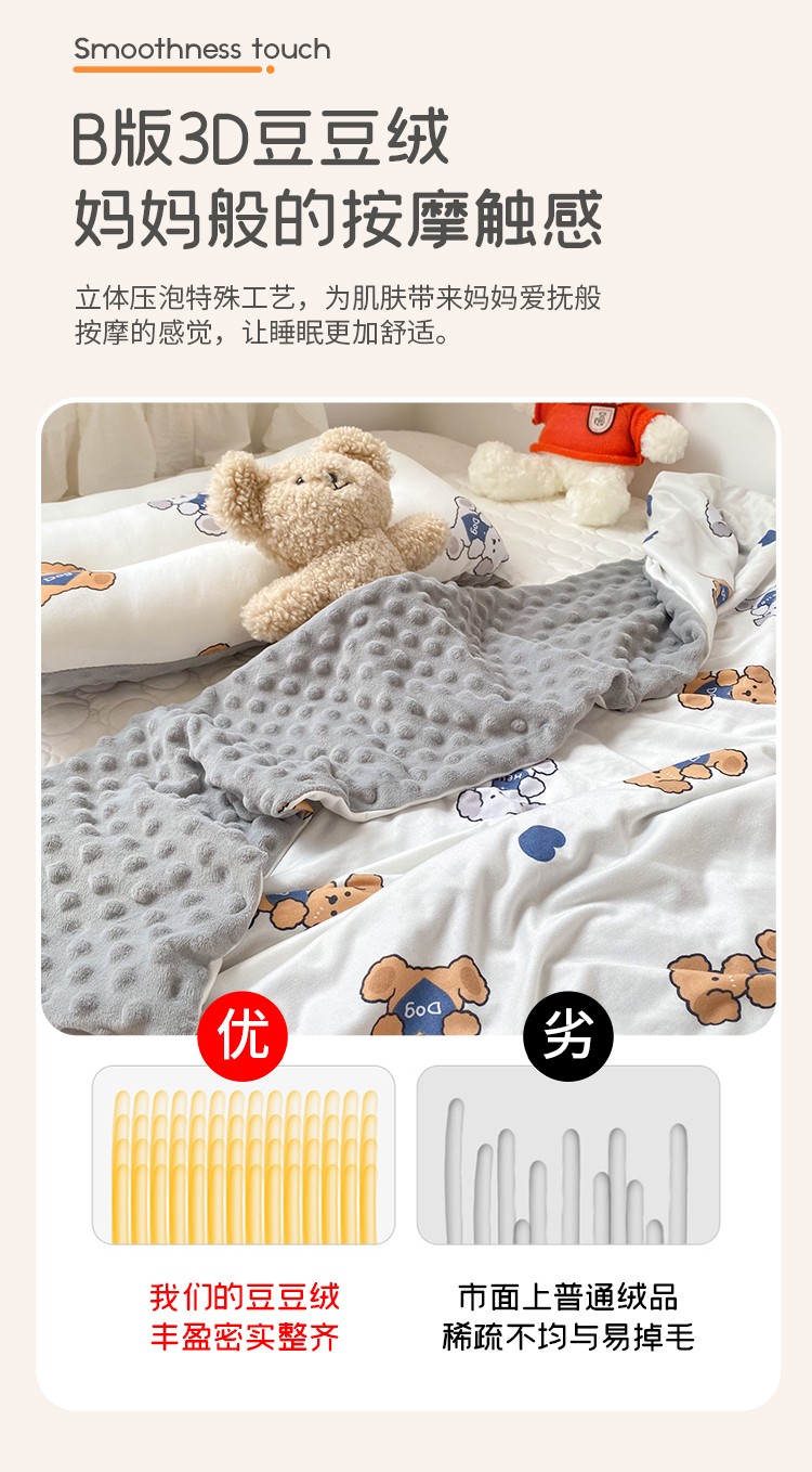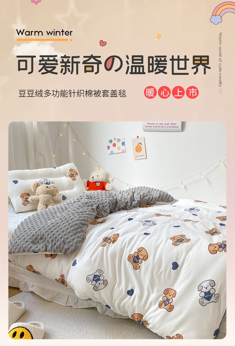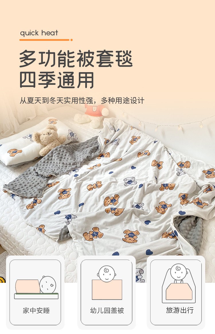希诺家居新款多功能被套盖毯针织棉宝宝盖毯有拉链可拆洗口袋小熊