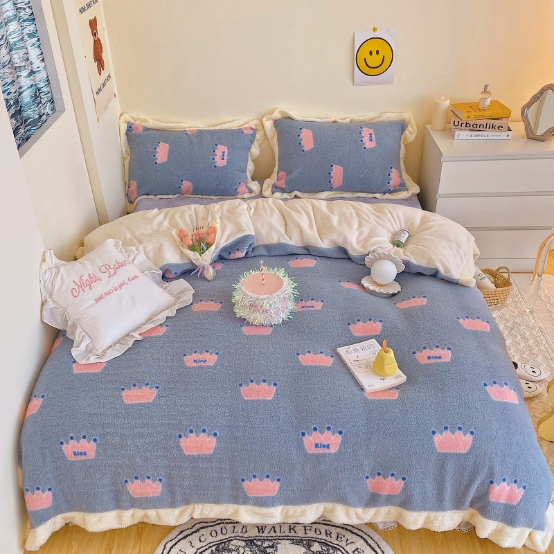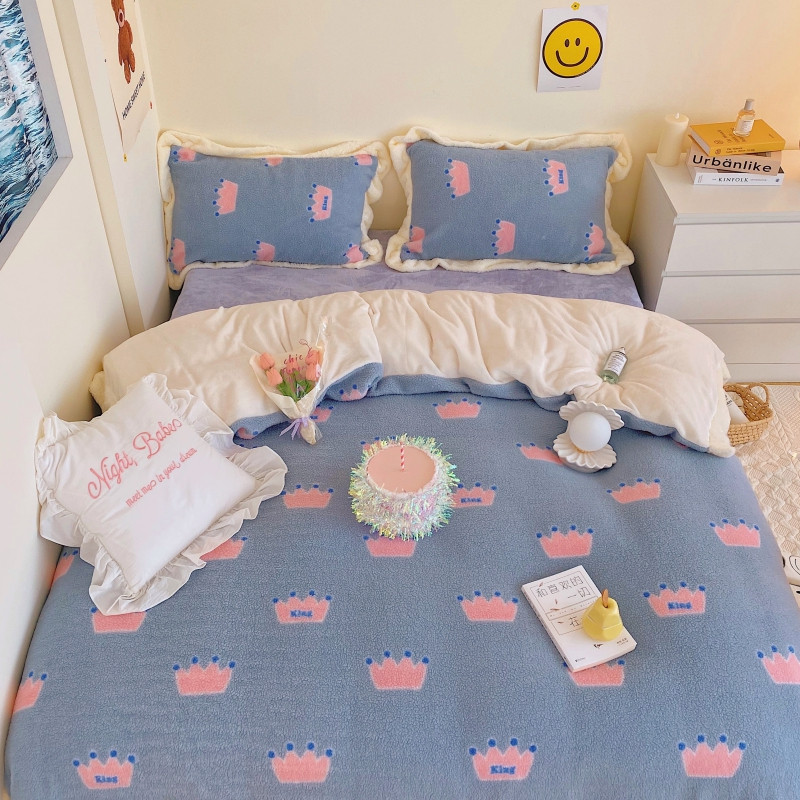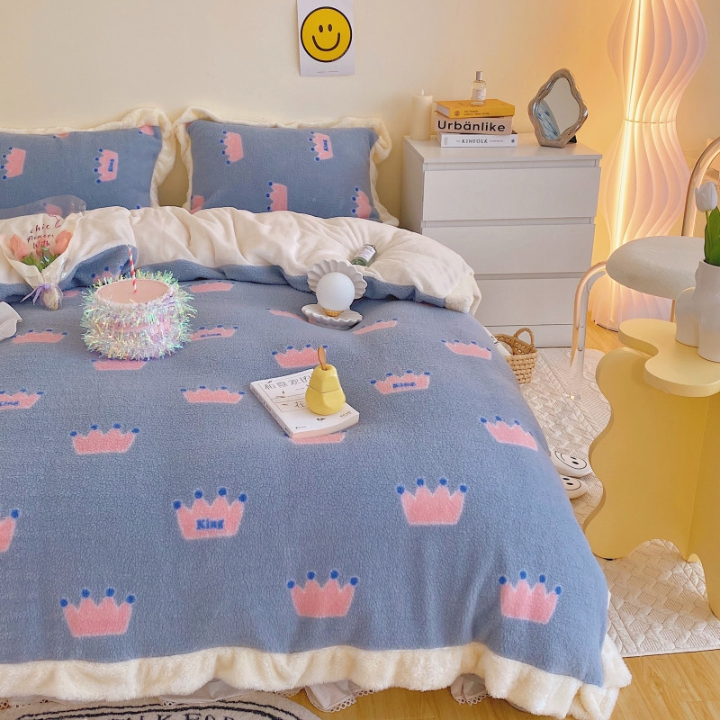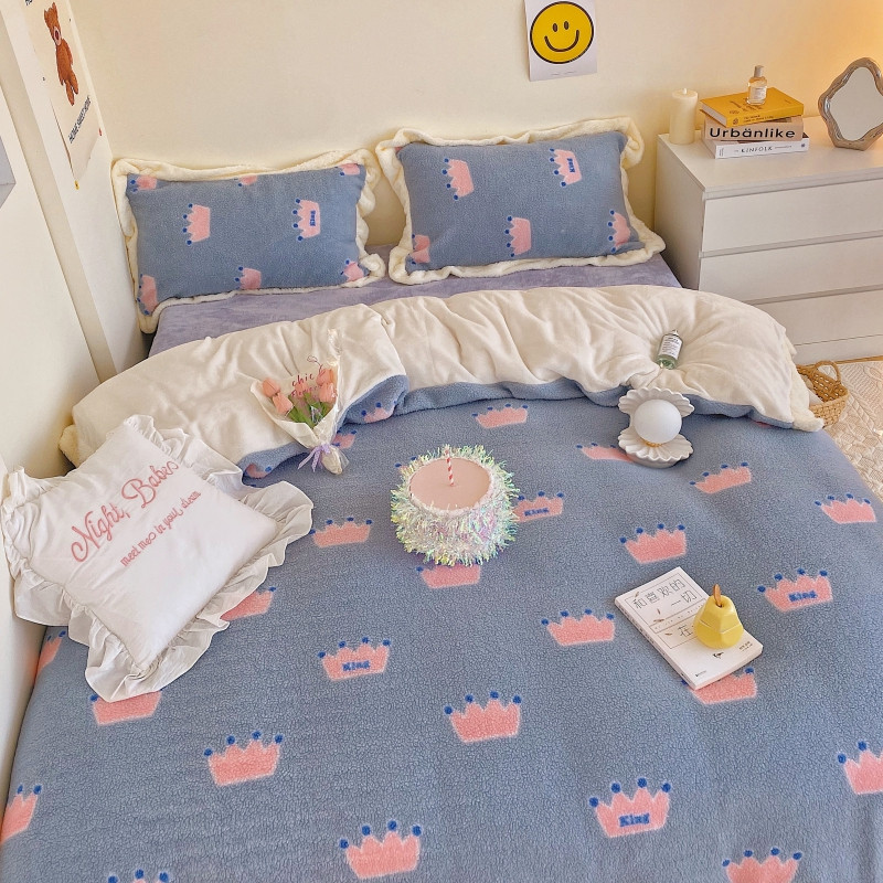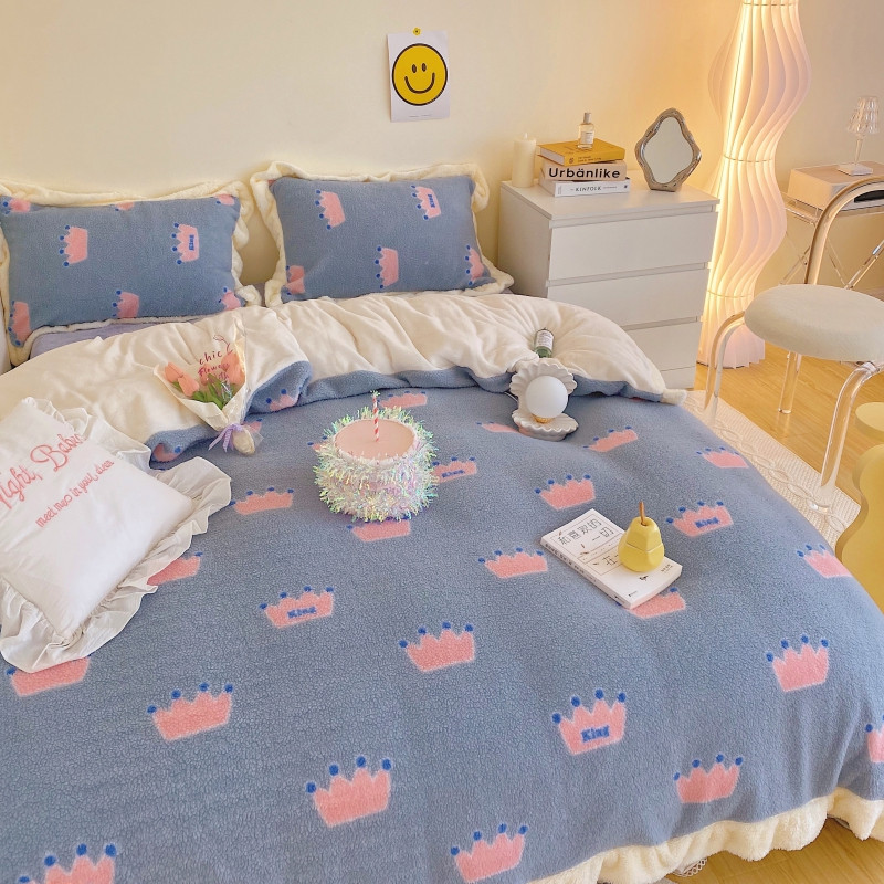 顾里家纺 新款A版泰迪羊羔绒B版牛奶绒ins风韩国四件套 梦幻皇冠