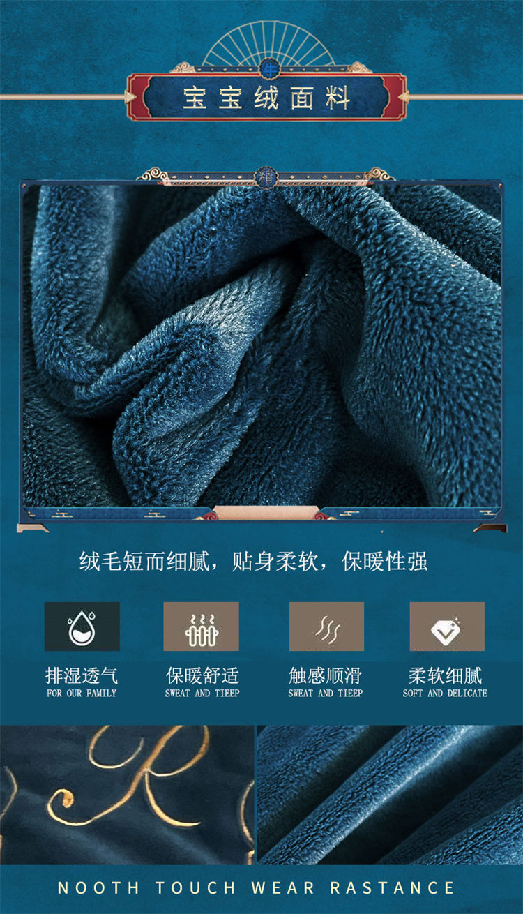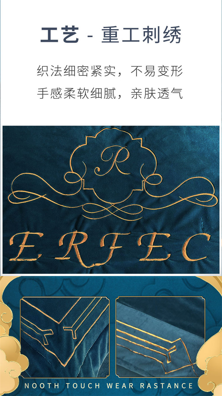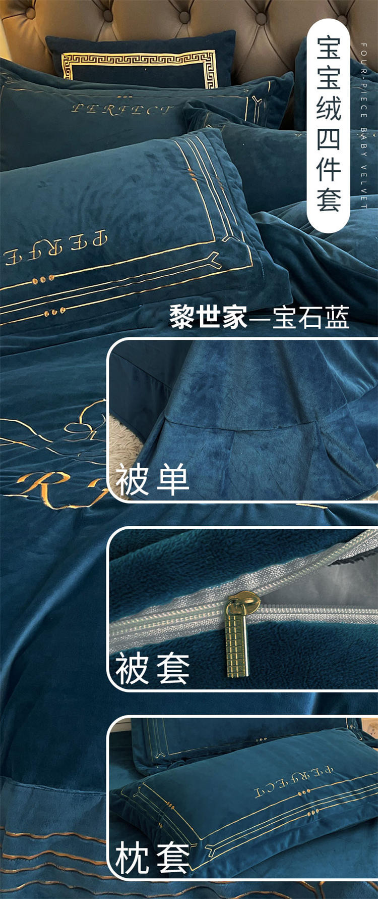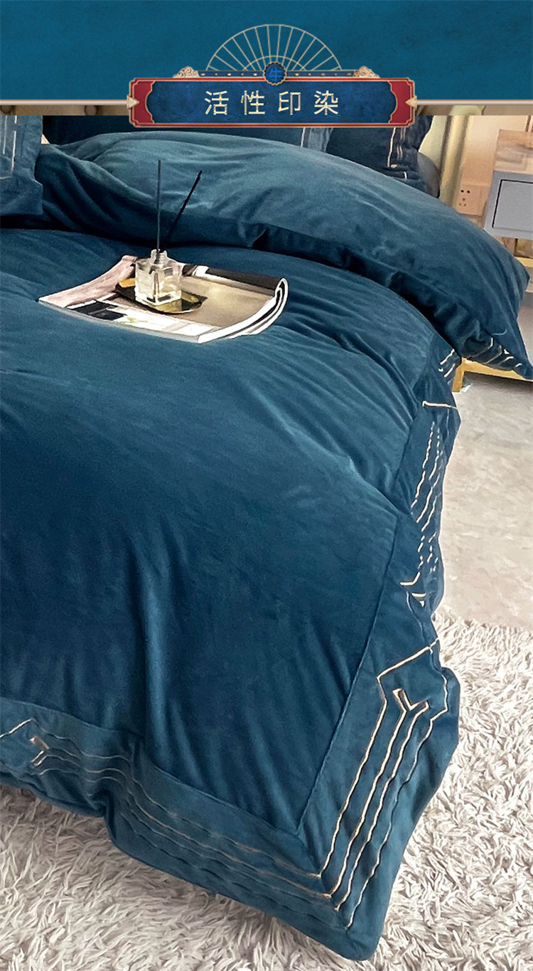商品名称:铠畅 2021新款巴黎世家宝宝绒刺绣四件套 黎世家宝石蓝