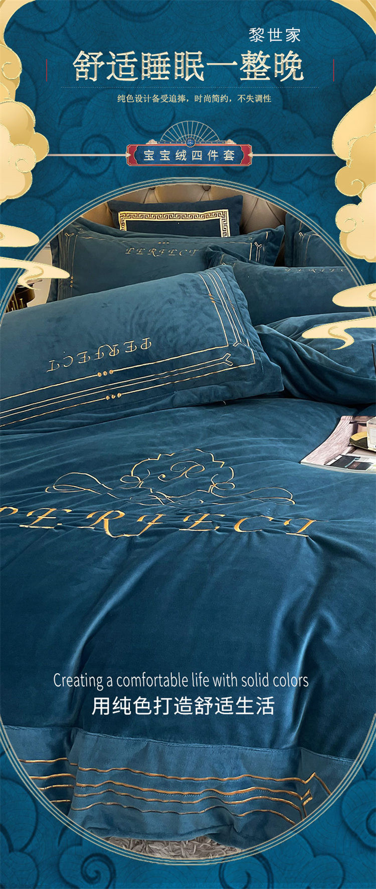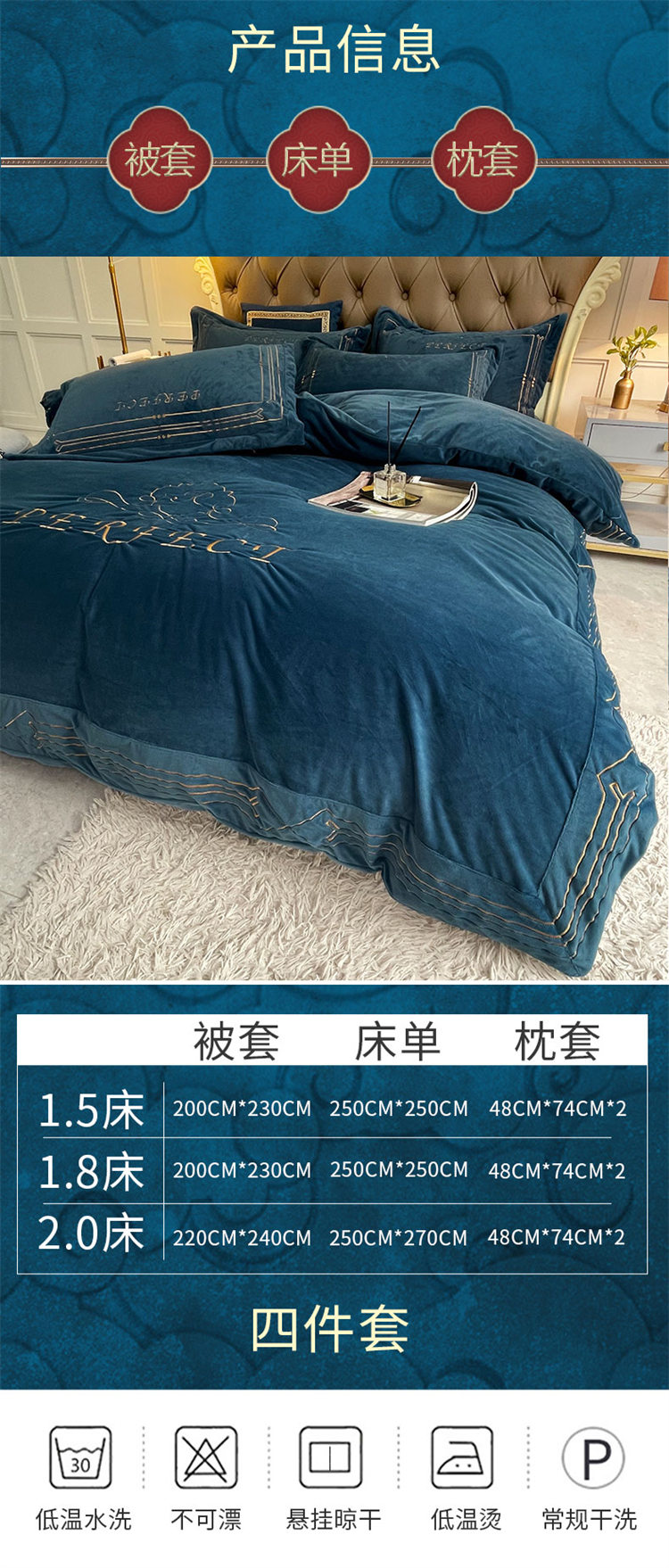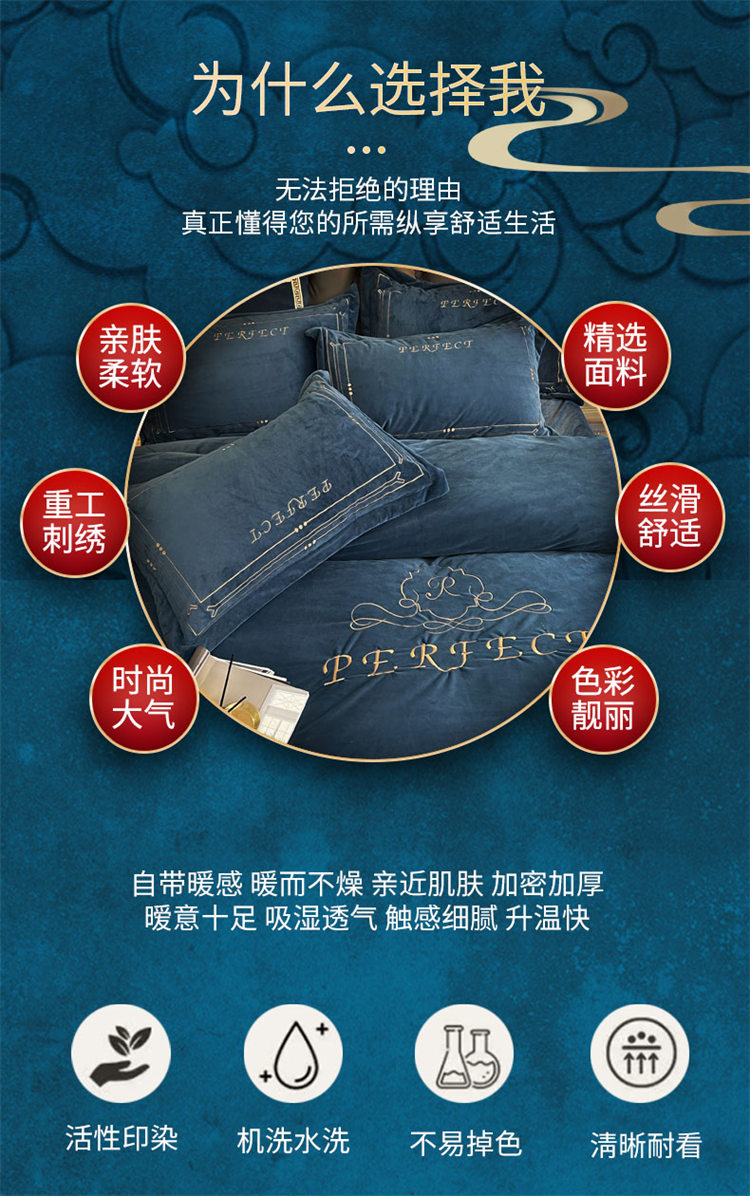 商品名称:铠畅 2021新款巴黎世家宝宝绒刺绣四件套 黎世家宝石蓝