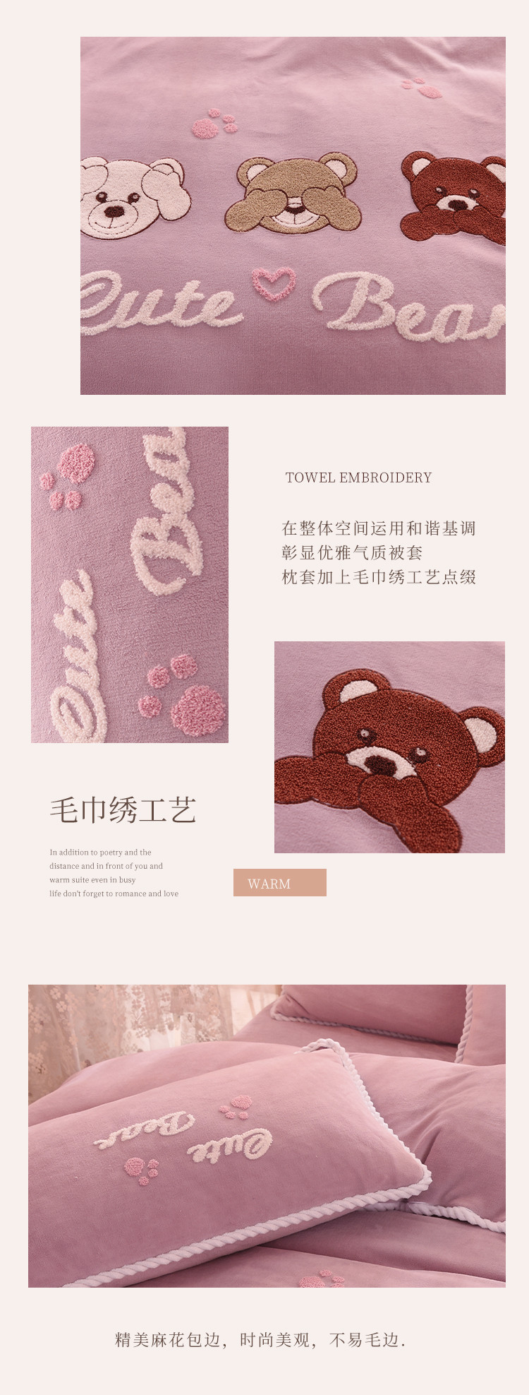 (总)菲儿家纺 2023新款毛巾绣牛奶绒四件套,哇塞小熊-豆绿,哇塞小熊-金桔黄,哇塞小熊-浅粉,哇塞小熊-优雅紫,哇塞小熊-月光蓝,小熊猫-奶黄,小熊猫-少女粉,小熊猫-松石绿,小熊猫-星空蓝,小熊猫-芋泥紫
