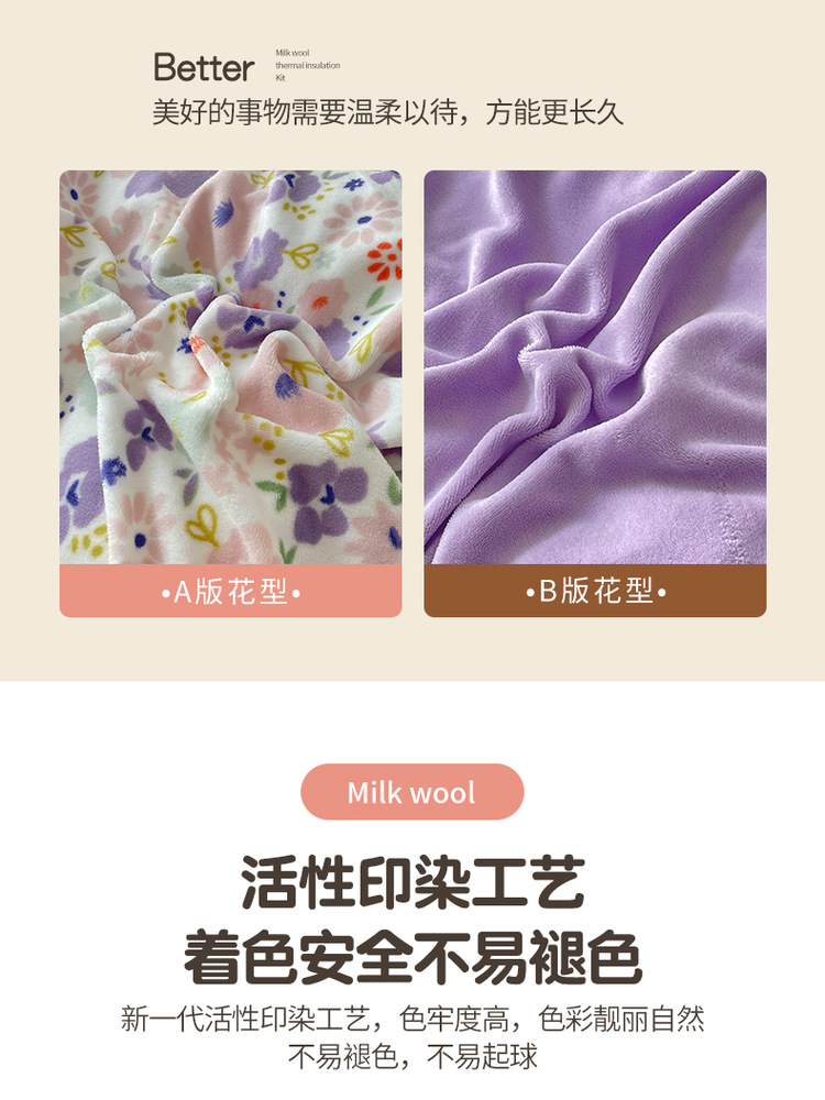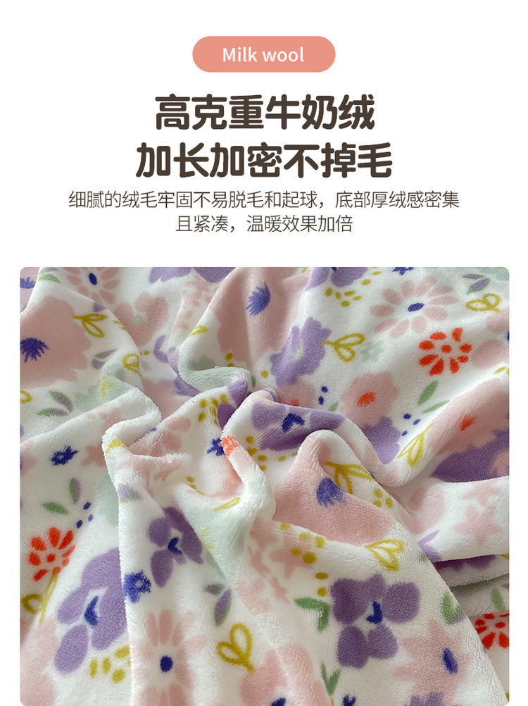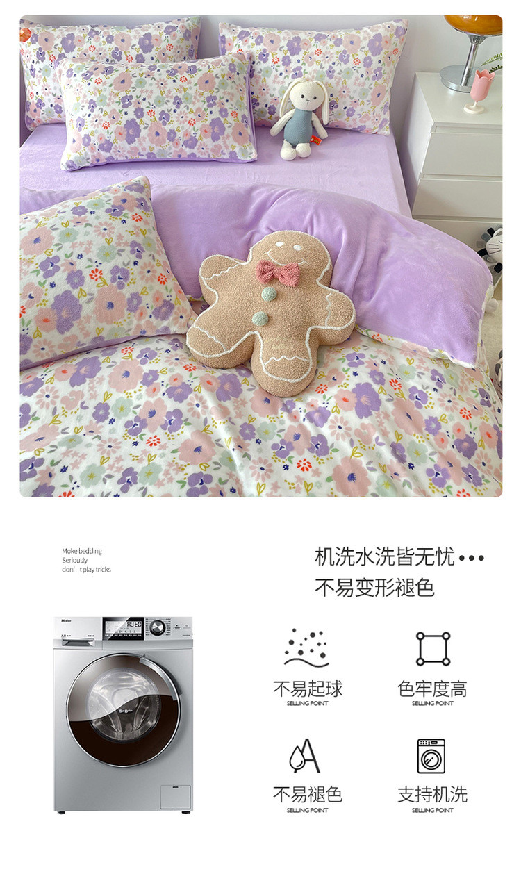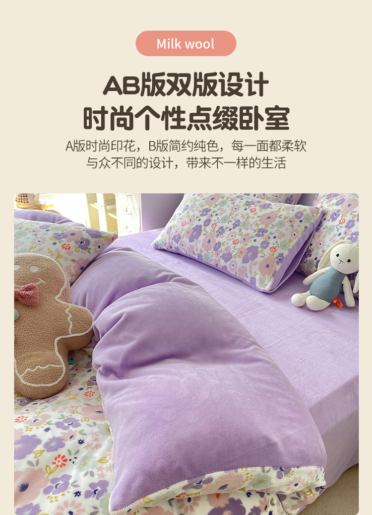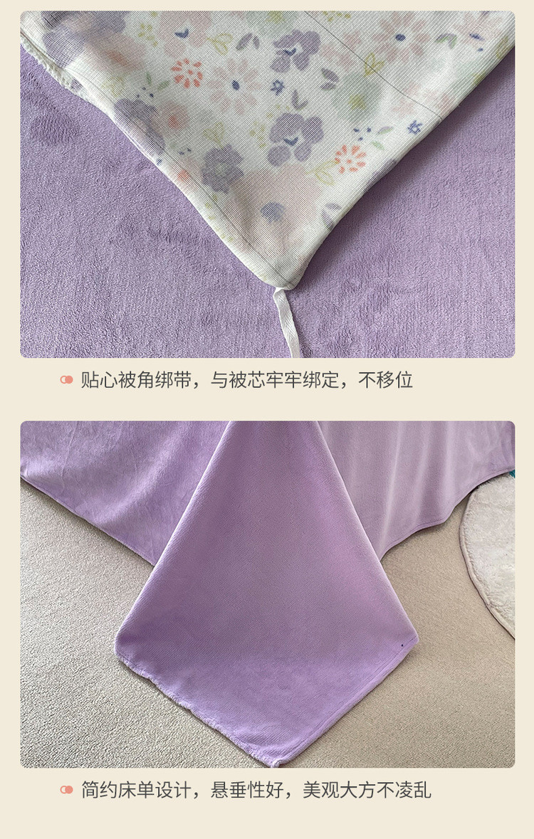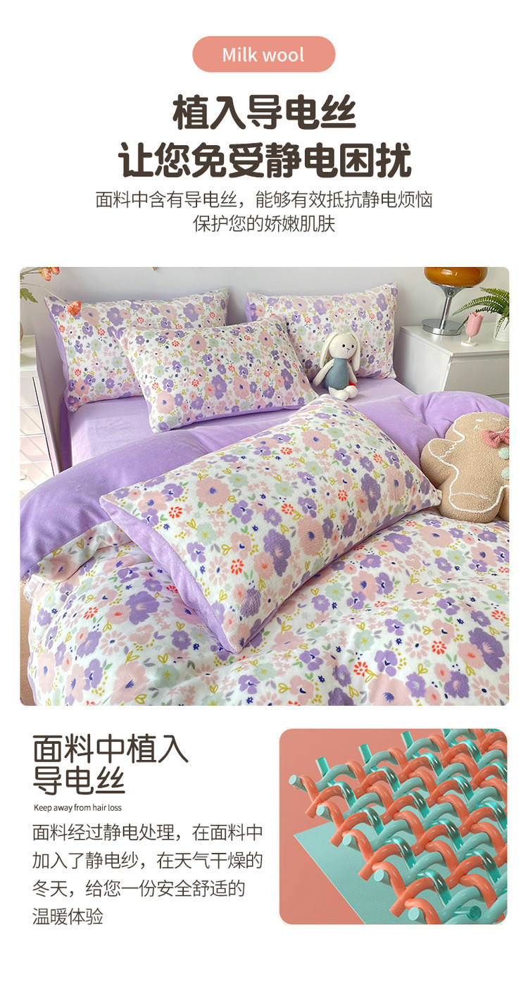 商品名称:优彩 2021新款200克高克重印花牛奶绒四件套 樱花紫