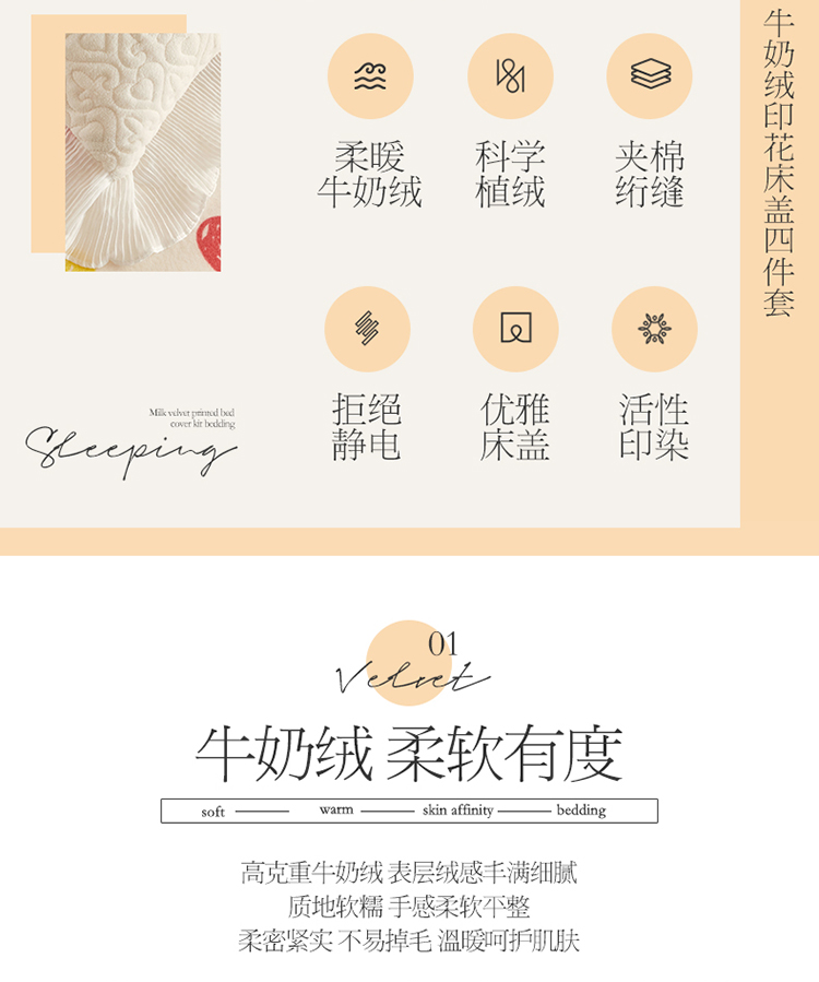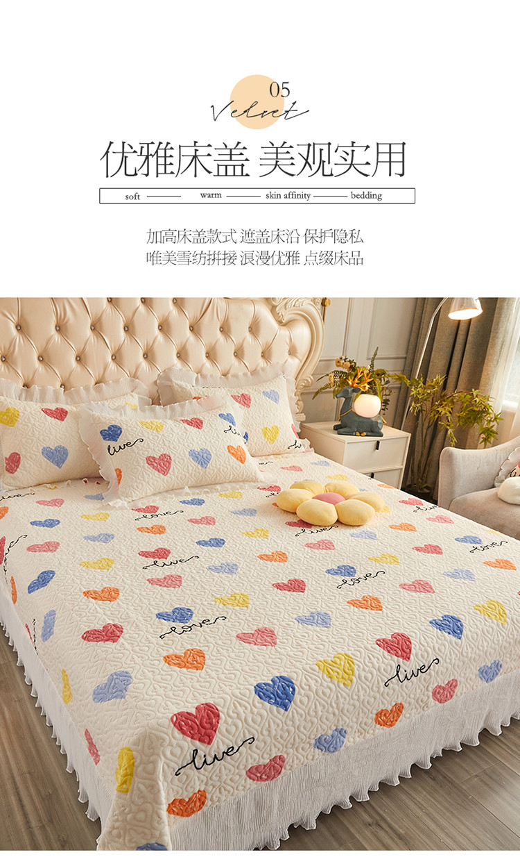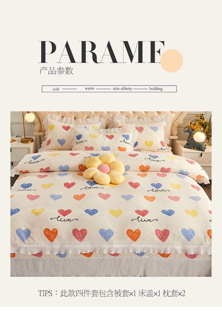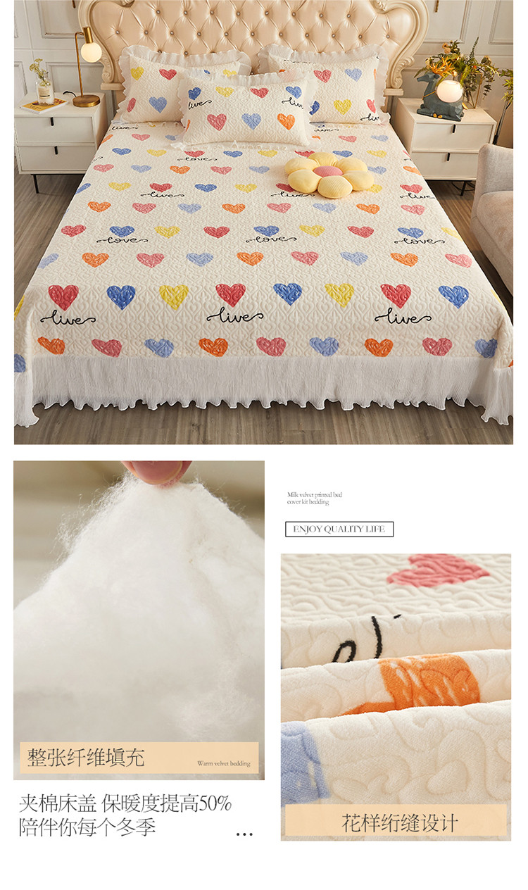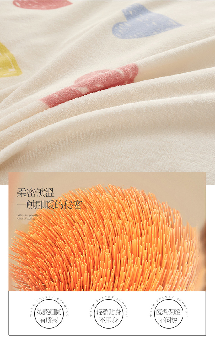 • 91家纺网 家纺一手货源 找家纺 宜凡 2021新款牛奶绒小清新床盖四件套 爱心派对