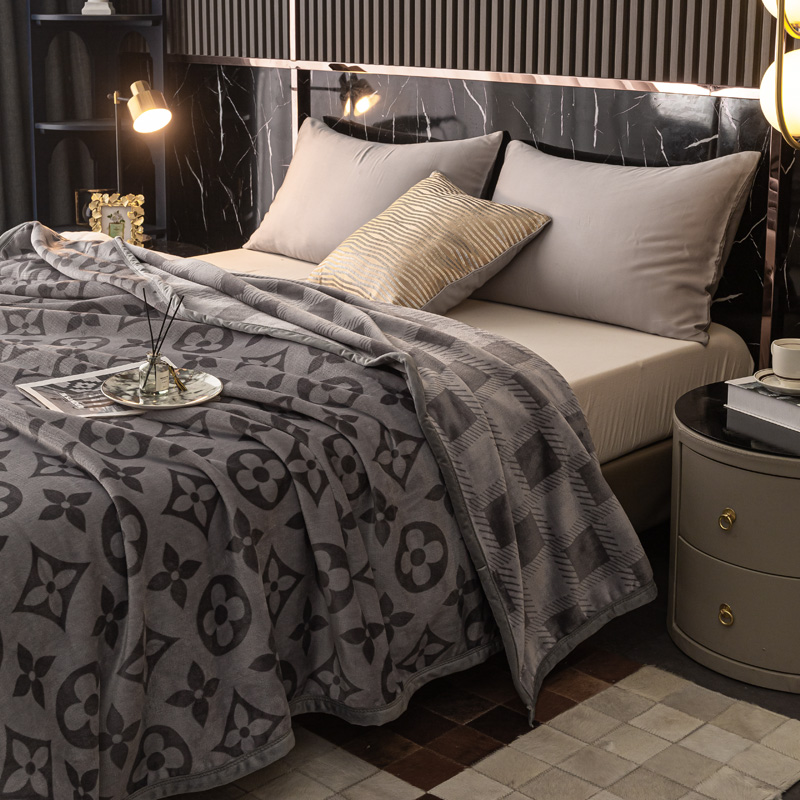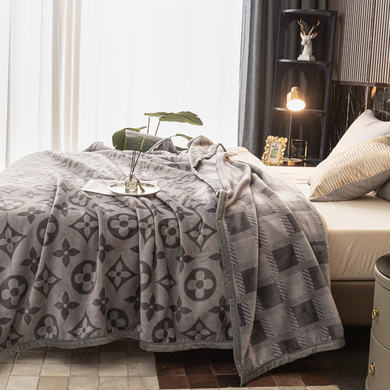 卡奥AB版加厚复合云毯法莱绒毛毯空调休闲毯沙发盖毯星洛-灰