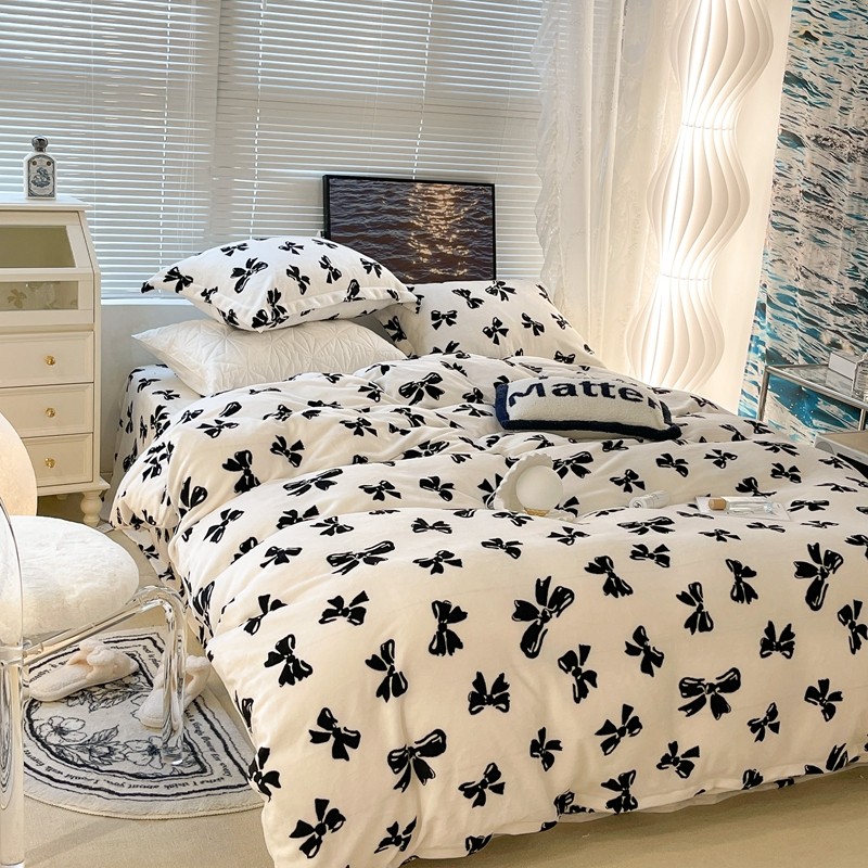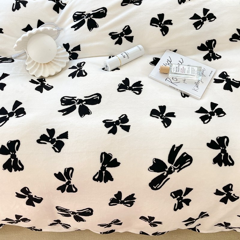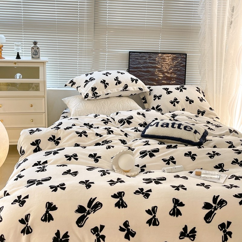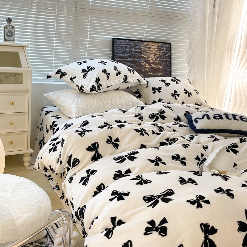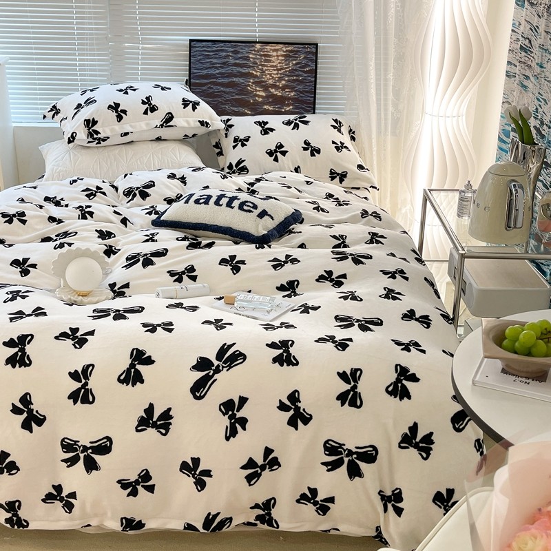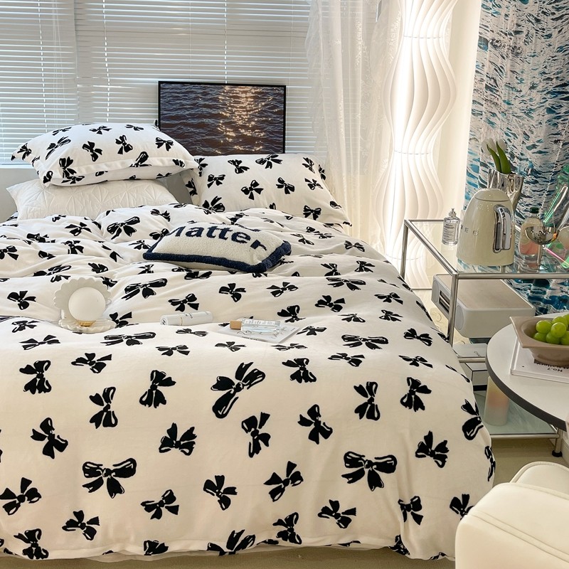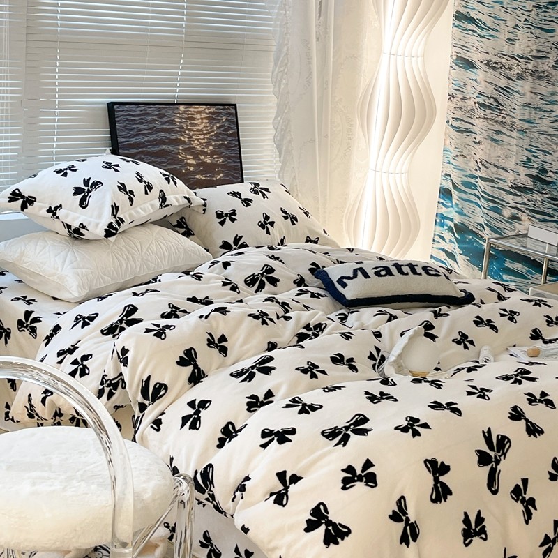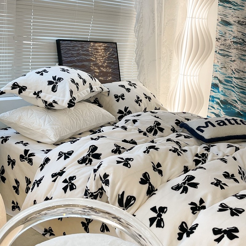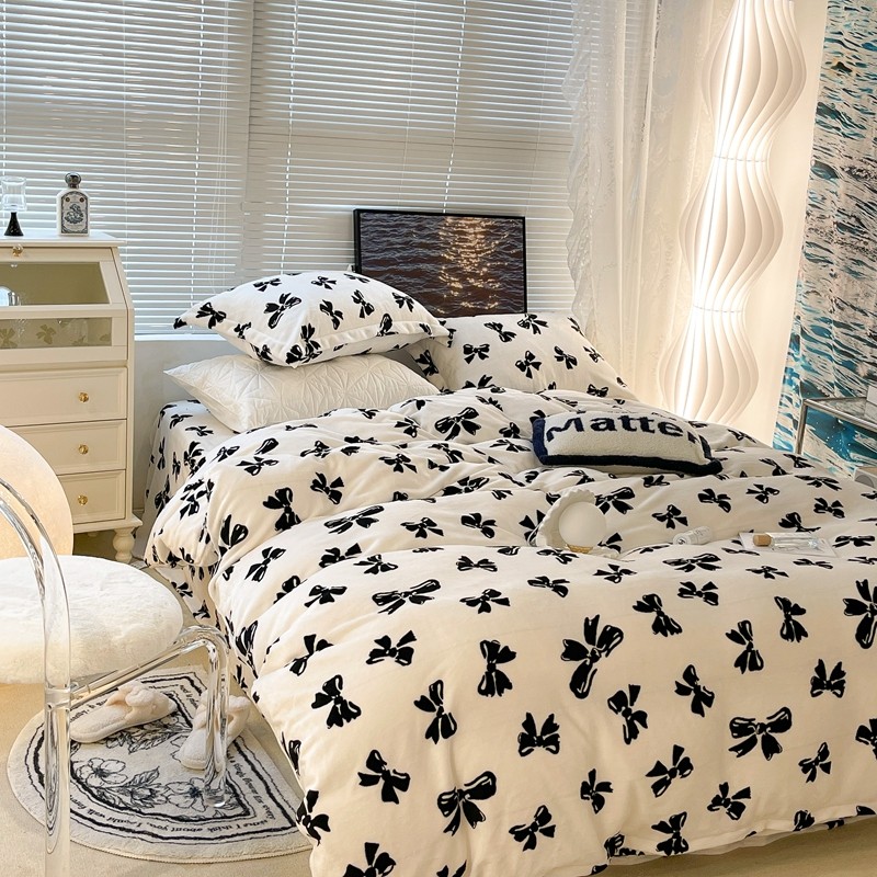 昔可家纺 2021新款牛奶绒四件套-一批 赫本风黑蝴蝶结
