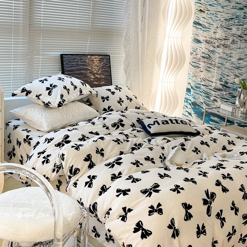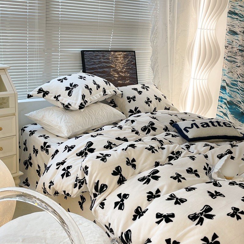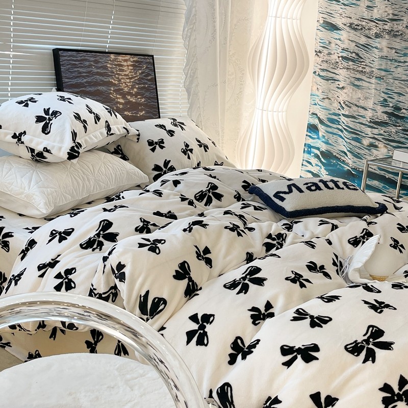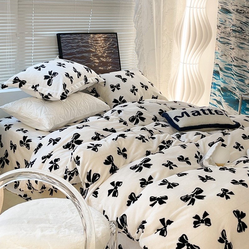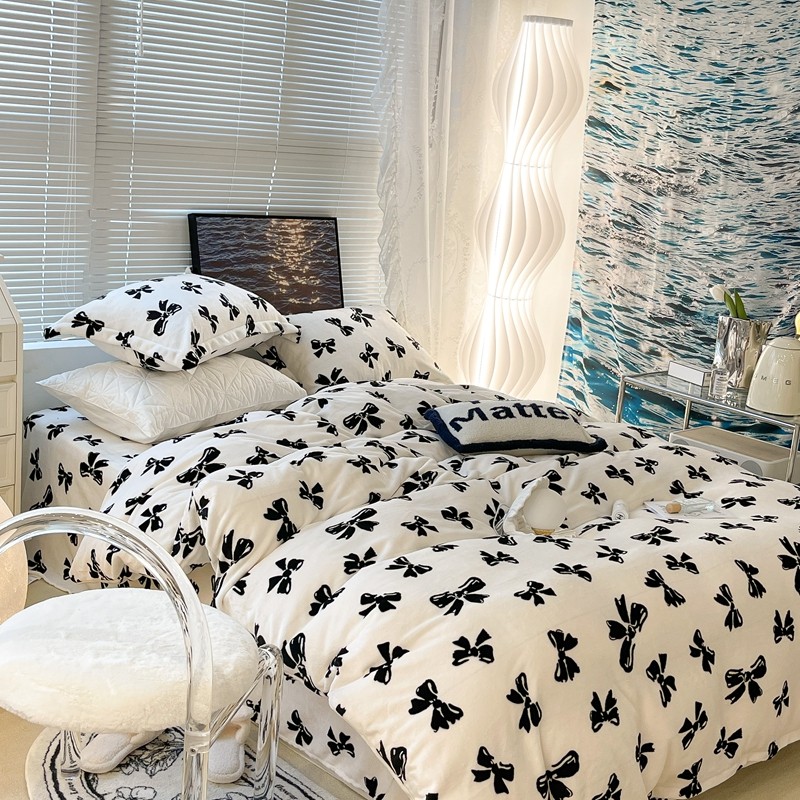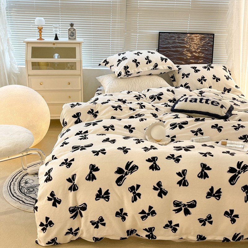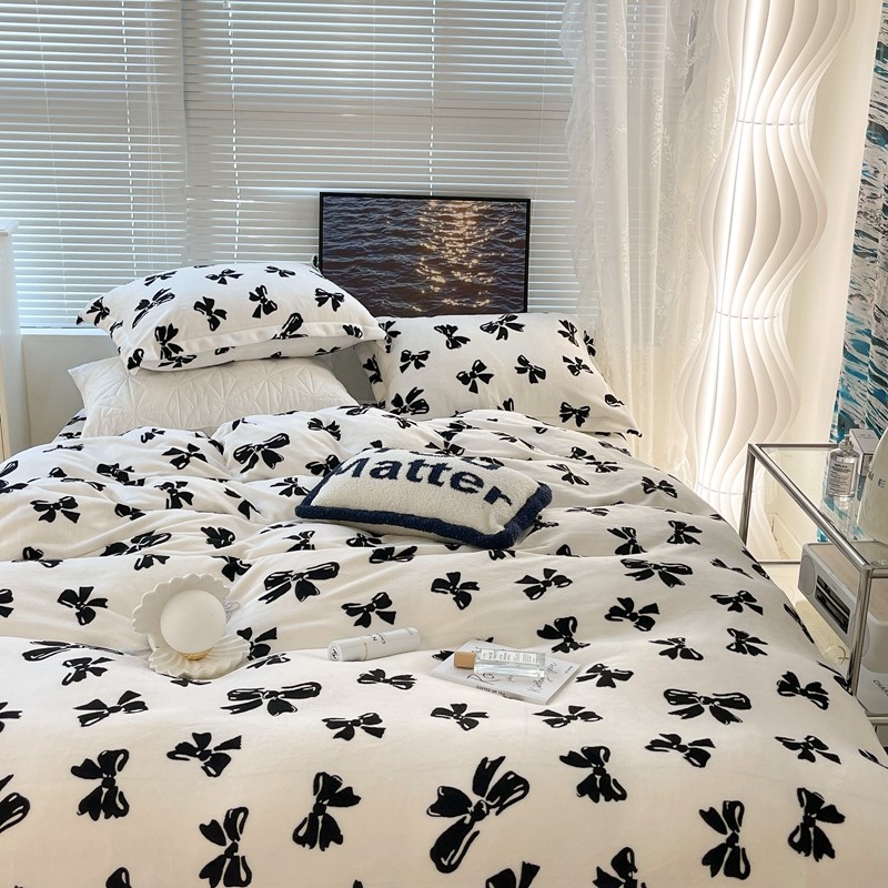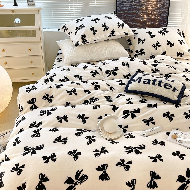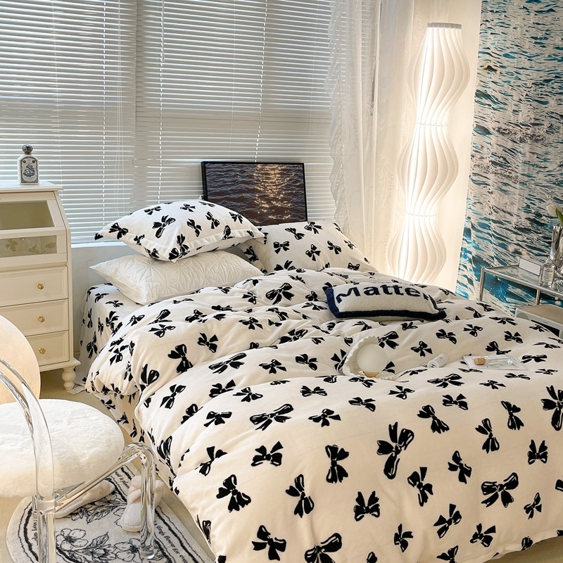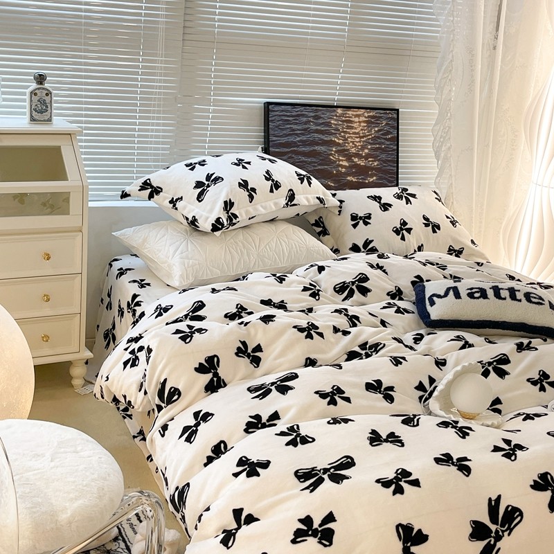 昔可家纺 2021新款牛奶绒四件套-一批 赫本风黑蝴蝶结