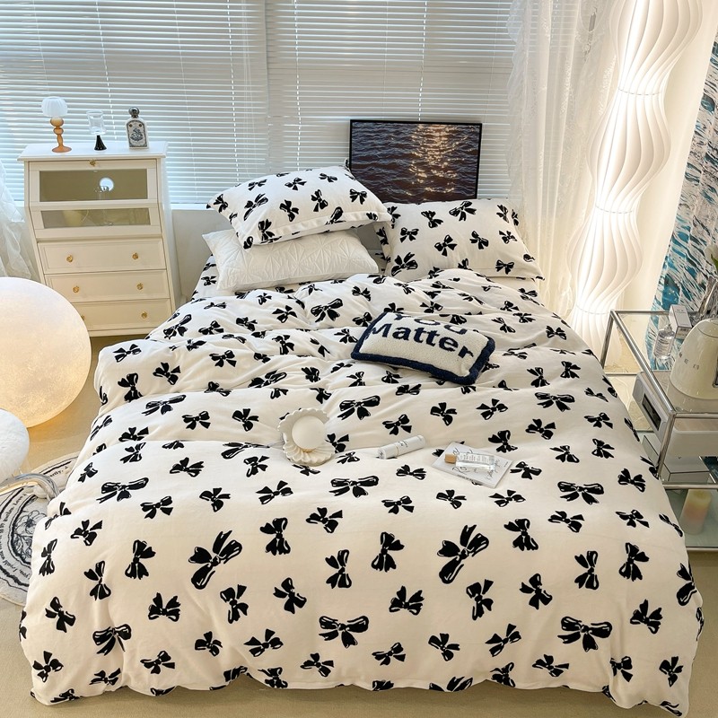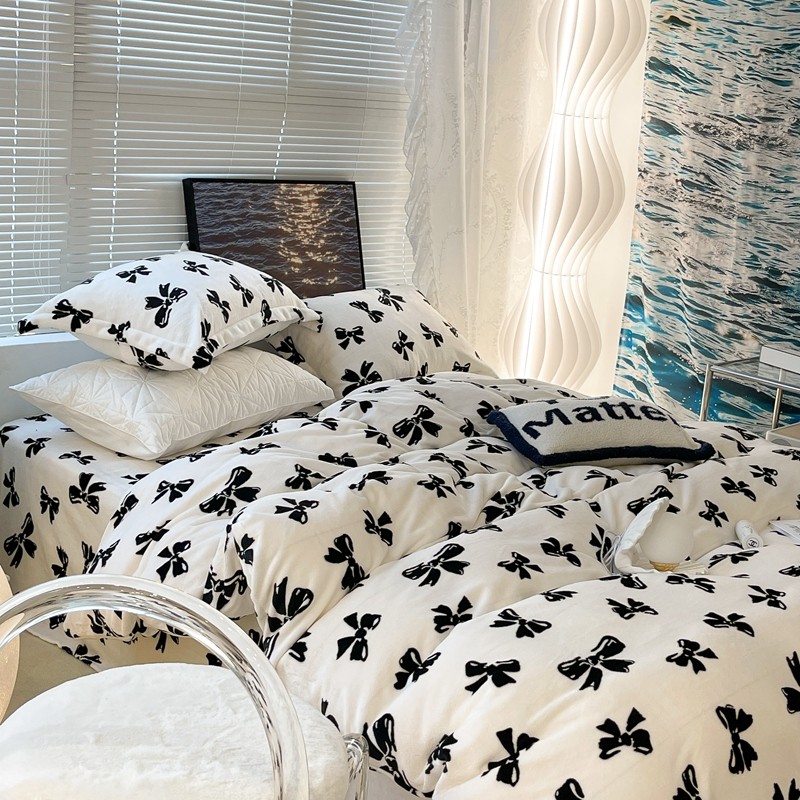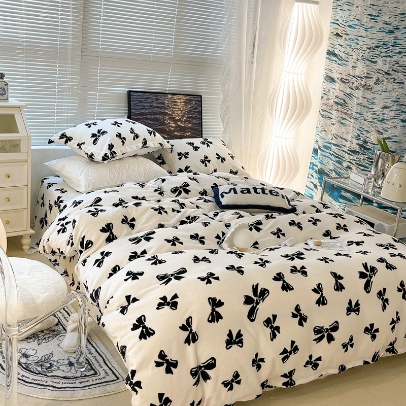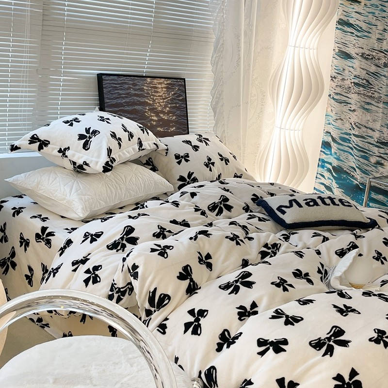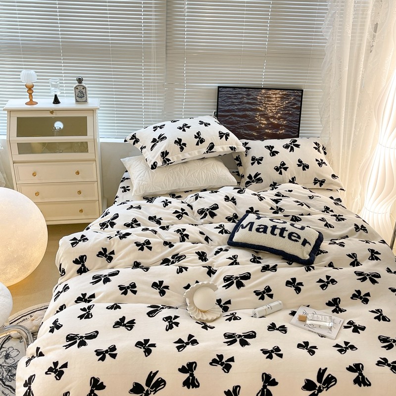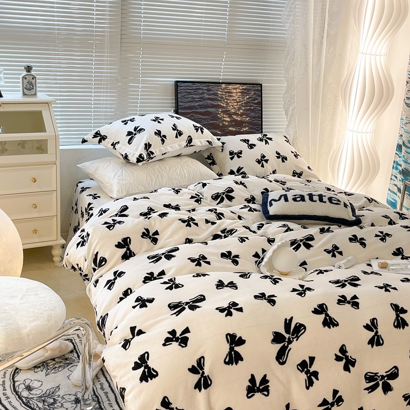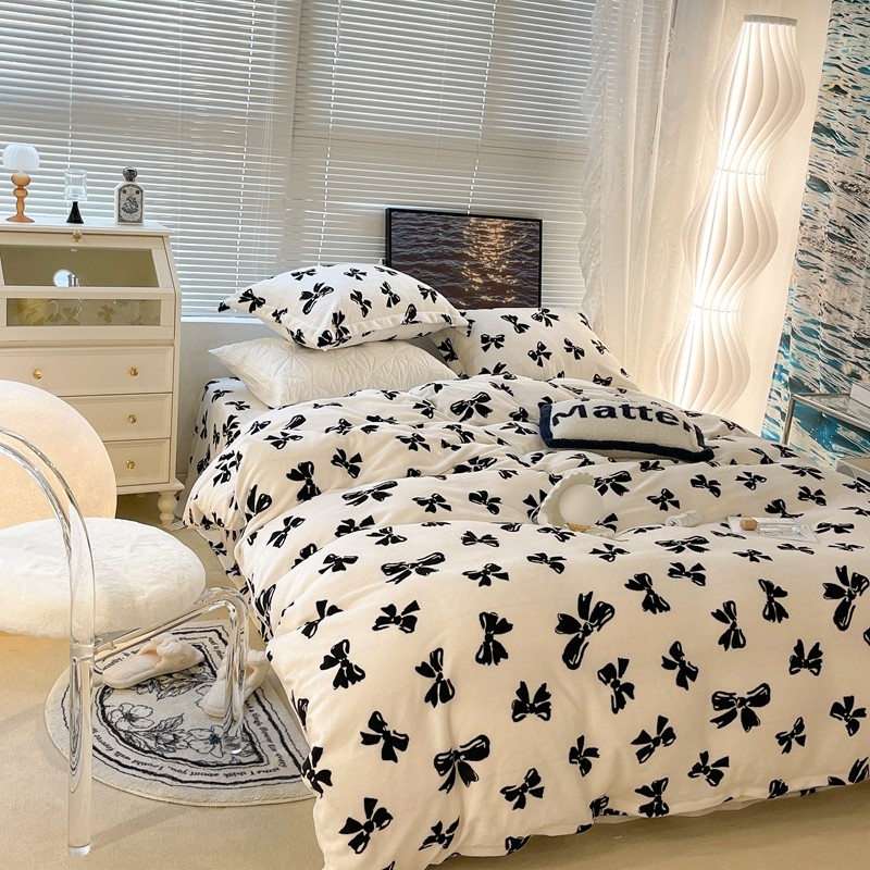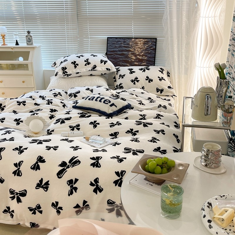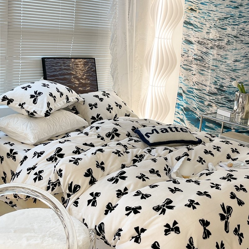 昔可家纺 2021新款牛奶绒四件套-一批 赫本风黑蝴蝶结