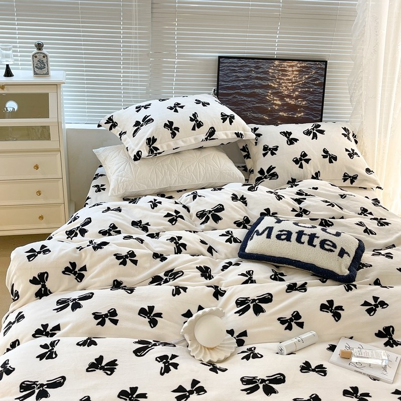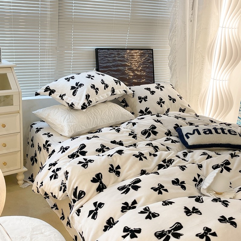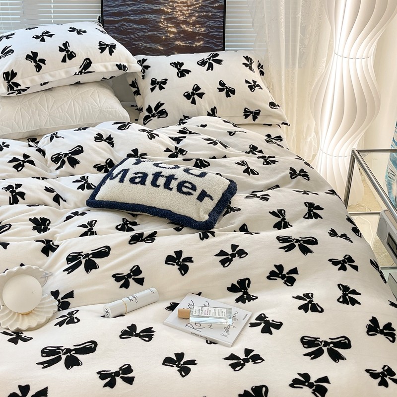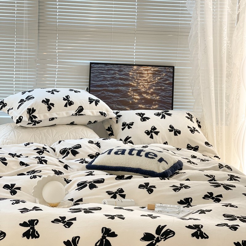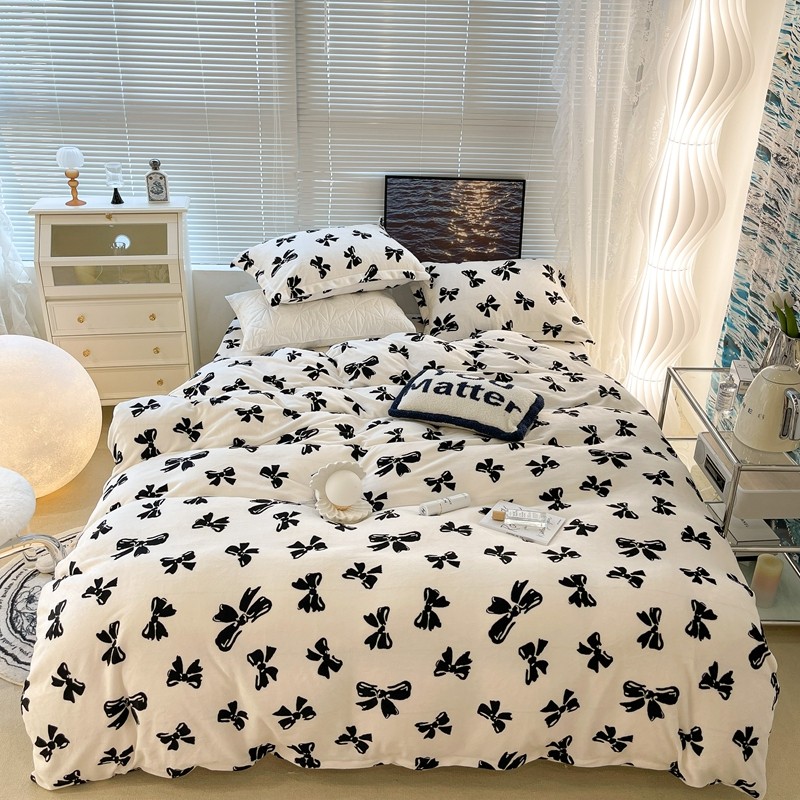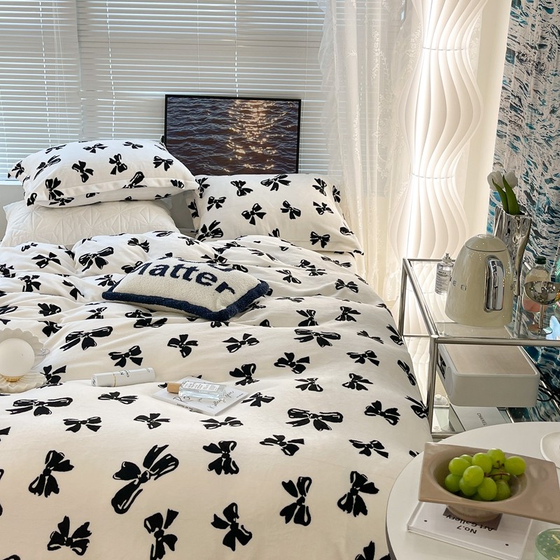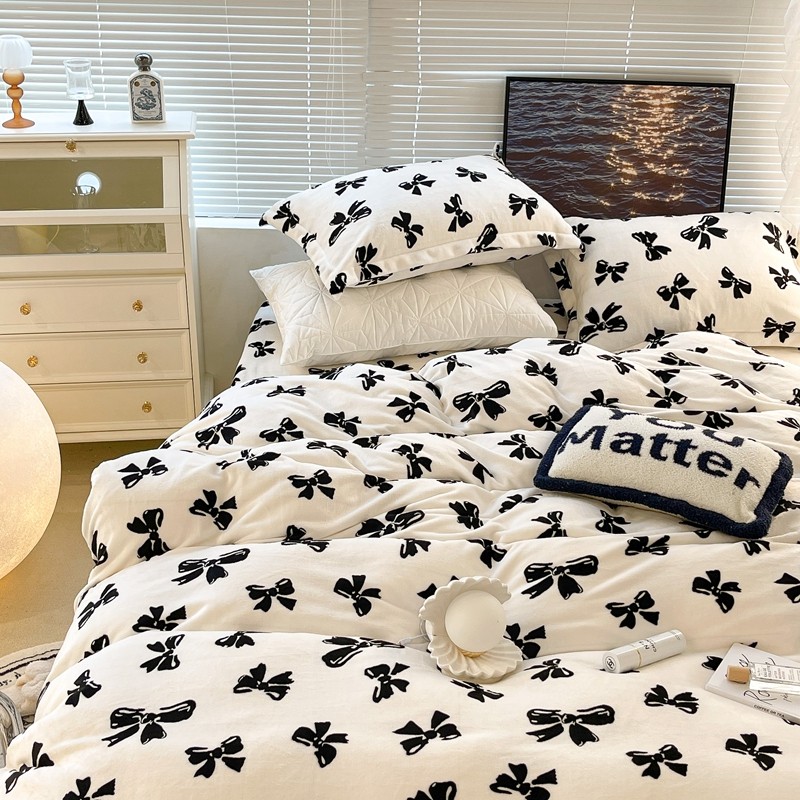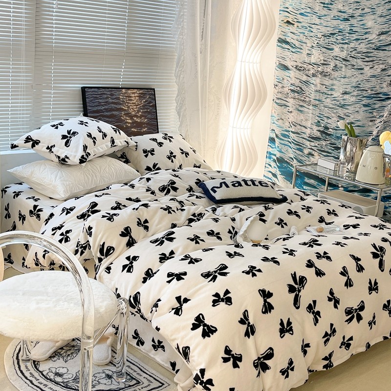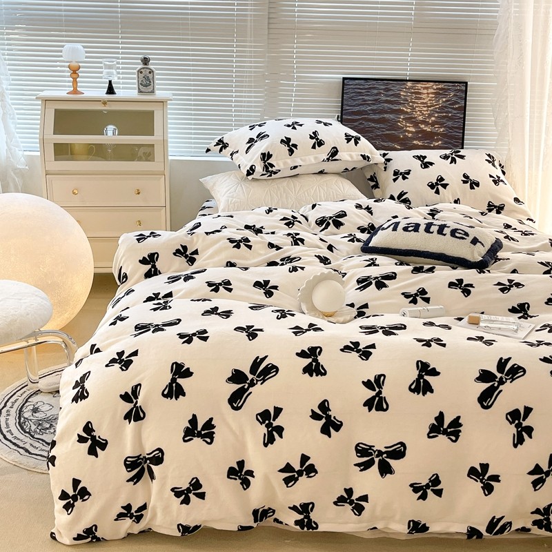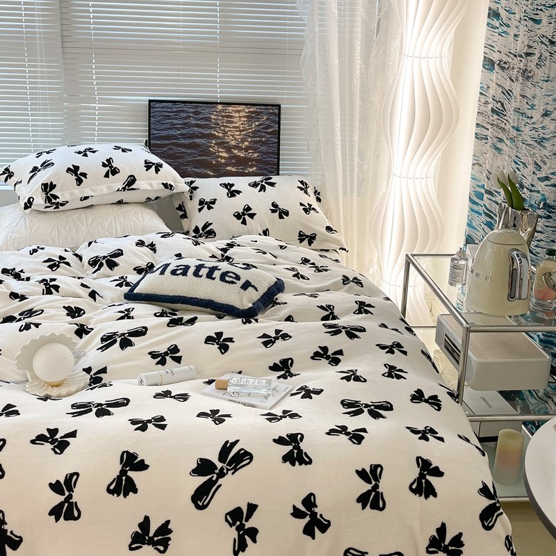 昔可家纺 2021新款牛奶绒四件套-一批 赫本风黑蝴蝶结