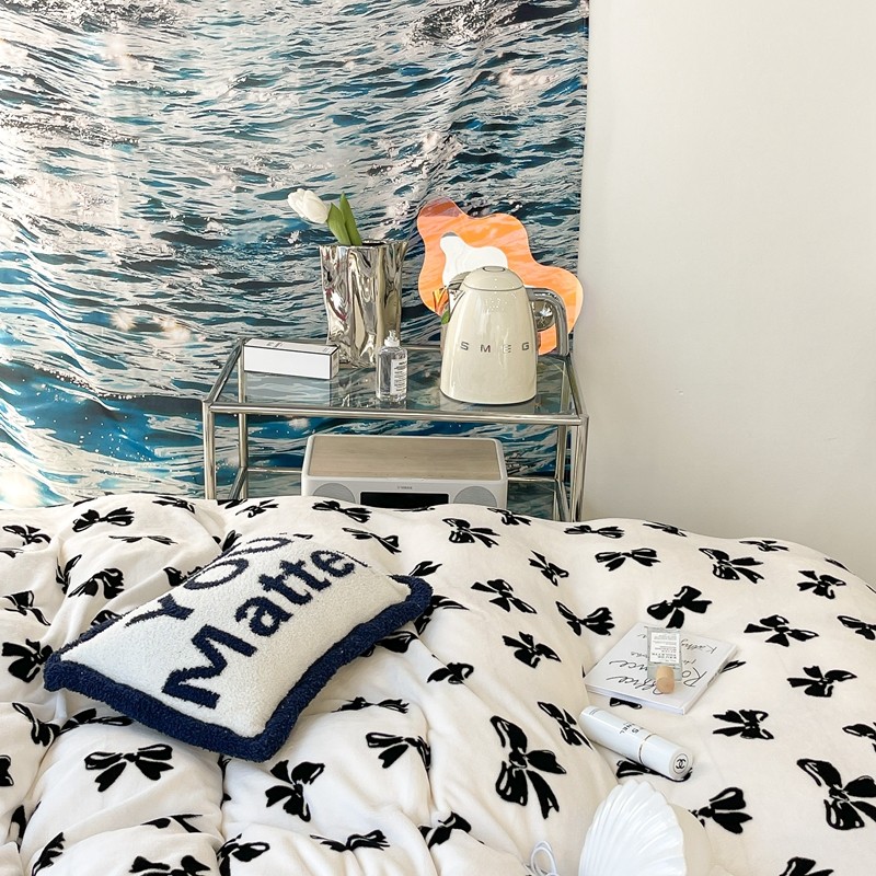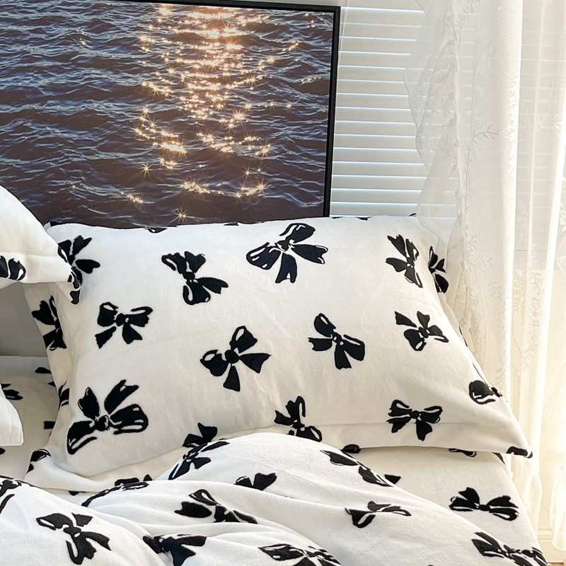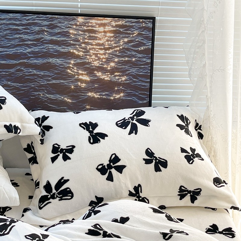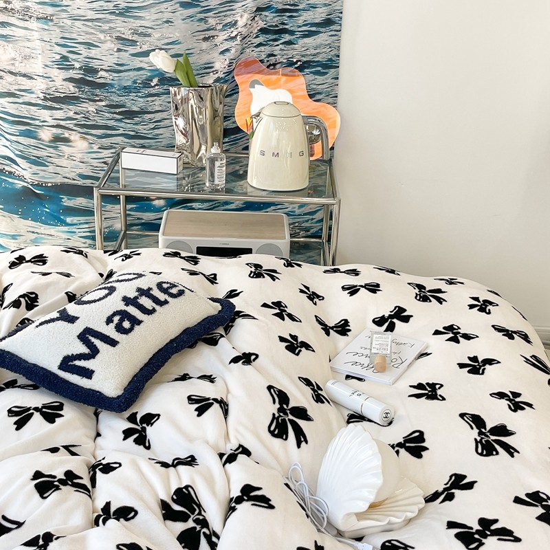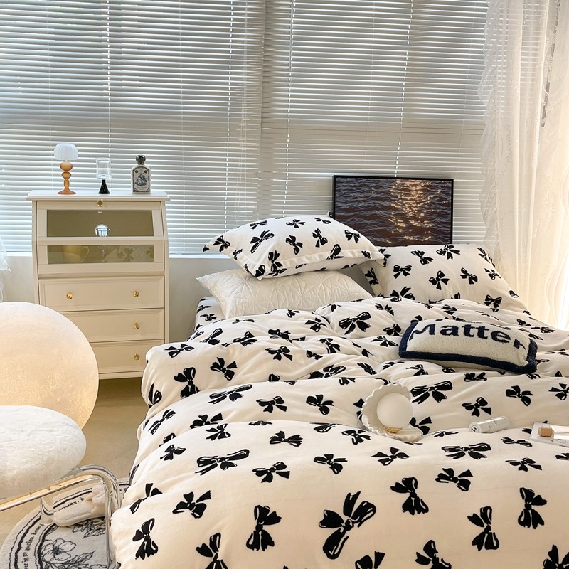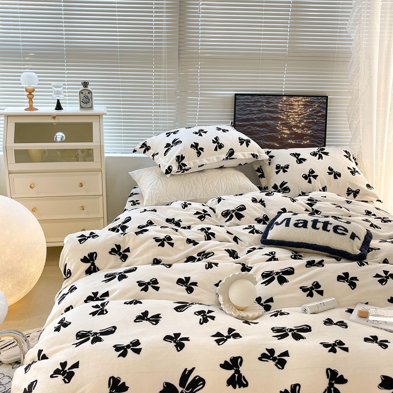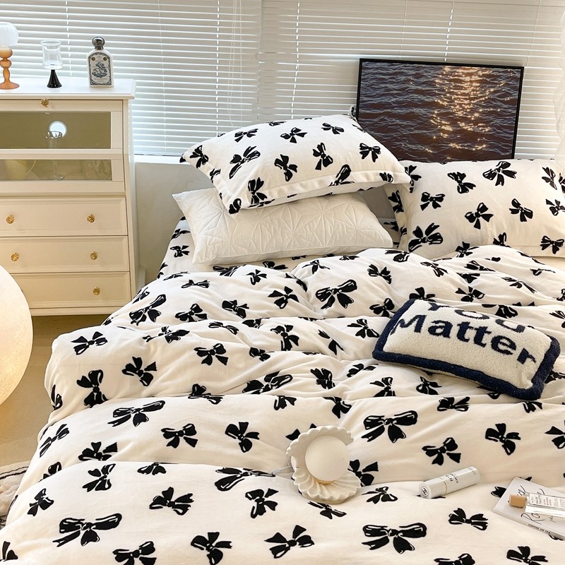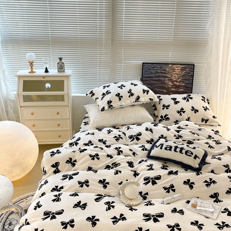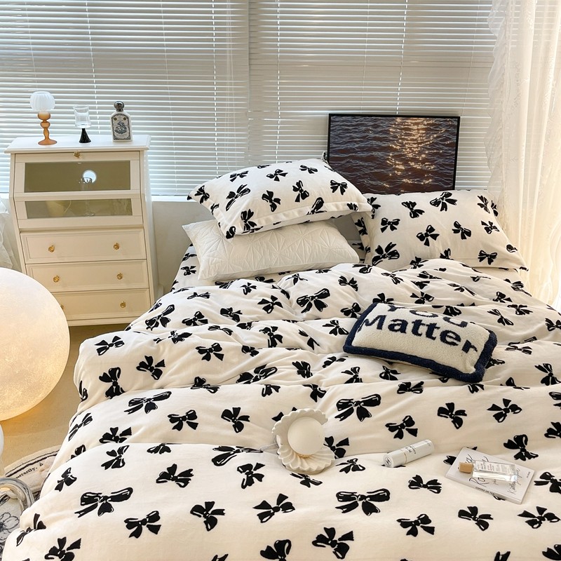 昔可家纺 2021新款牛奶绒四件套-一批 赫本风黑蝴蝶结